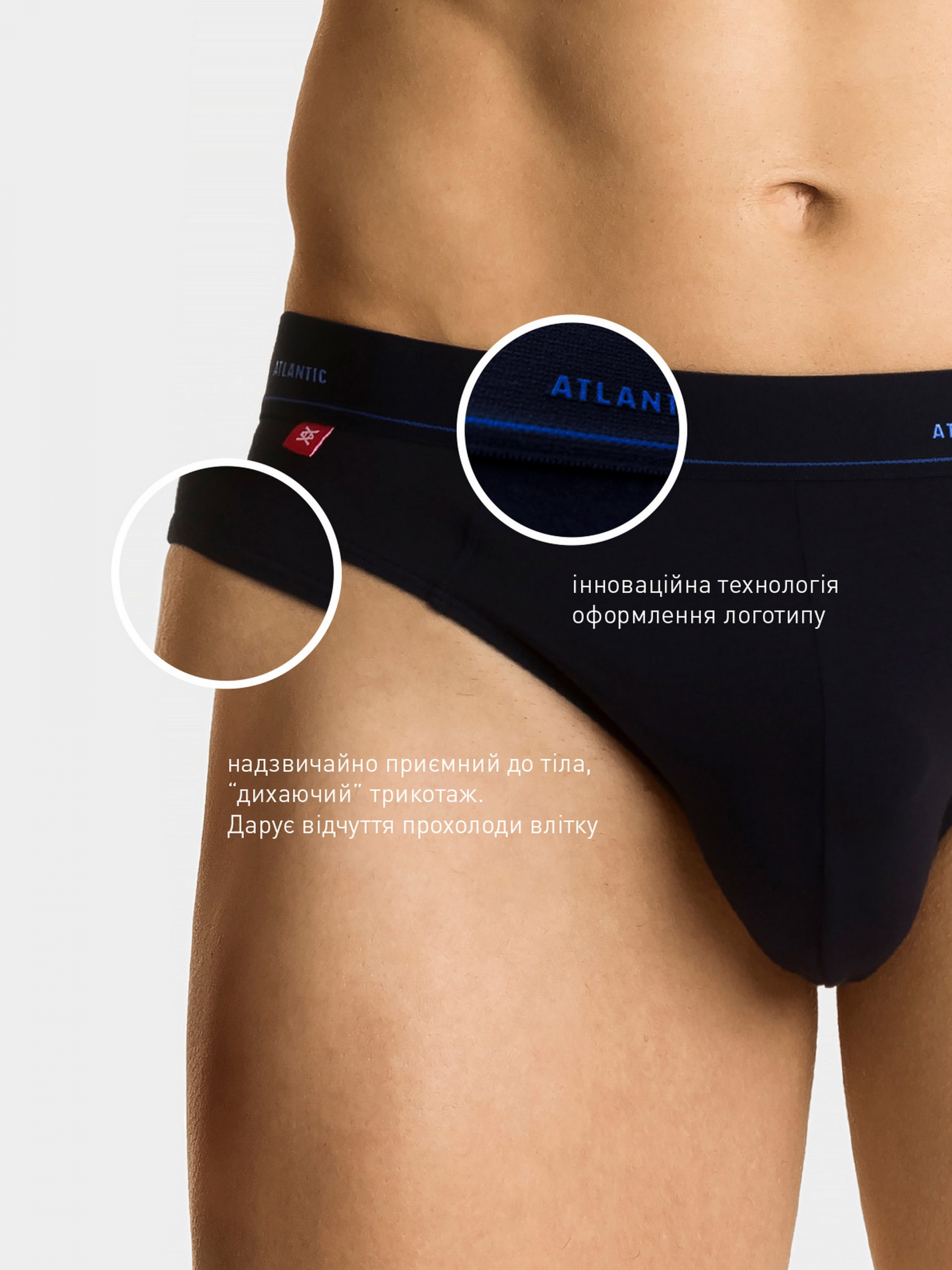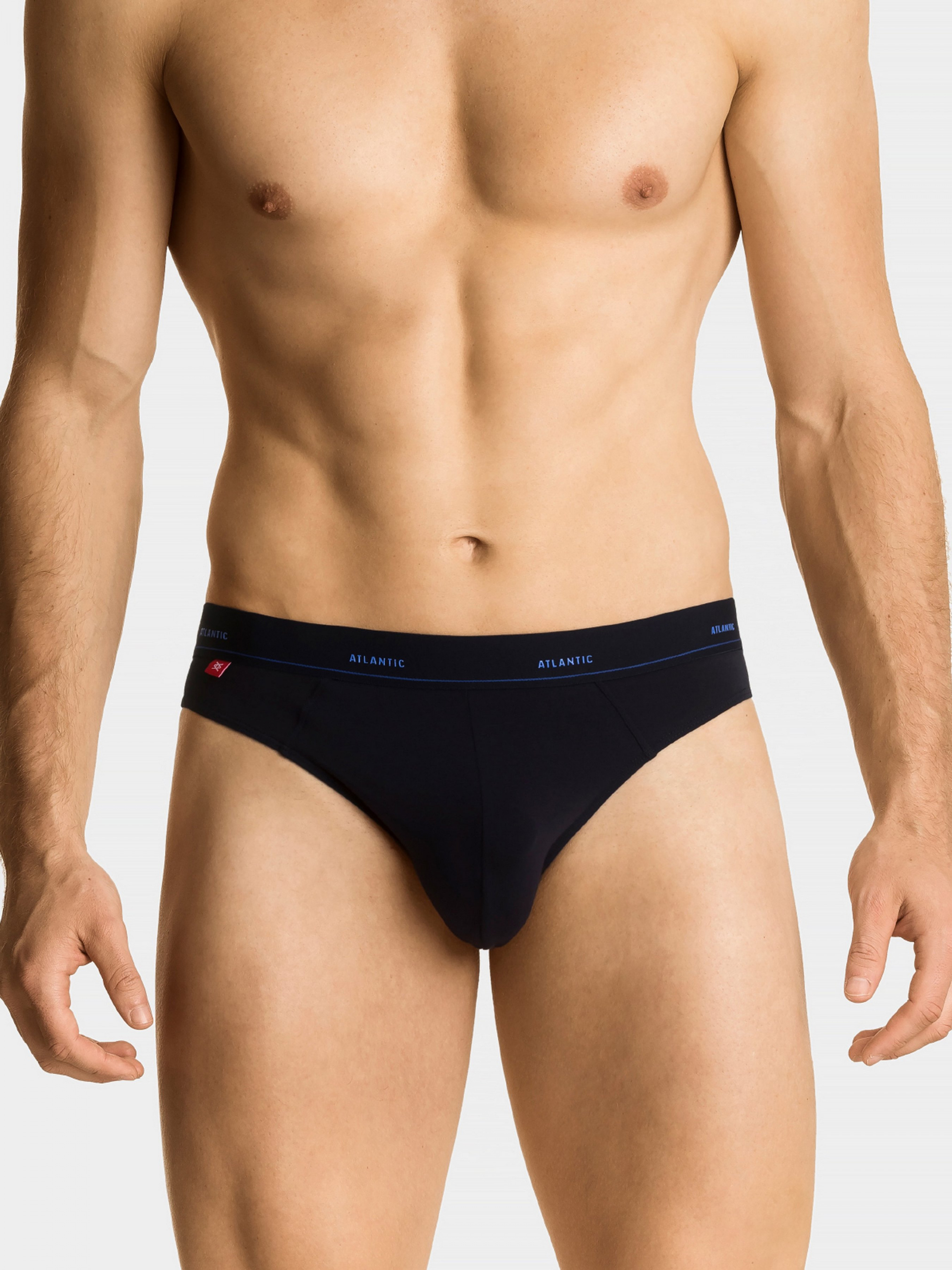 Мужские трусы Atlantic темно-синего цвета с широкой мягкой резинкой в талии с надписью ATLANTIC голубого цвета. Модель спортивного кроя – универсальная ширина боковой части, низкая посадка, широкая эластичная резинка. Приятная на ощупь резинка не сдавливает тело и не вызывает дискомфорт. Нижнее белье изготовлено из трикотажной ткани, которая представляет собой сочетание нежного пима-хлопка, тонкого и шелковистого модала и эластана. Ткань идеальна для кожи, воздухопроницаема и предотвращает чрезмерное потоотделение. Нижнее белье обеспечивает комфорт на самом высоком уровне. Основные характеристики: спортивный дизайн идеально адаптируется к телу мягкая резинка не сжимает тело высококачественный трикотаж максимальный комфорт