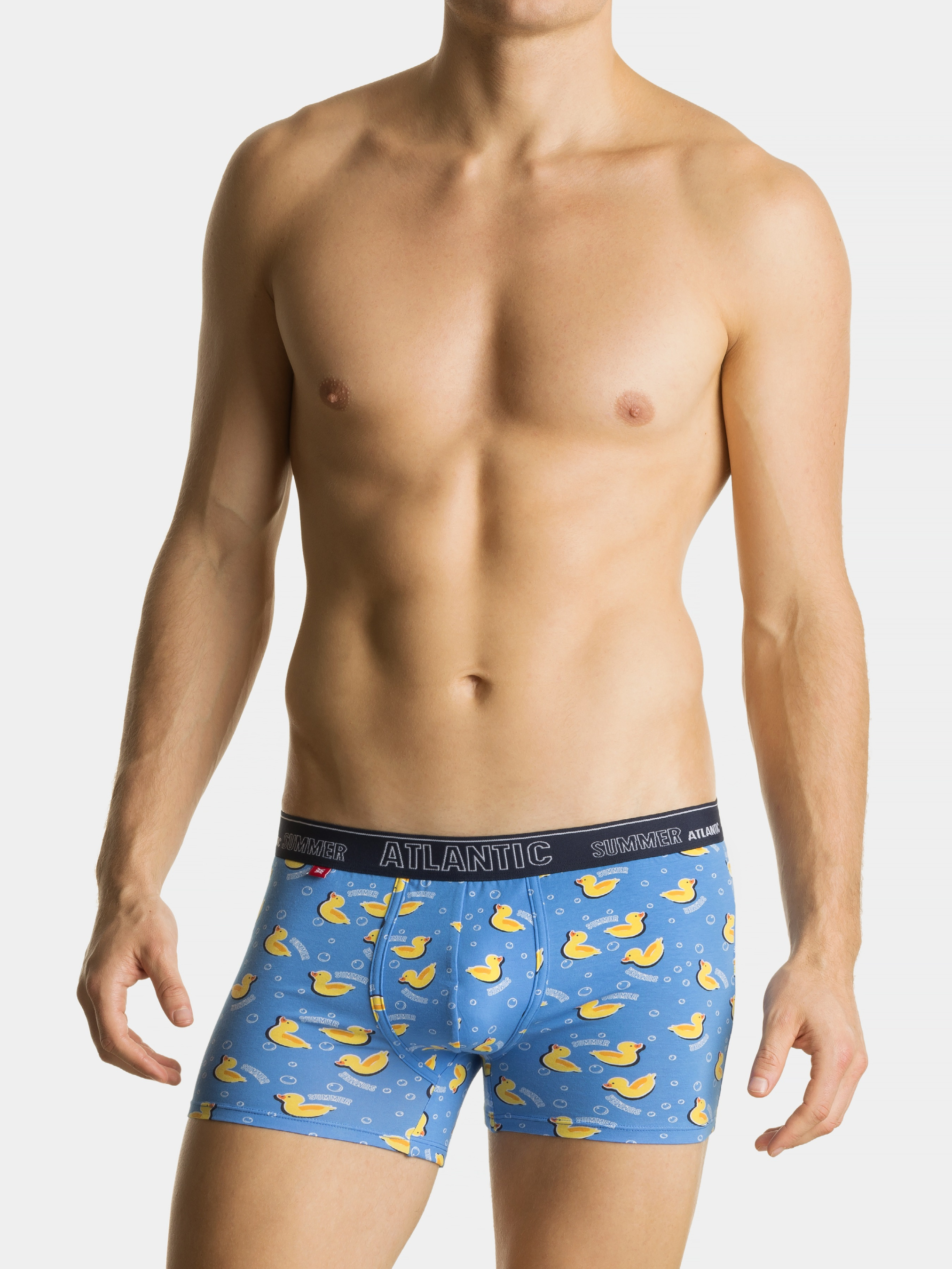Набор трусов из 2 шт Atlantic изготовлены из высококачественного хлопка, эти трусы обеспечивают приятное ощущение на коже, позволяя ей дышать в течение всего дня. Забавные уточки придают этим трусам неповторимый и игривый вид. Это идеальный способ выделиться среди серых будней. Стильная внешняя резинка с нашим логотипом обеспечивает надежное прилегание и придаст вашему образу нотку элегантности. Дарите себе яркий стиль и невероятный комфорт!