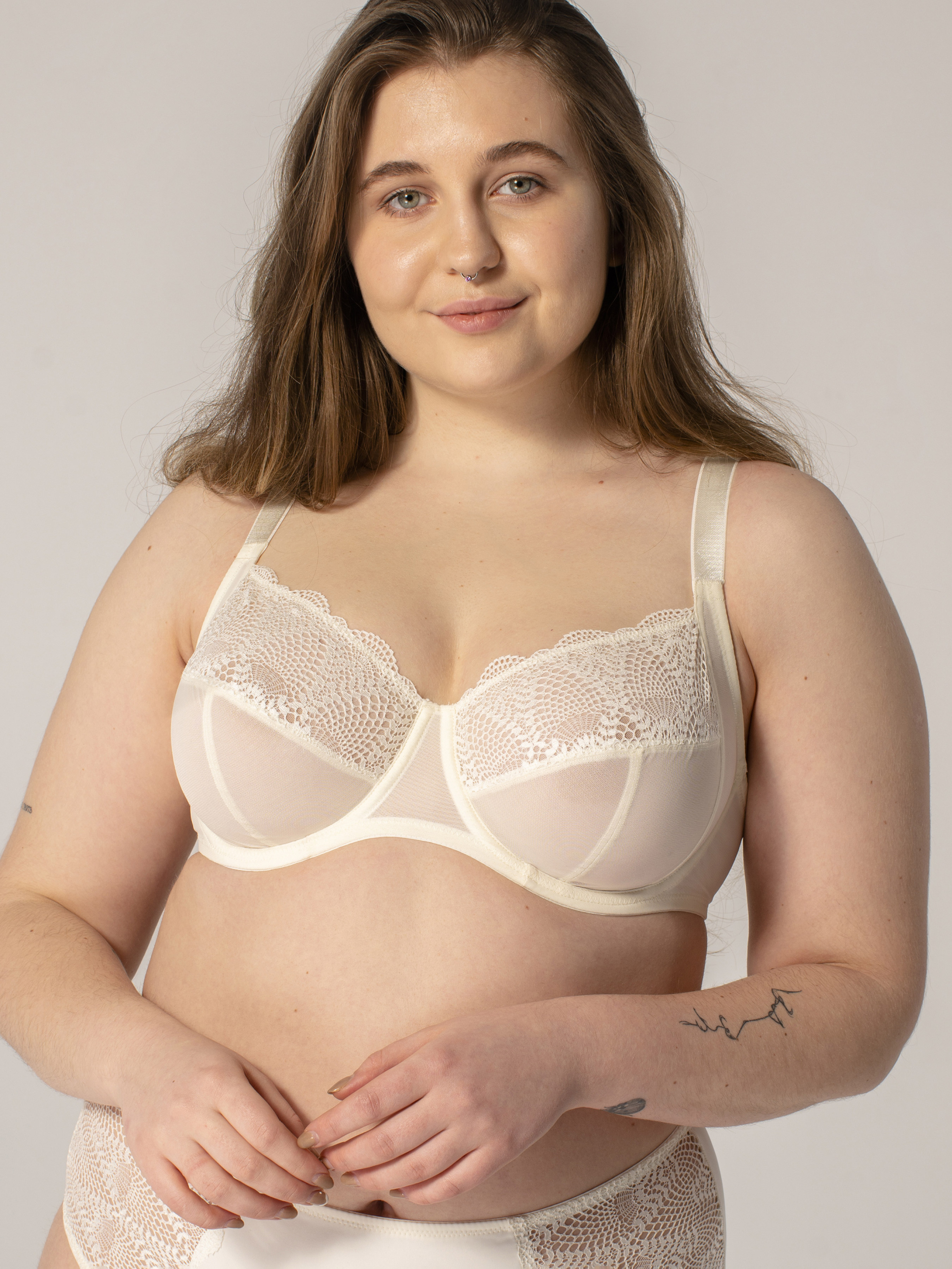 - Мягкая чашка с боковой корректирующей деталью в сочетании с эластичным кружевом и сетчатчатым полотном; - Подкладка чашки из неэластичной сетки для поддержки и фиксации груди. Благодаря такой подкладке кружево не растягивается; - Боковая корректирующая деталь соберет грудь с подмышечной зоны, а тройное диагональное членения максимально округлит грудь; - Верхняя часть чашки из эластичного кружева придаст легкости и скроет незначительную асимметрию груди, если она есть; - Бокова часть пояса бра из двойной, плотной и эластичной сетки; - По краям боковых деталей пояса бра — эластичная резинка. Такая технология обеспечивает удобную посадку и отличную фиксацию на теле; - Несъемные бретели имеют внутреннюю рельефную структуру, благодаря которой регулятор не скользит и отлично фиксируется на любой высоте; - Несъемные бретели, 3 ряда крючков и петель правильно распределят нагрузку на плечи и спину; - Металлическая фурнитура с нейлоновым покрытием в тон цвета бра.