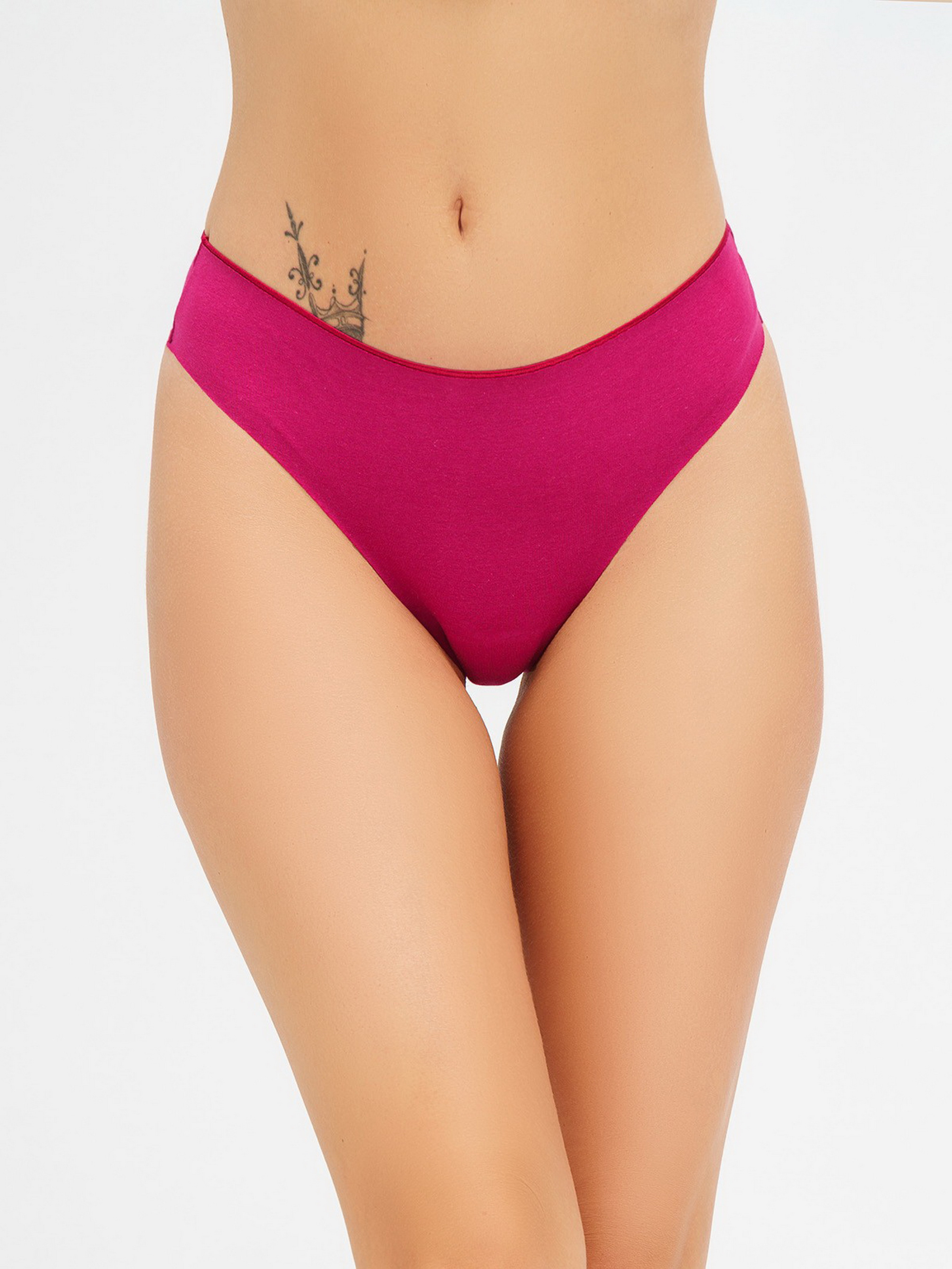 Фиолетовые бесшовные однотонные трусики стринги. Состав: 85% полиамид, 15% спандекс. Материал: Трикотаж.