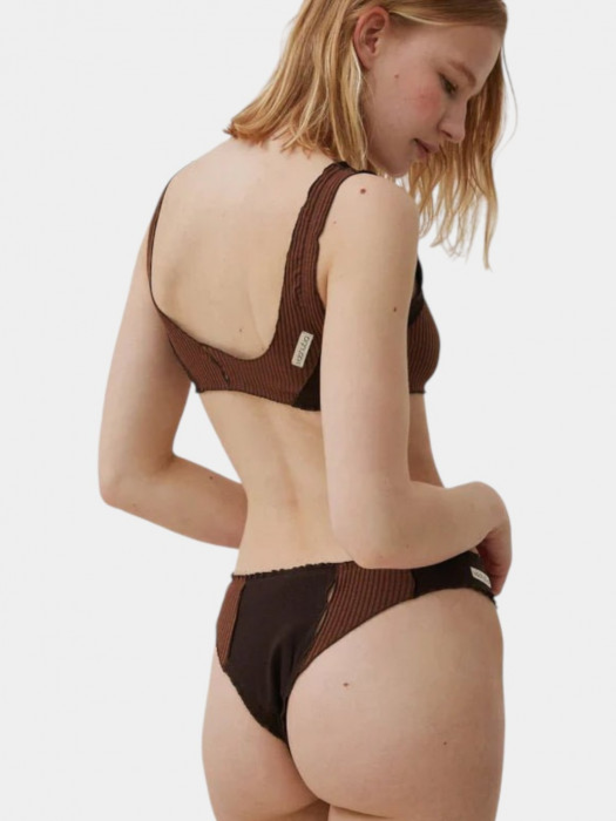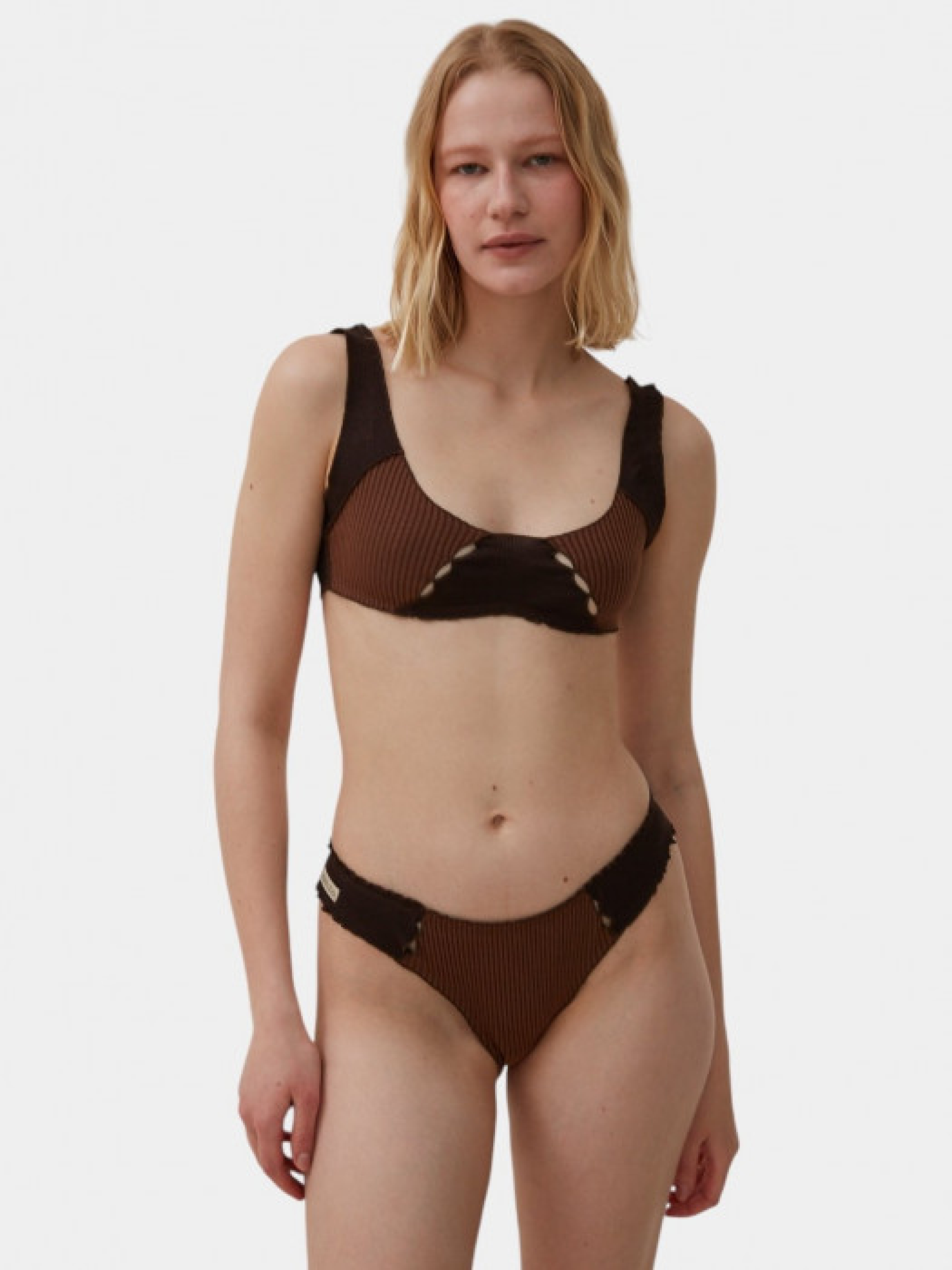 Танга выполнены в драпированном стиле с декоративными стяжками и волнами. Два вида рубчика и детали ручной работы подчеркивают его оригинальность. Изготовлен из экологически чистого мягкого хлопка, сертифицировано по стандарту ISO. Рекомендуется только ручная стирка при температуре до 30°.