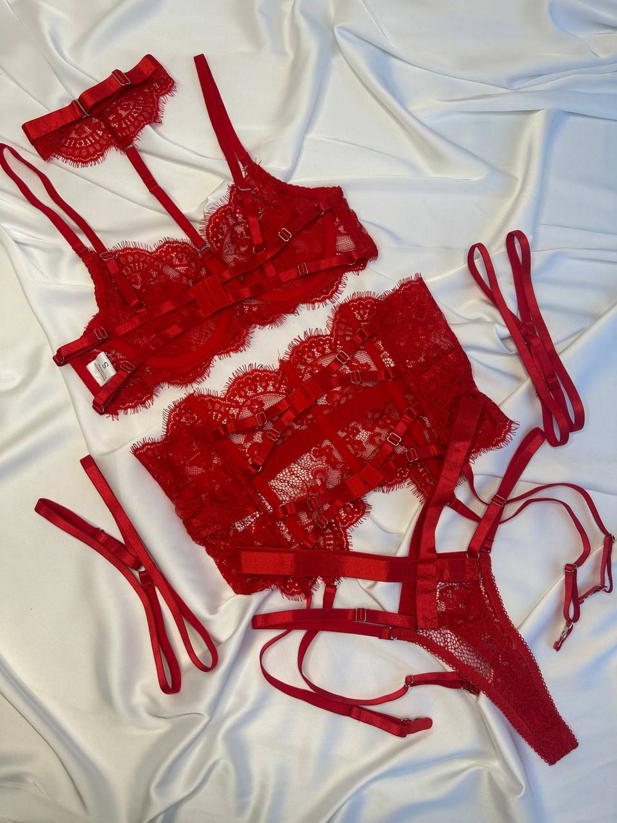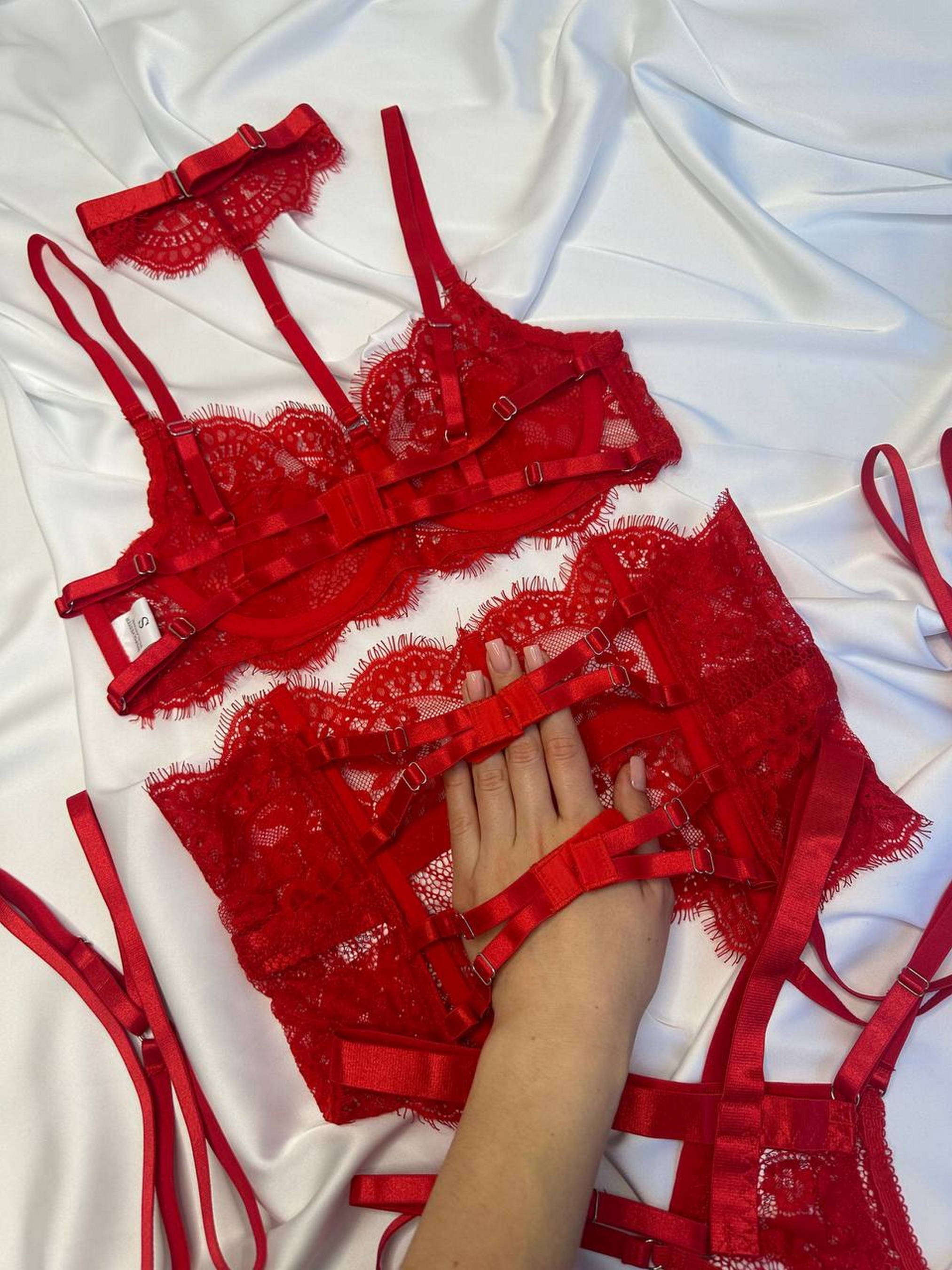 Комплект женского белья (чокер, бюстгальтер, трусики, пояс, гартеры) Nova Vega. Элегантность и обаяние в каждой детали! Стильный комплект белья из приятных на ощупь материалов. Изящные линии, продуманный крой и гармоничный дизайн подчеркивают женственность и придают уверенность. Размерная сетка: S: грудь 85-89, бедра 86-93 М: грудь 89-92, бедра 94-98 L: грудь 93-97, бедра 98-105 Товар не подлежит возврату или обмену.