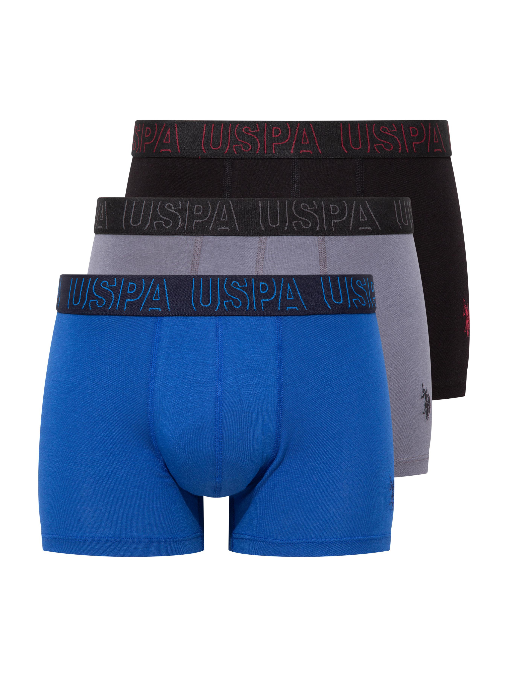 Набір (3 шт) трусів-боксерів чоловічих U.S. Polo Assn з індивідуальним дизайном.Колір:Антрацит/Синій/Чорний. Середня посадка.Колір:темно-синій,сірий меланж. Мають зручну брендовану резинку, що не перетискає. Виготовлені з високоякісних матеріалів, комфортні для повсякденного носіння.