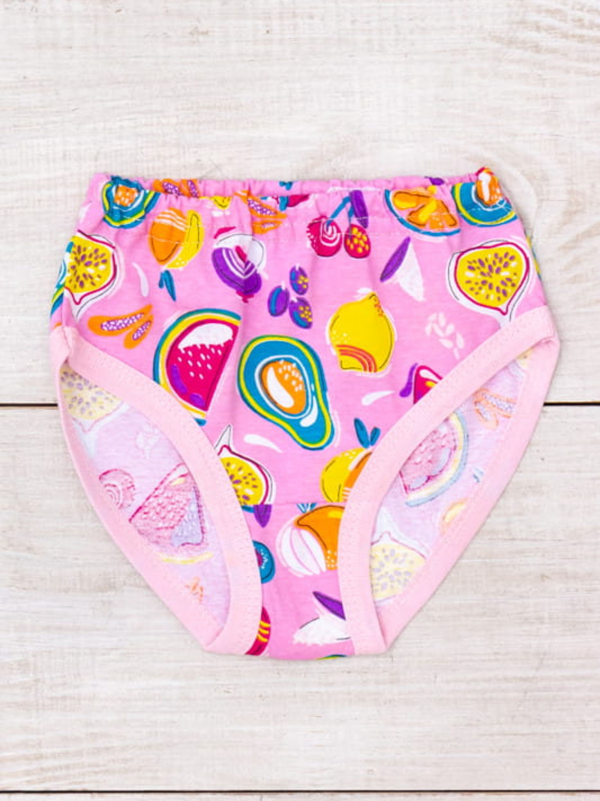 Полотно: кулір принтований Склад полотна: 100% бавовна Розмір: 86-134 Труси для дівчинки – це ідеальне поєднання комфорту і стилю для щоденного носіння. Виготовлені з м’якого і дихаючого матеріалу, вони забезпечують відмінний комфорт і легкість. Еластичний пояс і продуманий крій забезпечують ідеальне прилягання без дискомфорту. Ці труси ідеально підходять як для активного відпочинку, так і для повсякденних занять. Доступні в різних розмірах, вони легко поєднуються з будь-яким одягом, додаючи дівчинці впевненості і стилю.
