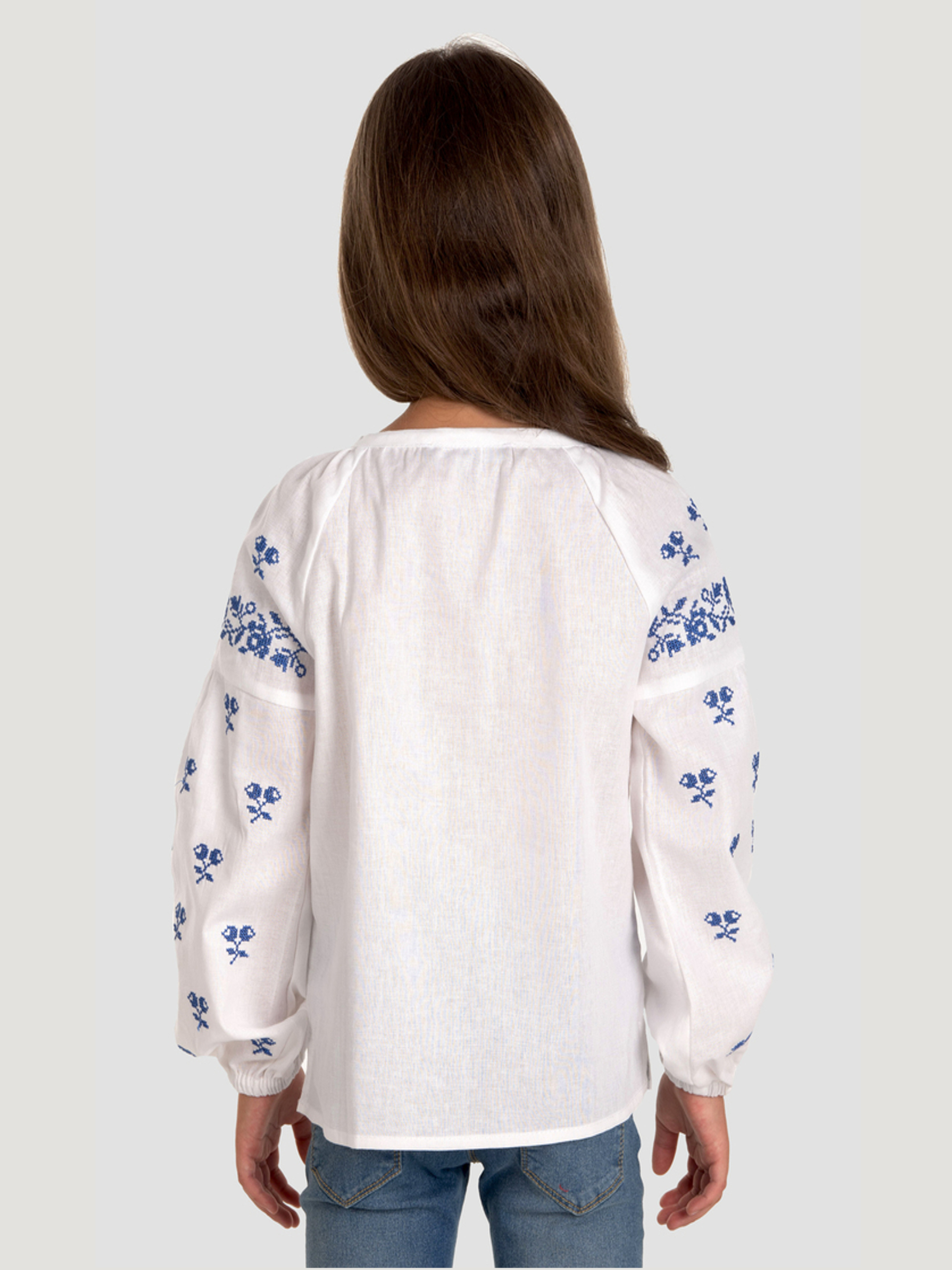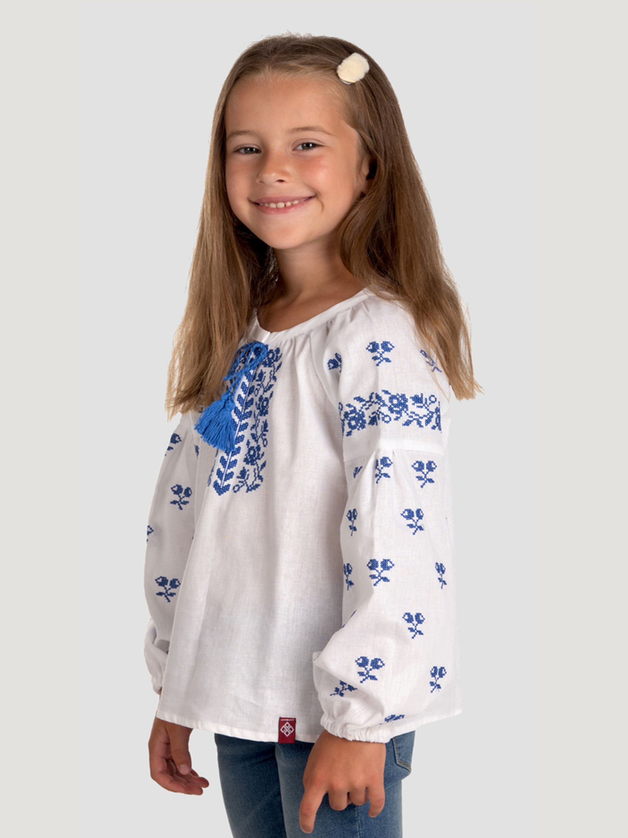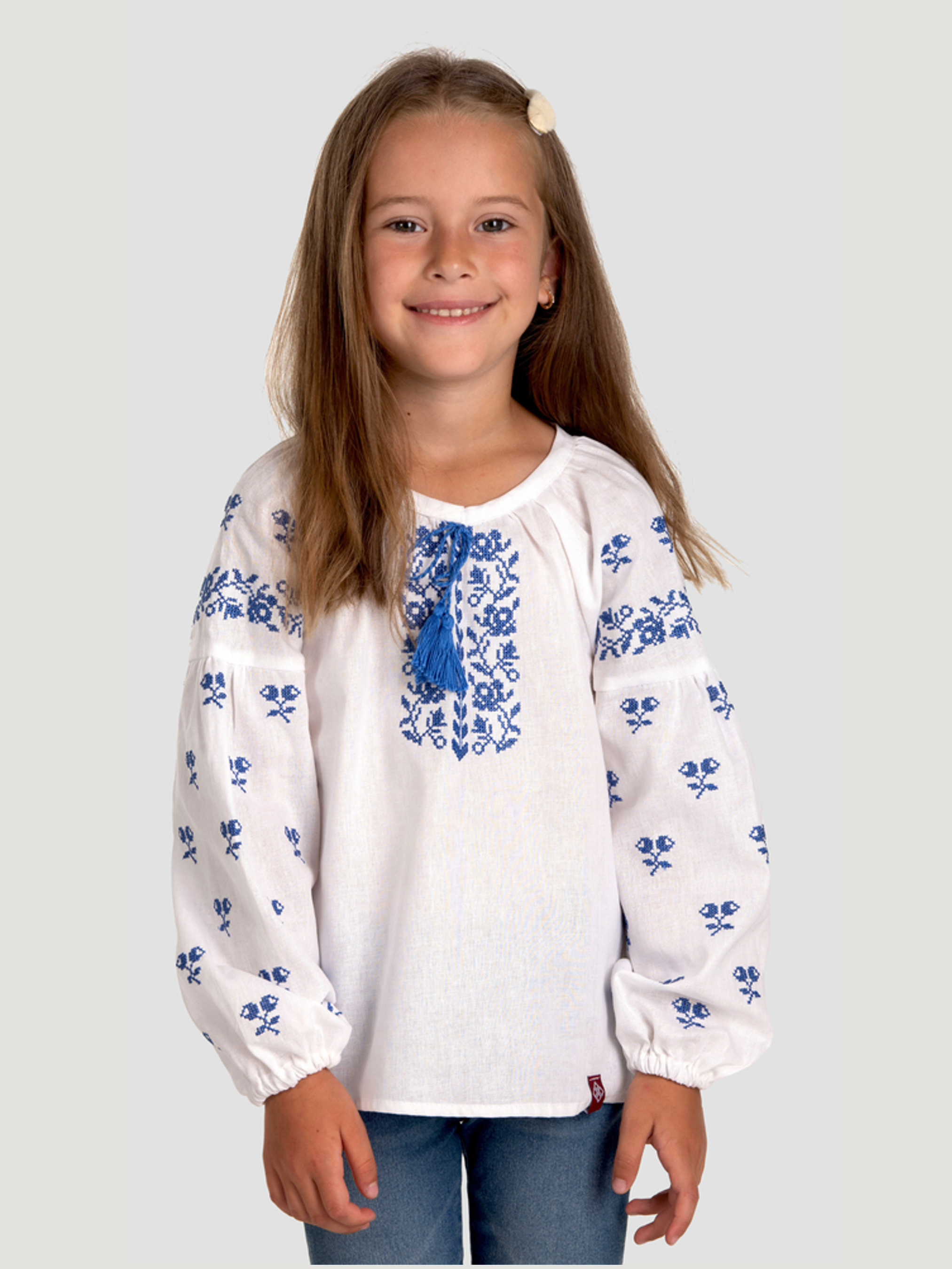 Характеристики: Довжина рукава: довгий рукав Колір тканини: білий Матеріал: бязь Склад тканини: 100% бавовна Догляд: ручне прання машинне прання "делікатне" при температурі 20 °C прасування виробу з відпарюванням при середній температурі 150 °C хімічна чистка заборонена відбілювання заборонено Опис та переваги: Ошатна вишиванка для дівчинки від торгової марки «Фолк Мода» виконана з білосніжного полотна натуральної бязі та прикрашена ніжною вишивкою хрестиком синіми нитками. Модель поєднує в собі традиційну символіку української вишивки та сучасний комфорт. Особливості моделі: прямий крій забезпечує зручність рухів, дозволяє носити сорочку заправленою або навипуск; довгі широкі рукави зі спущеною лінією плеча оздоблені святковою вишивкою та мають еластичну гумку на манжетах; вишивка хрестиком синіми нитками утворює витончений рослинний орнамент, який прикрашає передню частину сорочки та рукави; округлий виріз горловини регулюється декоративними зав’язками-кутасиками; тканина — натуральна бязь, відома своєю міцністю, повітропроникністю, м’якістю та комфортом у носінні; виріб простий у догляді: допускається ручне або машинне прання на делікатному режимі. Образ із вишиванкою завжди виглядає вишукано, стильно та патріотично. Ця модель стане чудовим вибором для шкільних чи домашніх свят, тематичних фотосесій, прогулянок містом. Оберіть вишиванку «Фолк Мода» — і ви поповните гардероб дівчинки стильним національним одягом, що підкреслить її індивідуальність та ніжність.