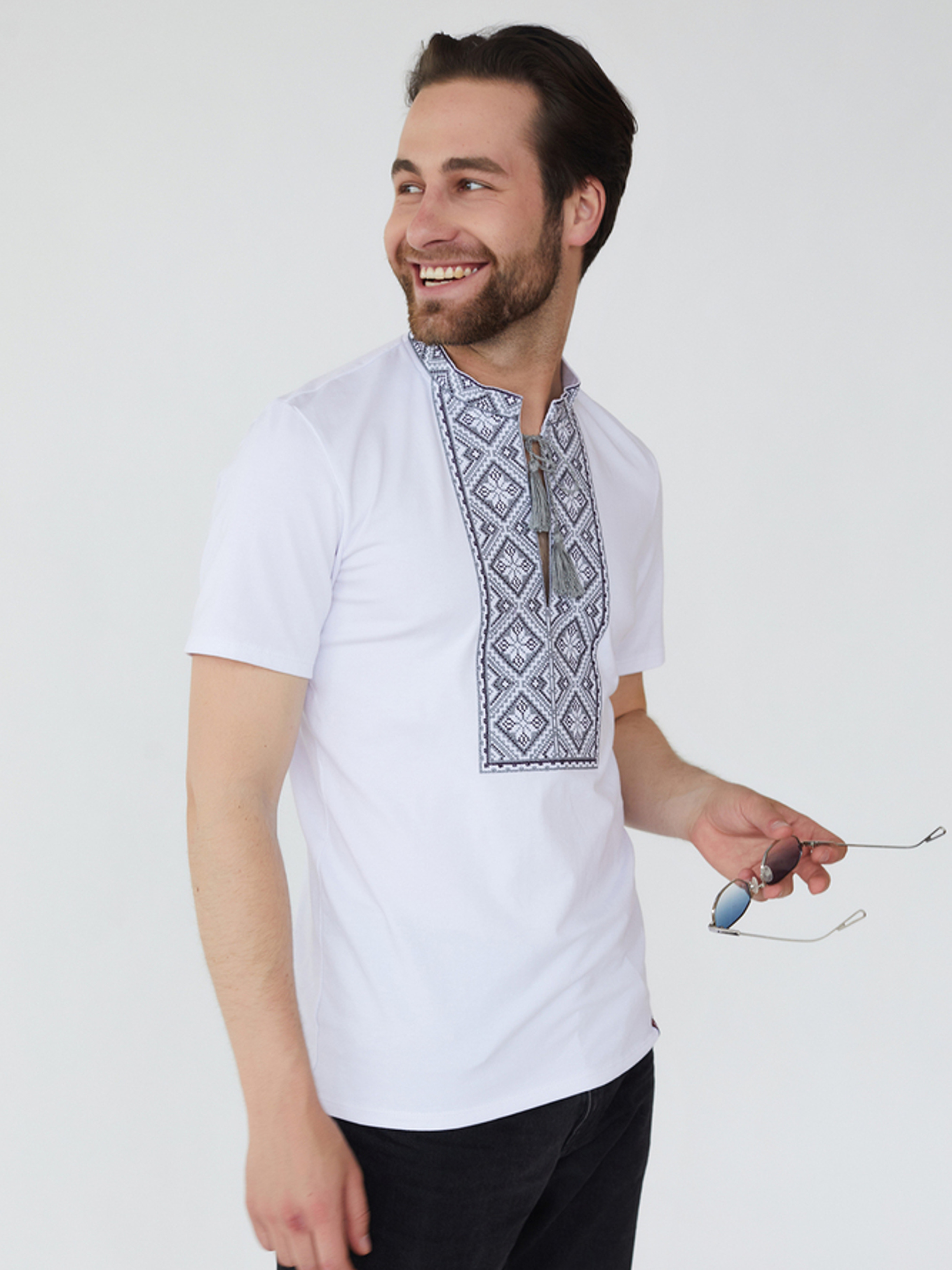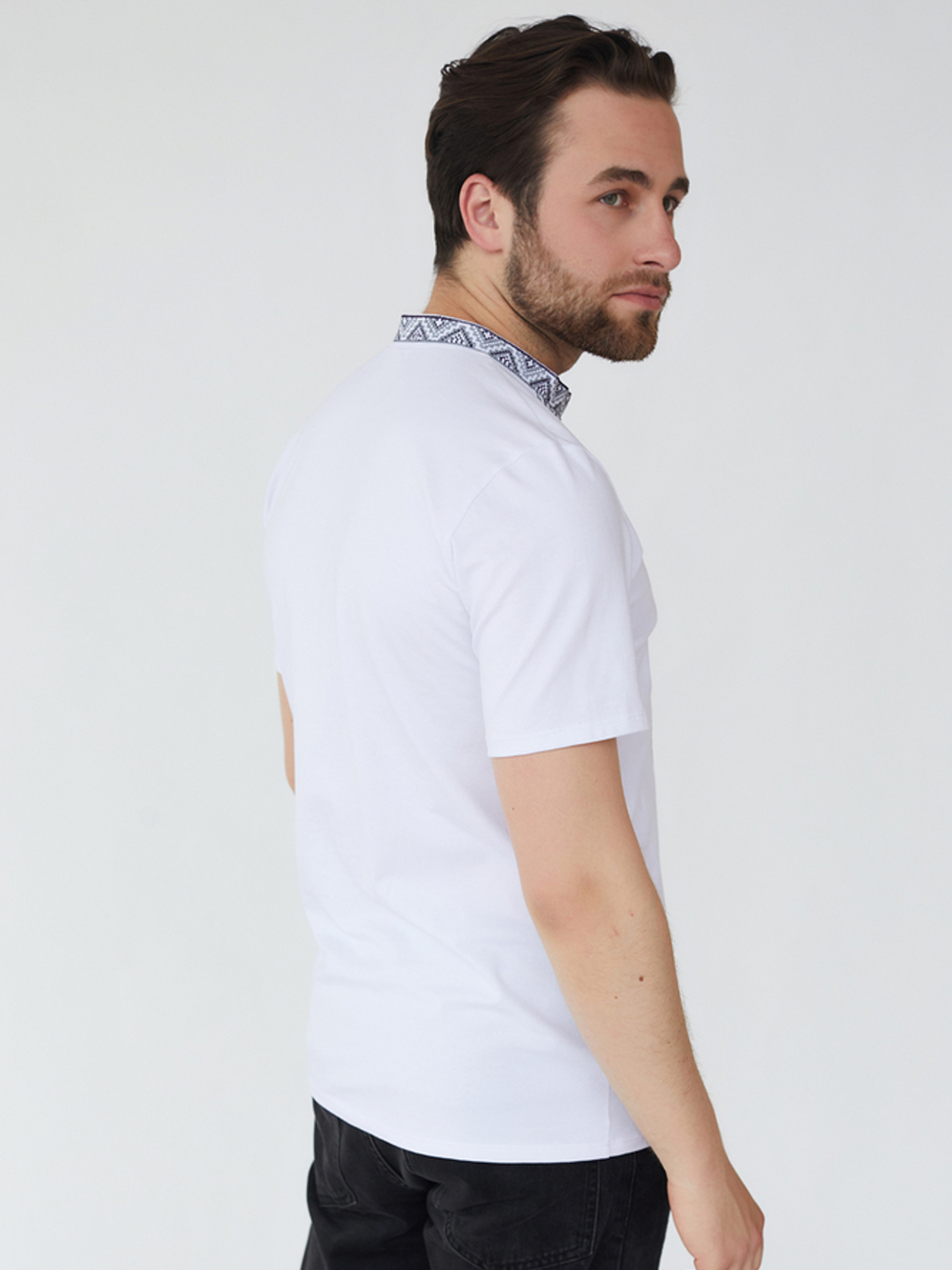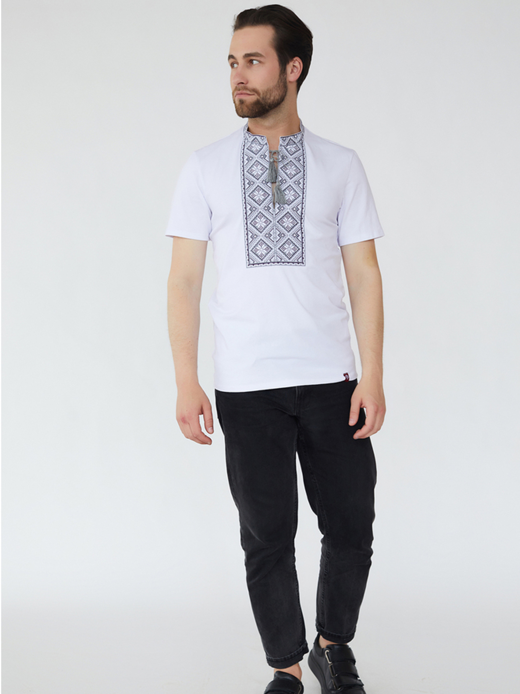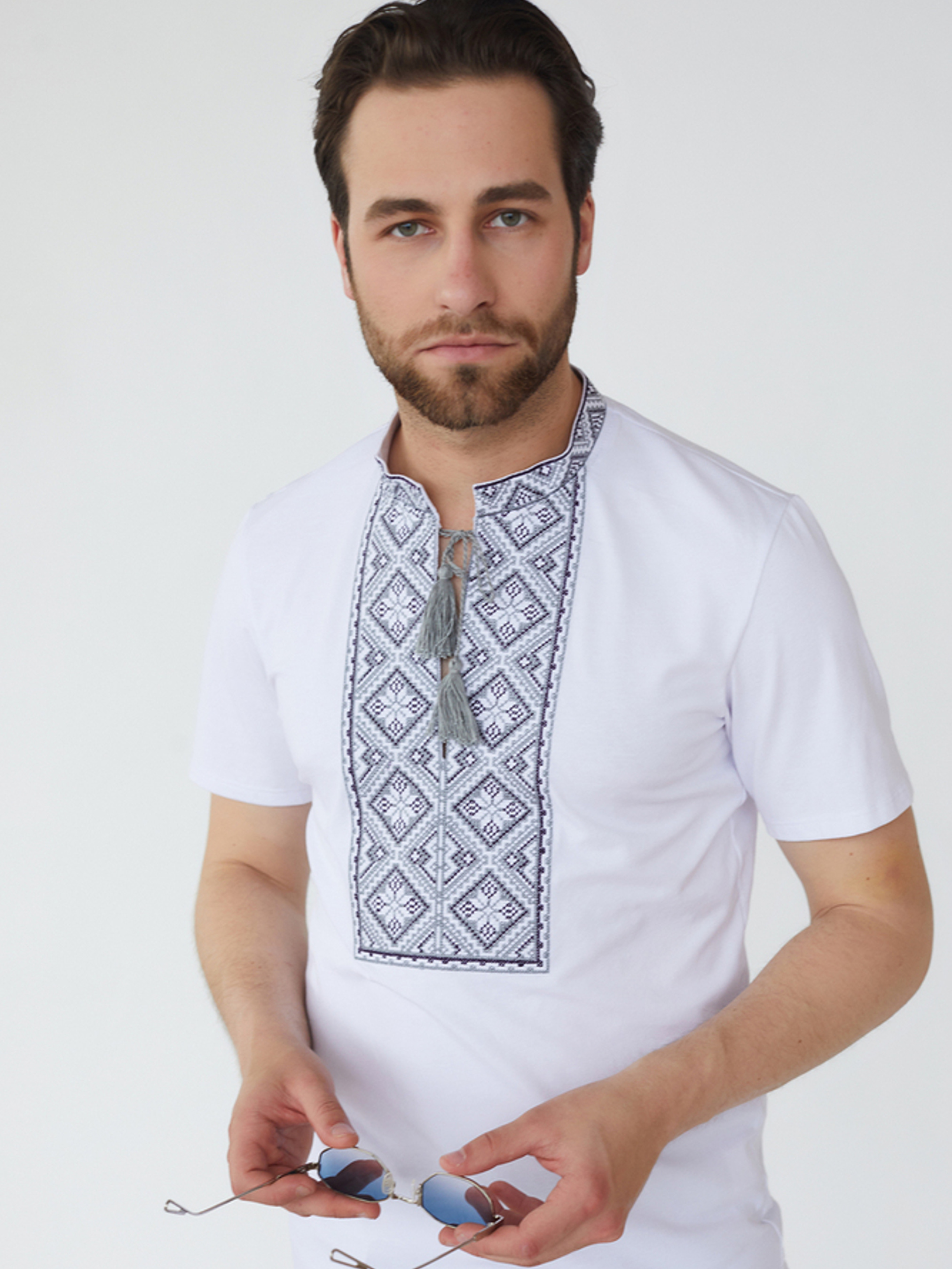 Характеристики: Довжина рукава: короткий рукав Колір тканини: білий Матеріал: стрейч кулір Склад тканини: 95% бавовна, 5% еластан Догляд: ручне прання машинне прання “делікатне” при температурі до 40 °C прасування з відпарювання при середній температурі до 150 °C хімічна чистка заборонена відбілювання заборонено Особливості та характеристики: виготовлена з натурального трикотажного полотна стрейч кулір, що поєднує м’якість бавовни та еластичність еластану; тканина приємна до тіла, добре пропускає повітря, не парить і не подразнює шкіру, забезпечуючи комфорт навіть у спеку; класичний білий колір створює ідеальний фон для контрастної вишивки, виконаної хрестиком різнокольоровими нитками; нитки зберігають насиченість кольорів навіть після багаторазового прання, не линяють і не тьмяніють; прямий силует футболки гарно сідає по фігурі, не обмежуючи рухів; горловина округла, акуратно оброблена еластичною бейкою, що не розтягується з часом; український орнамент на грудях підкреслює національний стиль та додає виробу унікальності. Футболка з вишивкою — це вдале поєднання традиційного українського колориту та сучасного зручного крою. Вона стане чудовим варіантом як для повсякденного носіння, так і для святкових подій, зберігаючи патріотичний дух і комфорт у кожному русі.