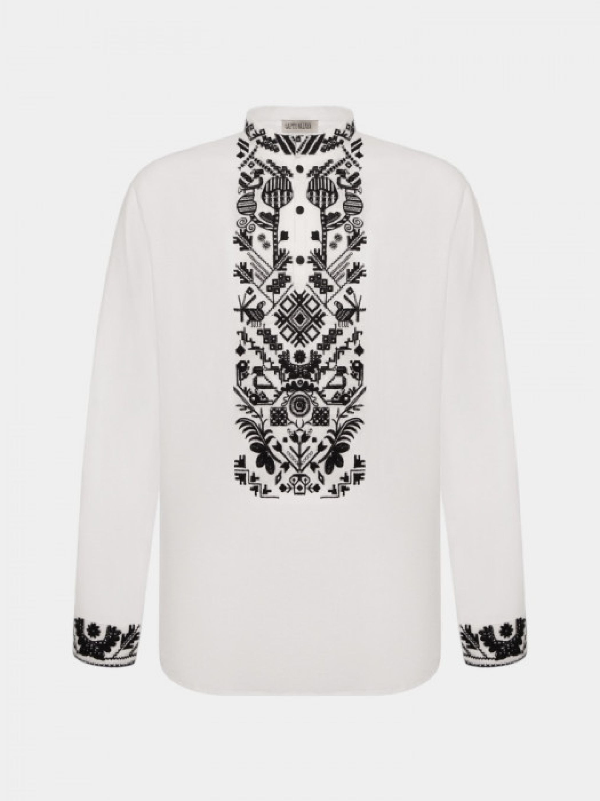 Вышиванка Единства выполнена из белого льна и украшена густой черной вышивкой, которая занимает центральную часть изделия и манжеты. Орнамент построен на традиционных украинских символах с геометрическими и растительными мотивами, создающими ощущение силы, гармонии и неразрывной связи. Воротник-стойка придает сдержанности, а прямой крой обеспечивает комфорт и универсальность в сочетании с разными стилями одежды. Рубашка вдохновлена народными орнаментами, цветными композициями и мотивами разных регионов Украины.