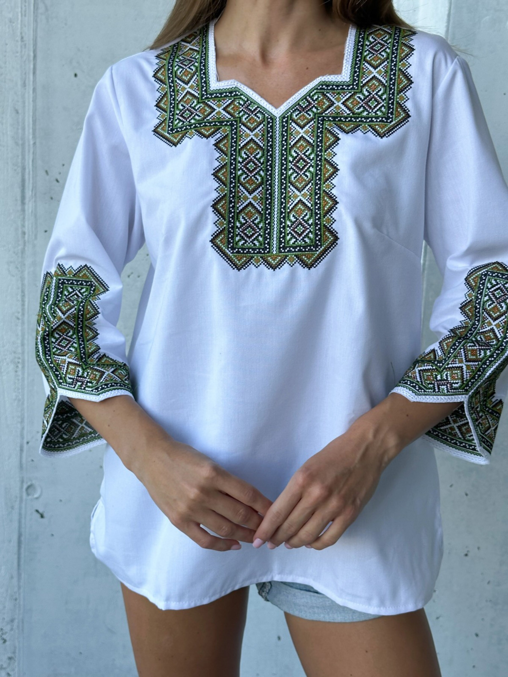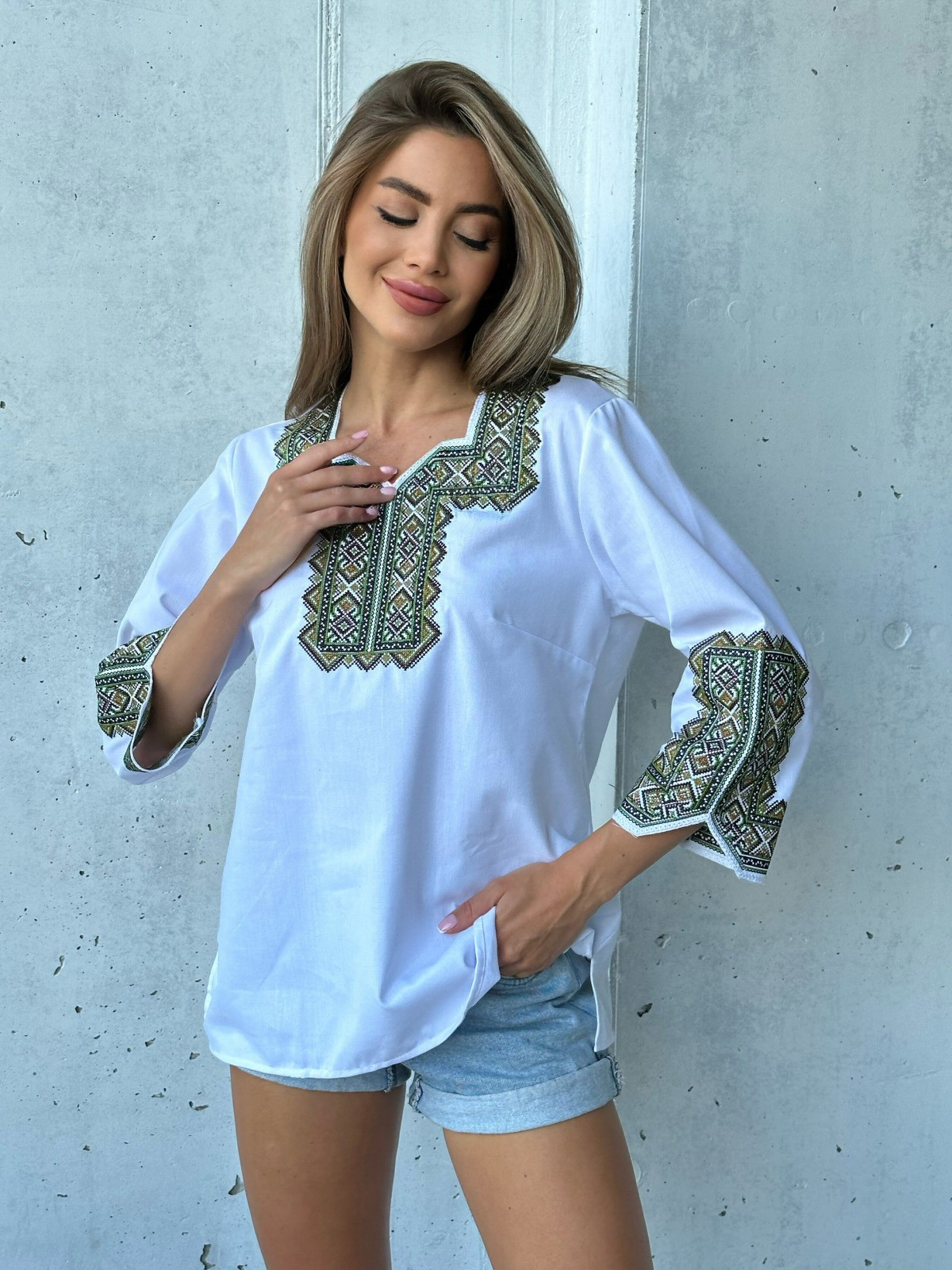 Вышитая рубашка ISSA Plus модель WN20-487_whitegreen
