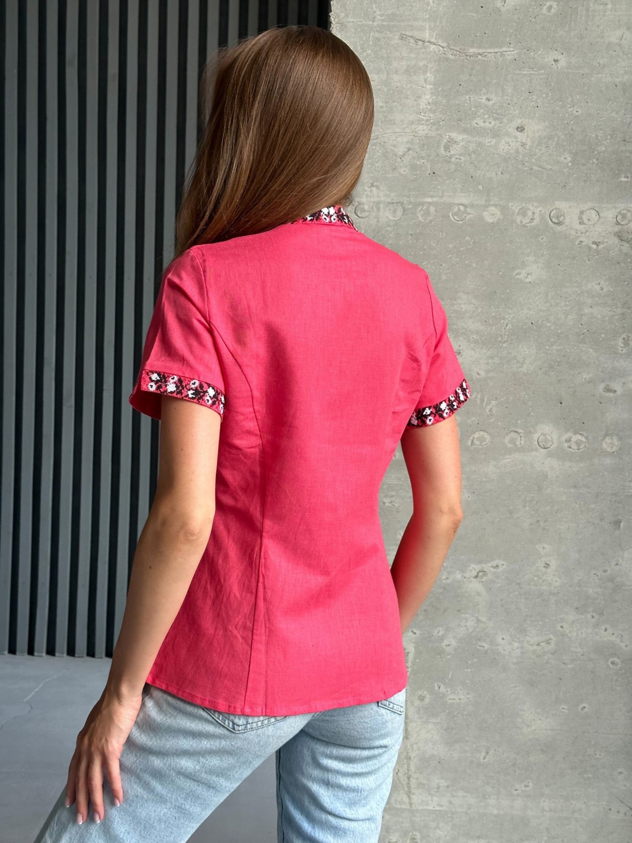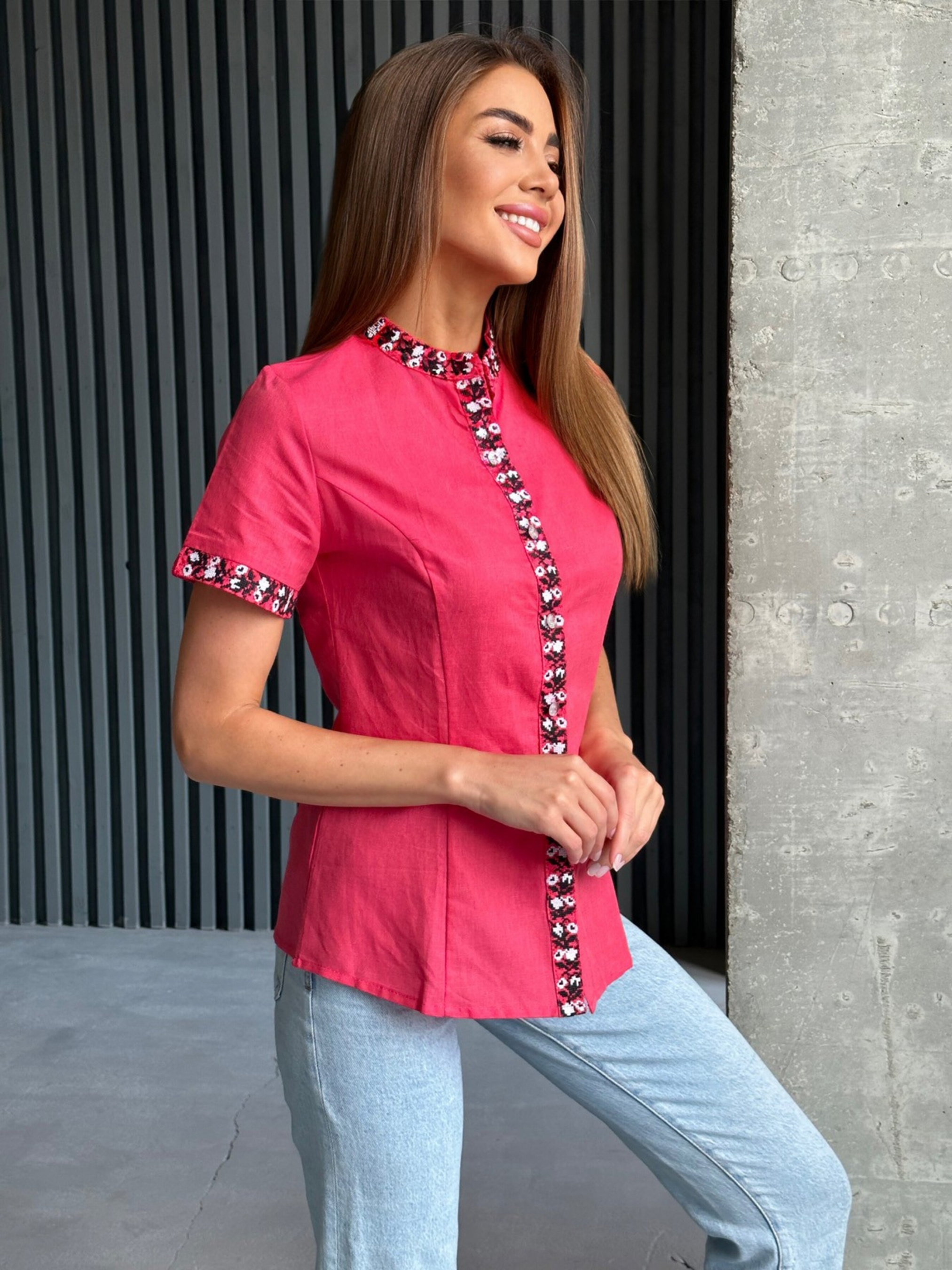 Вышитая рубашка ISSA Plus модель WN20-527_pink Фото