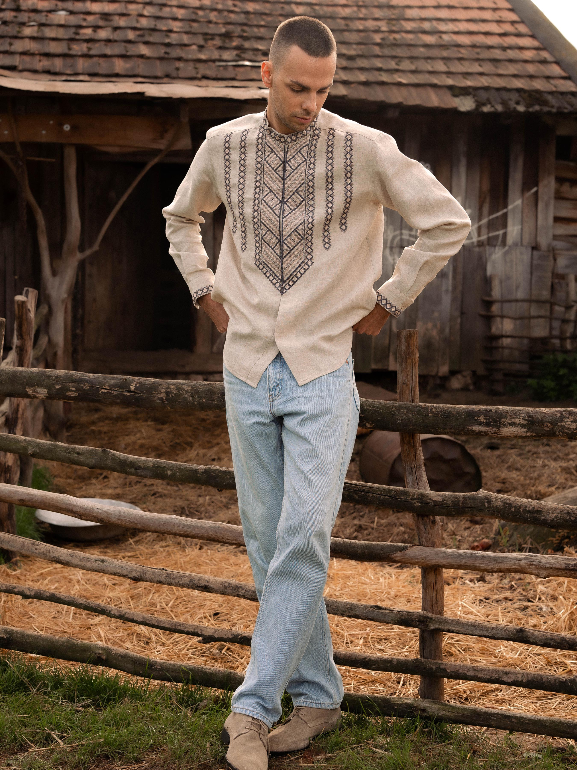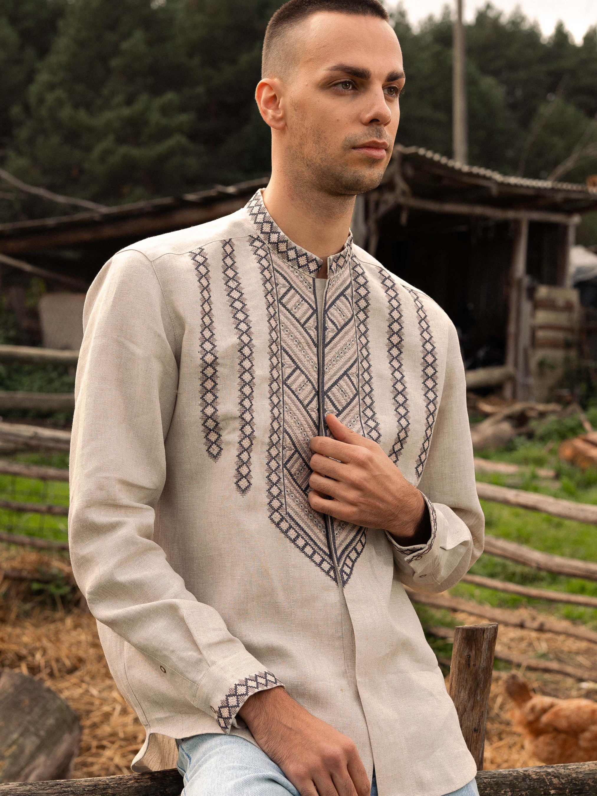 Вышитая рубашка Svarga модель SV-MS00484-1111-10002