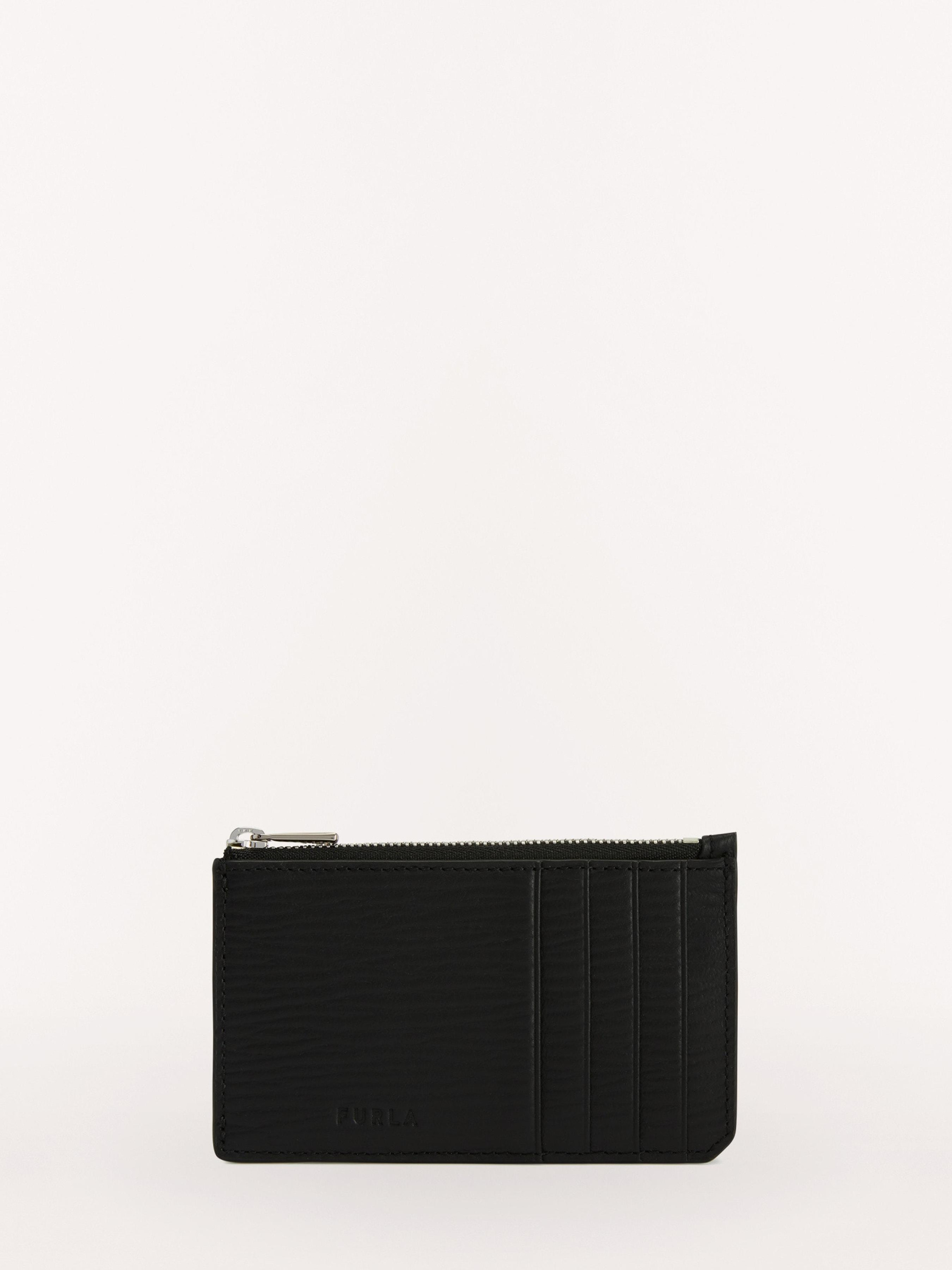 Визитница Furla MAN SIRIO ZIPPED CARD CASE на молнии из телячьей кожи с тиснением, восемь слотов для кредитных кард, один карман на молнии для банкнот, логотип Furla. Размер 13х8х1 см