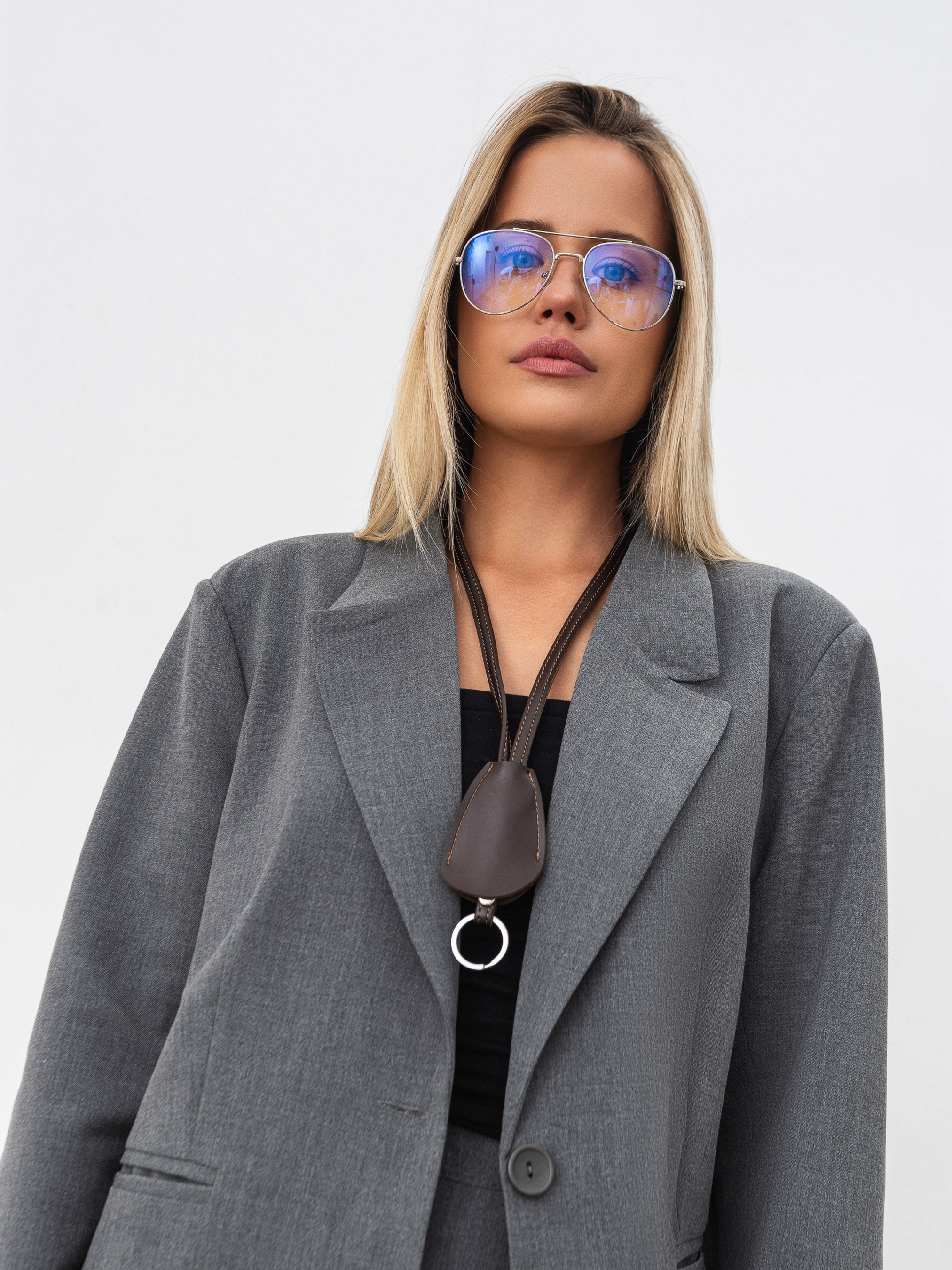 Лаконичная ключница на длинном ремешке. Вариант стильного аксессуара-ключницы, которую можно носить как дополнительный элемент на сумку или украшение на шею. Материал: качественный, эластичный заменитель кожи. Аксессуар имеет колечко для ношения ключей или других элементов.