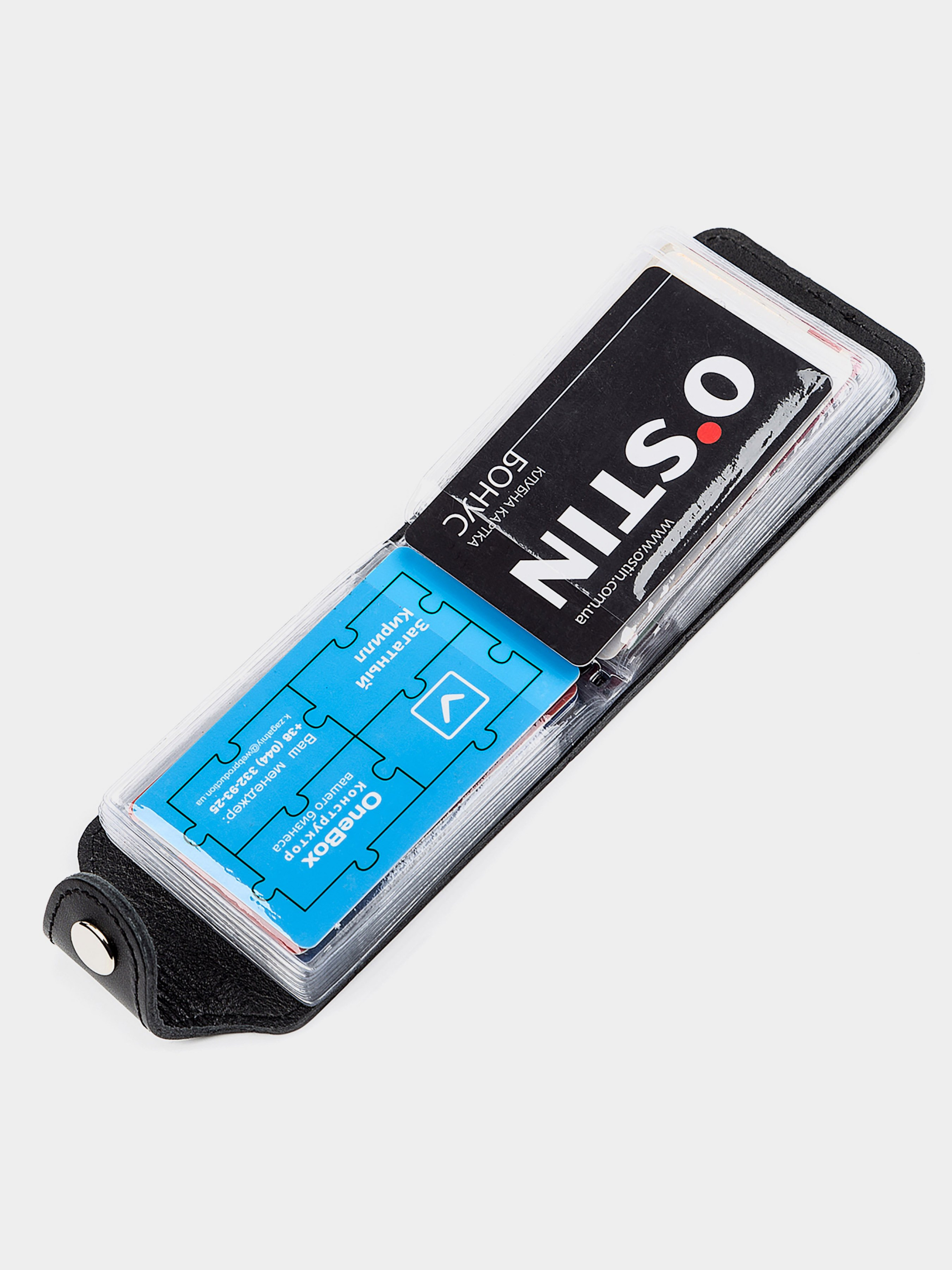 Материал: натуральная кожа; Размеры (ШхВ, см): 10х7; Цвет: черный; Страна производитель: Украина. Описание: - 20 двусторонних файлов для визиток и кредитных карт; - закрывается хлястиком на кнопку; Надежная визитница из натуральной кожи, мягкой и приятной на ощупь. Аксессуар прошит прочной светло-коричневой нитью, что отлично вписывается в дизайн и продлевает срок службы изделия.