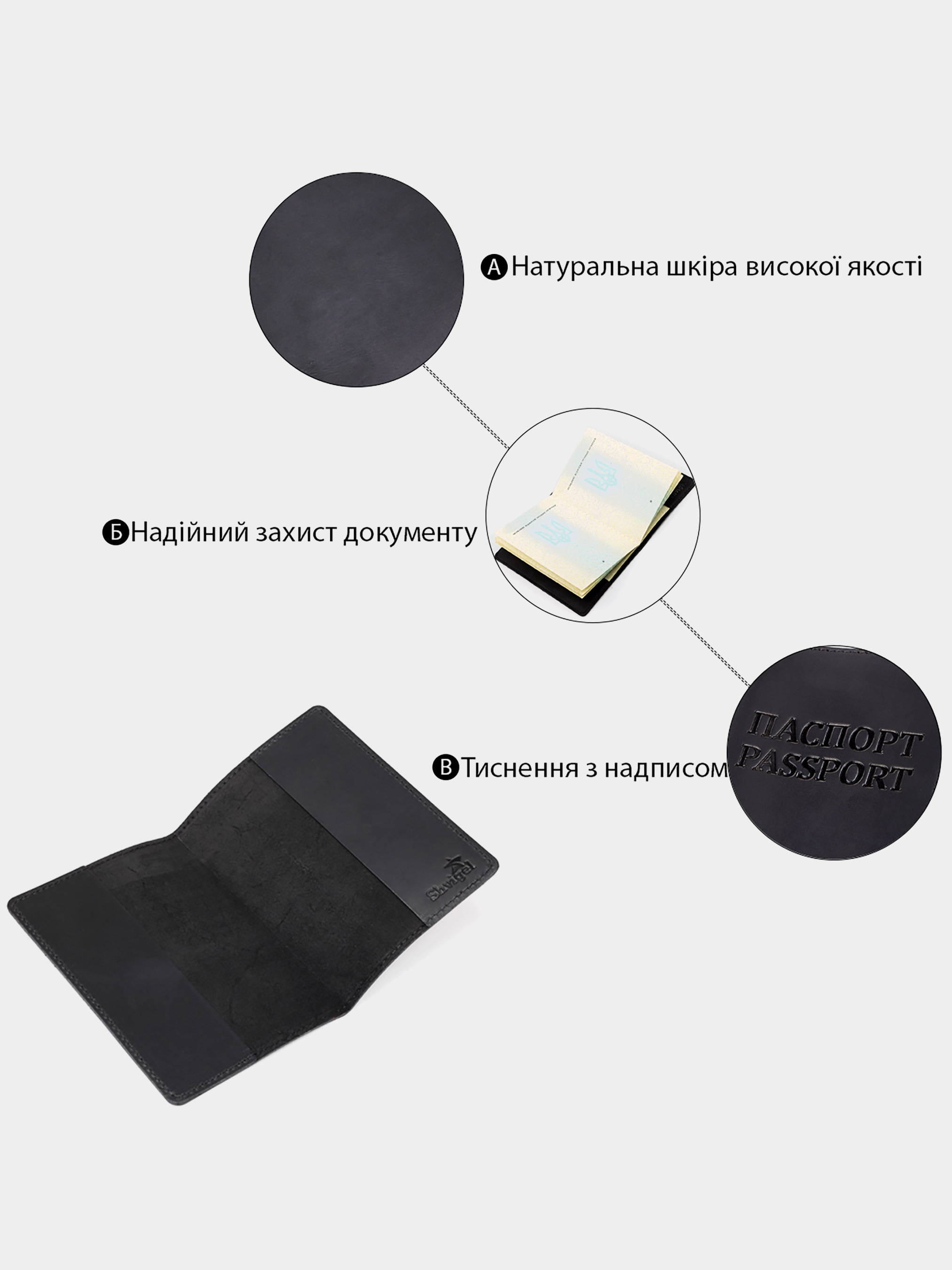 Материал: натуральная винтажная кожа; Цвет: черный; Размеры (ШхВ, см):9,5х13; Страна производитель: Украина. Великолепная кожаная обложка на паспорт из натуральной, высококачественной винтажной кожи, для которой характерны потертости и неоднородность окраса. Из-за этого изделия из такой кожи дольше держат презентабельный внешний вид. Современный высококлассный аксессуар, который станет незабываемым подарком для Ваших любимых и близких.