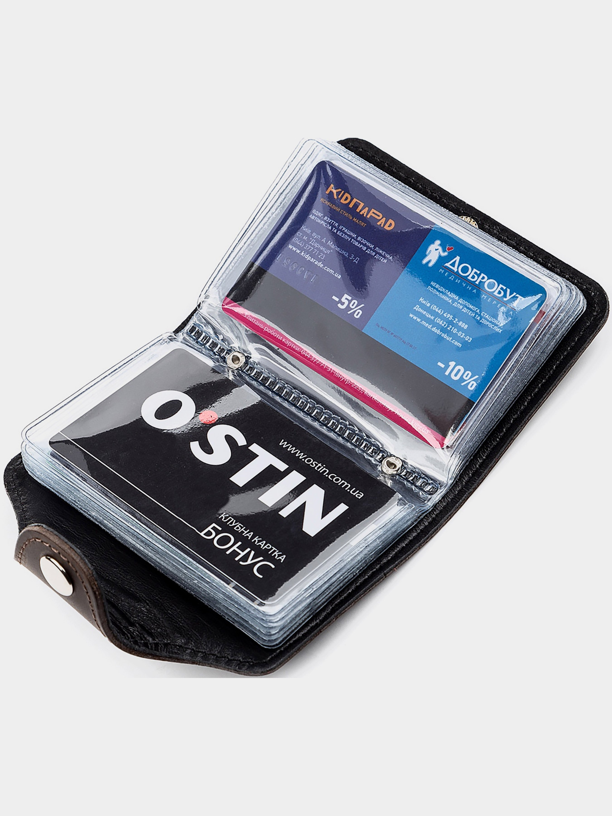 Материал: натуральная винтажная кожа; Размеры (ШхВ, см): 7,5х10,5; Цвет: коричневый; Страна производитель: Украина. Описание: - 10 двусторонних файлов для визиток и кредитных карт; - закрывается хлястиком на кнопку. Качественная визитница из натуральной винтажной кожи особенностью, которой есть потертости и неоднородность окраса. Со временем кожа затирается и шлифуется, так что некоторые следы исчезнут сами собой. Аксессуар прошит прочной светло-коричневой нитью, что отлично вписывается в дизайн и продлевает срок службы изделия.