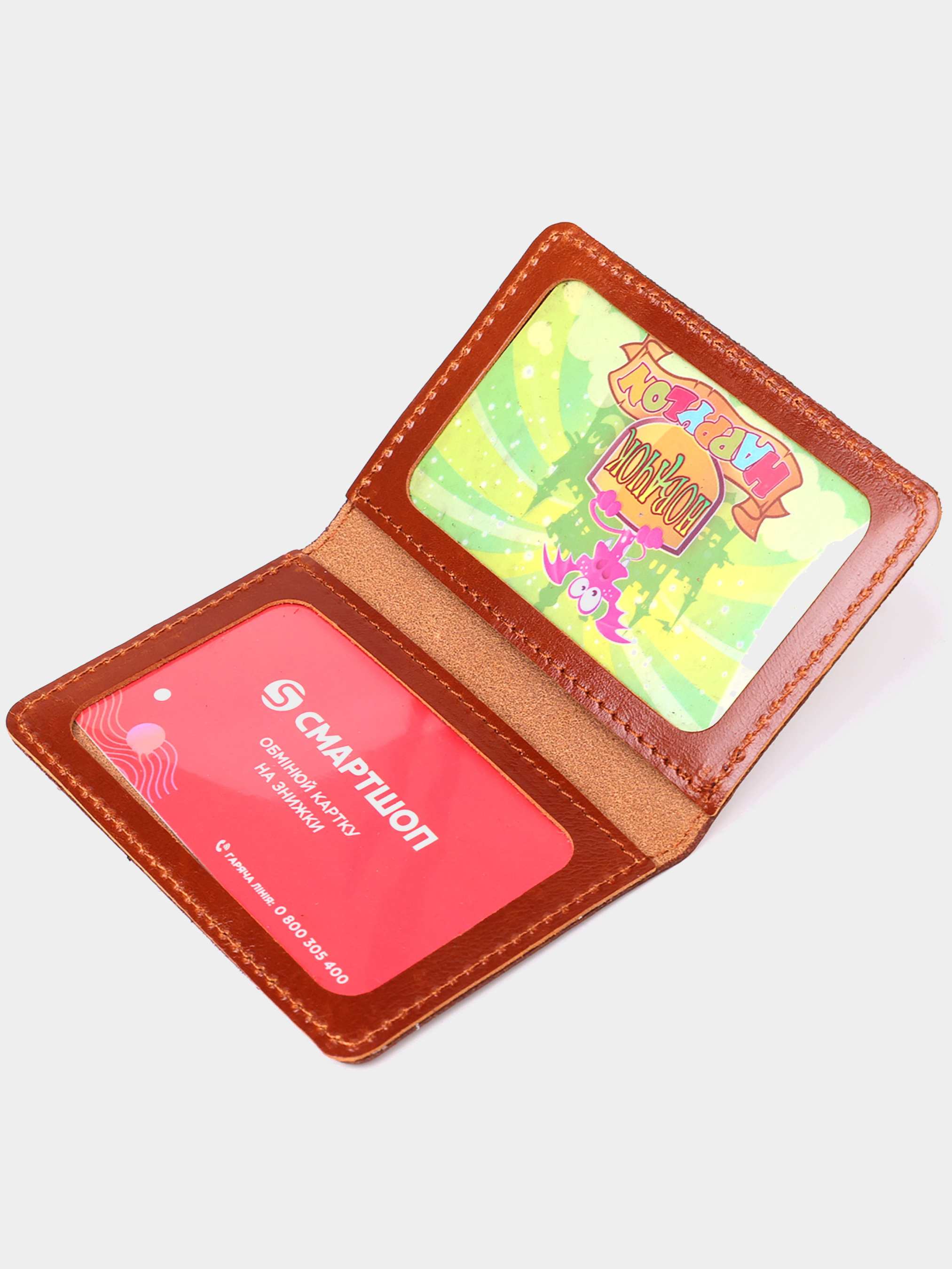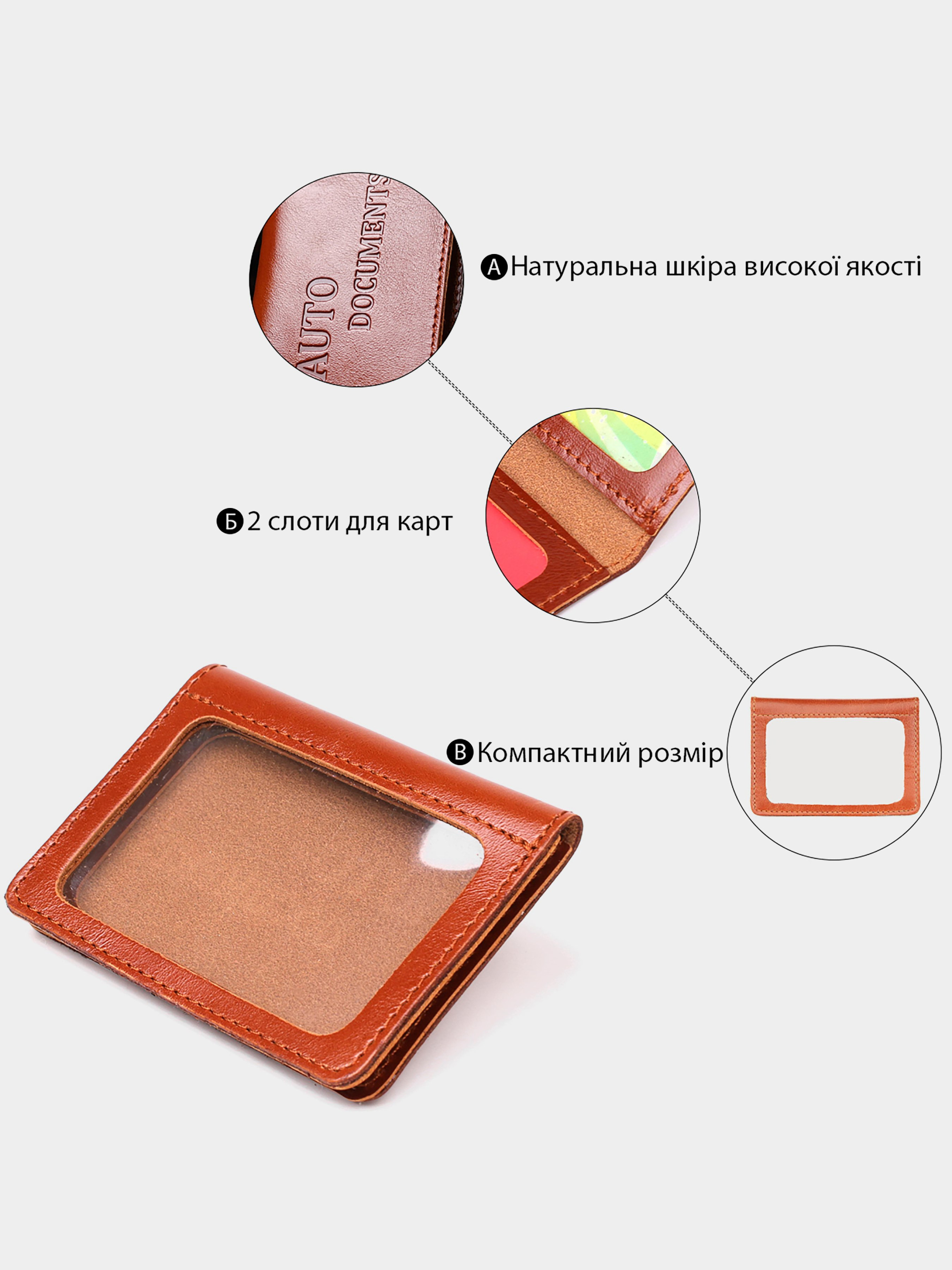 Размер: (ШхВ, см): 10х7 Материал: натуральная кожа Цвет: светло-коричневый Страна-производитель: Украина Великолепная и стильная обложка для удостоверений, светло-коричневого цвета, изготовлена из высококачественной натуральной кожи. Состоит изделие из трех прозрачных отделений для документов. Стильный и практичный аксессуар для Вашего максимального комфорта в повседневной жизни.