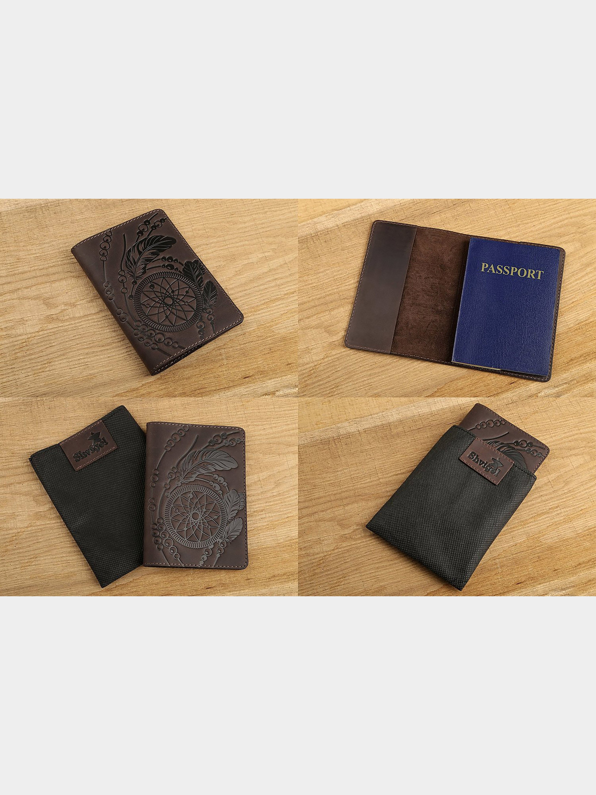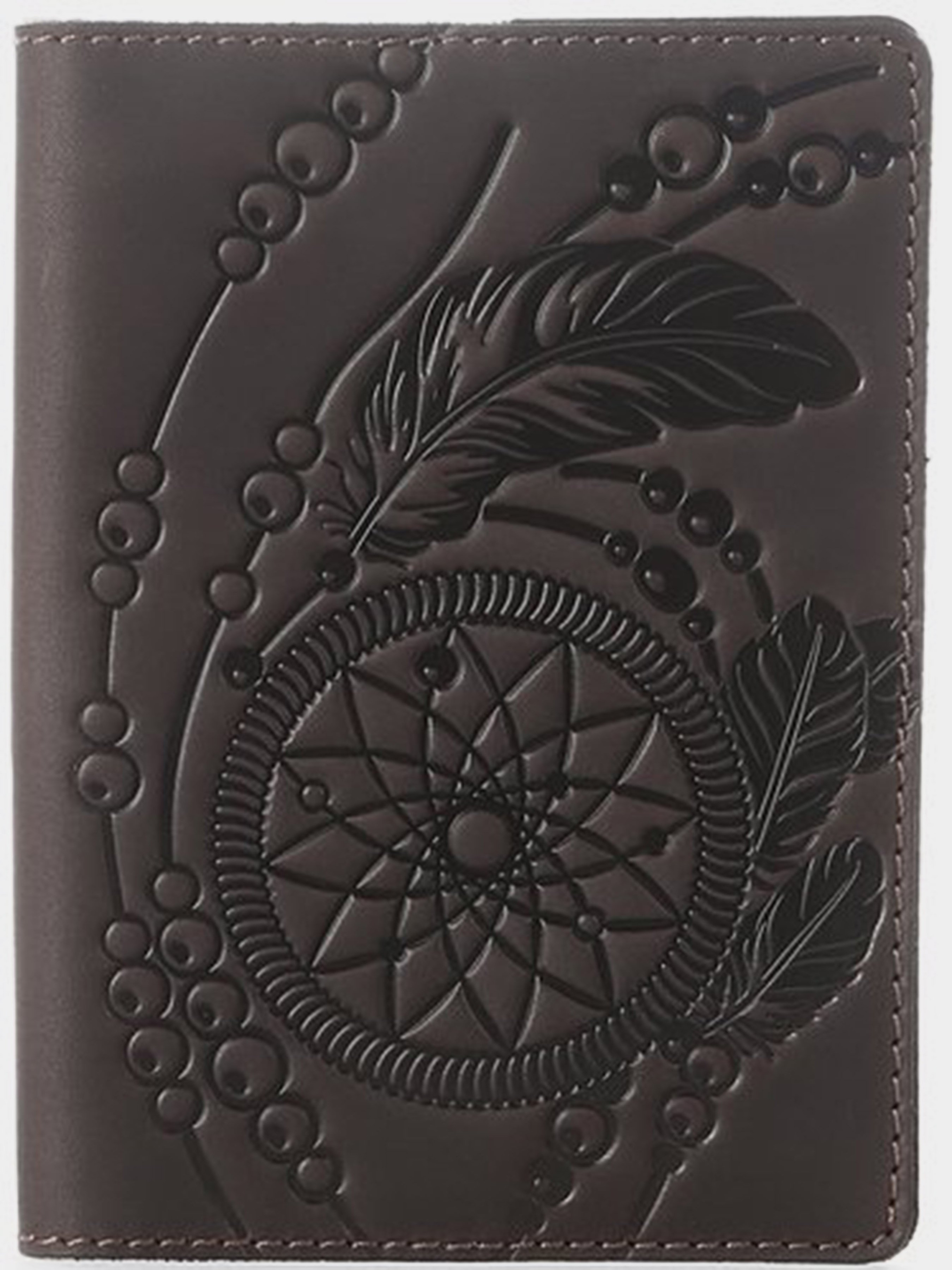Материал: натуральная кожа высокого качества; Цвет: коричневый; Размеры (ШхВ, см):9,5х13. Великолепная кожаная обложка с дизайнерским теснением Ловца Снов (dreamcatcher) на лицевой стороне. Данный индейский амулет символизирует защиту спящего человека от злых духов и пропускает только хорошие сны, в то время как плохие запутываются в паутине. Данная обложка на паспорт упакована в красивый, фирменный текстильный мешочек.