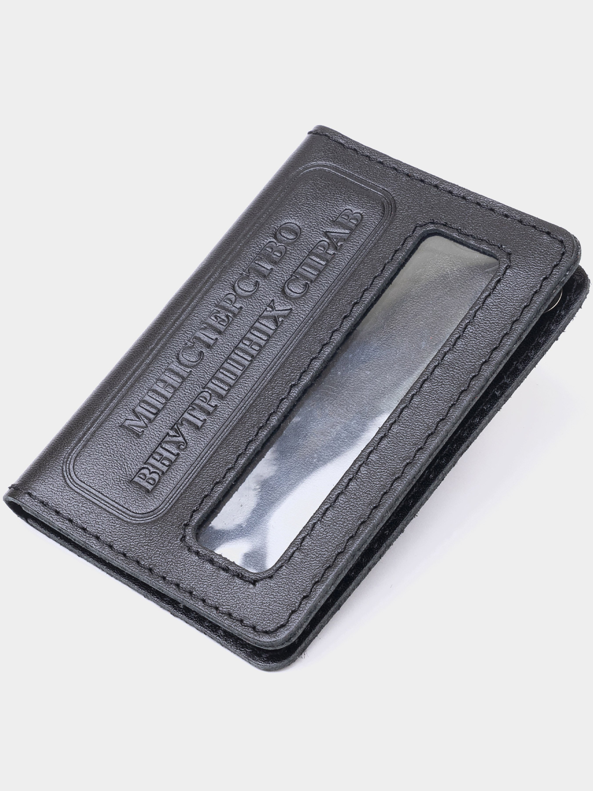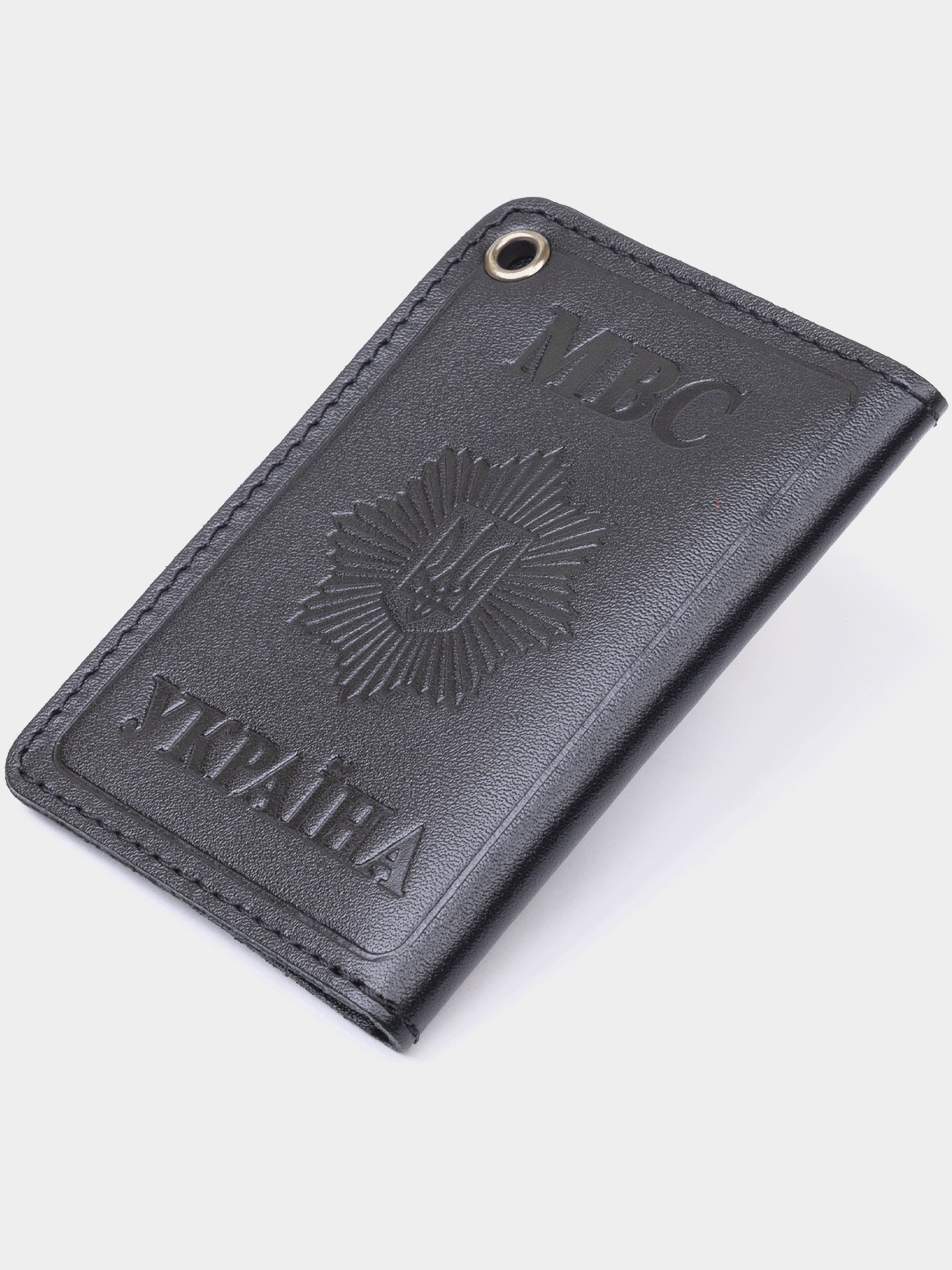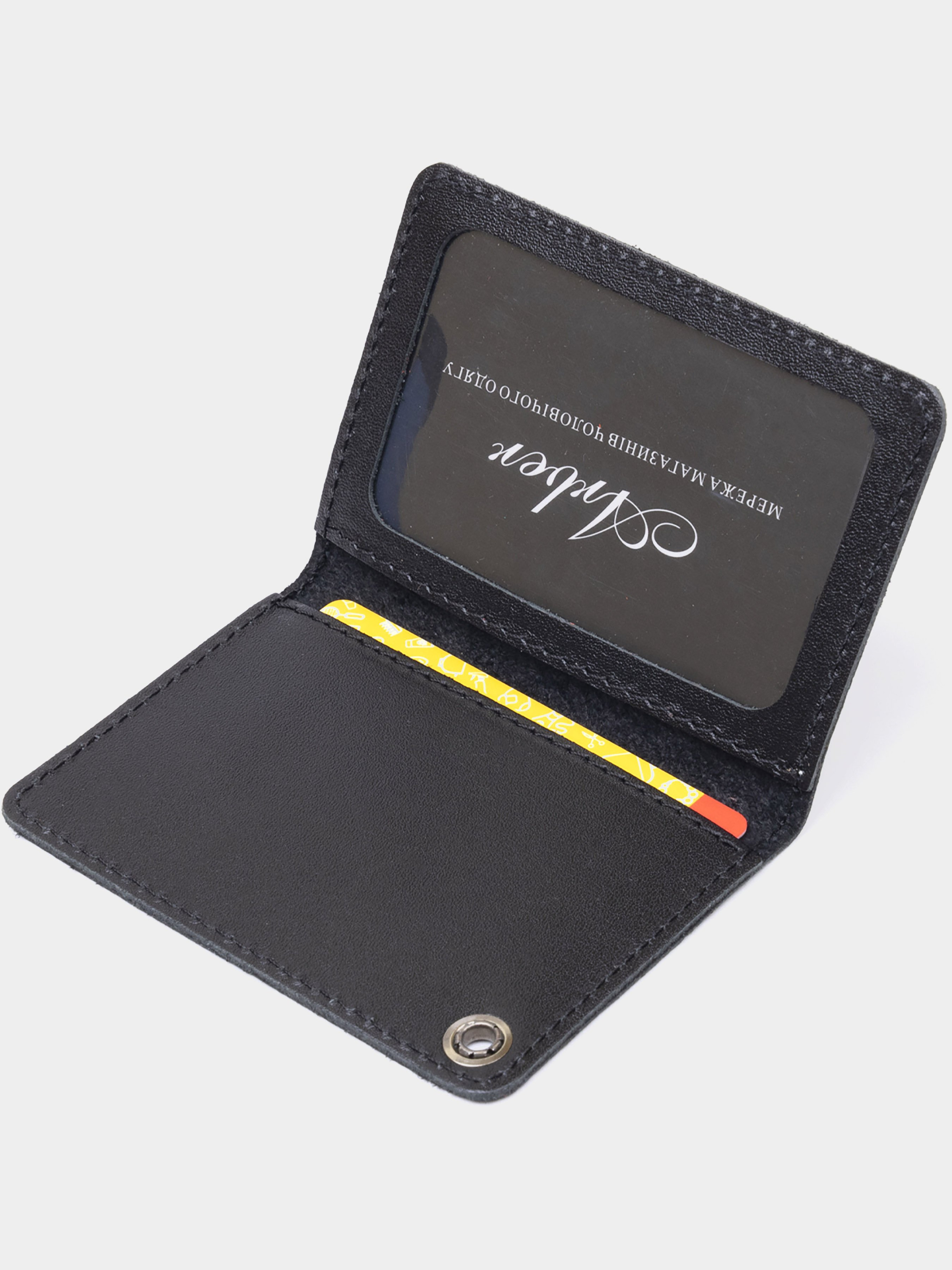 Материал: натуральная кожа; Размеры (ШхВ, см): 10х7х0,5; Цвет: черный; Страна производитель: Украина. Тонкая обложка на документы МВД Украины поможет сохранить все документы в целости, оберегает от влаги, солнца и износа. Обложка подойдет для новой полиции. Выполнена модель из натуральной кожи. Закрывается в виде книжки. Небольшое прозрачное окошко и надпись "Міністерство внутрішніх справ" на лицевой стороне. На задней части тризубец на звезде и надпись "МВС Україна". Сверху люверс, с помощью которого вы сможете подцепить обложку на карабин. В обложке 2 кармашка. Один из которых под прозрачной пленкой.