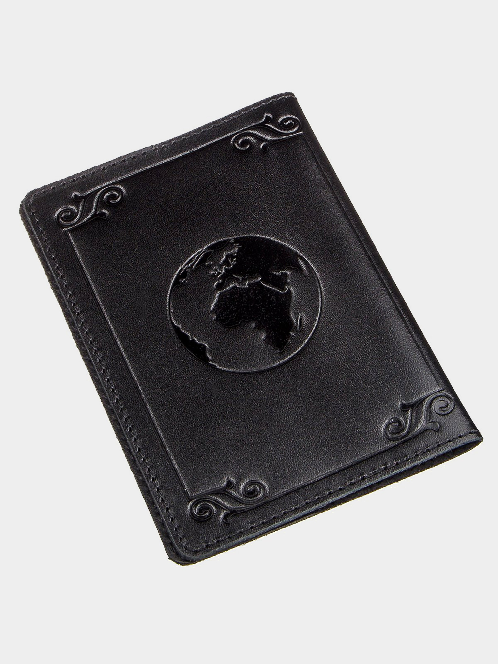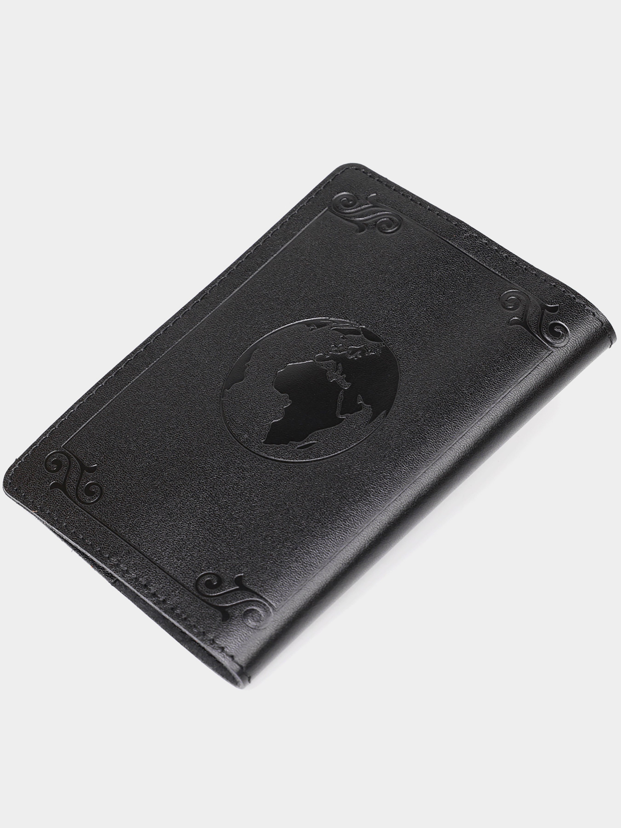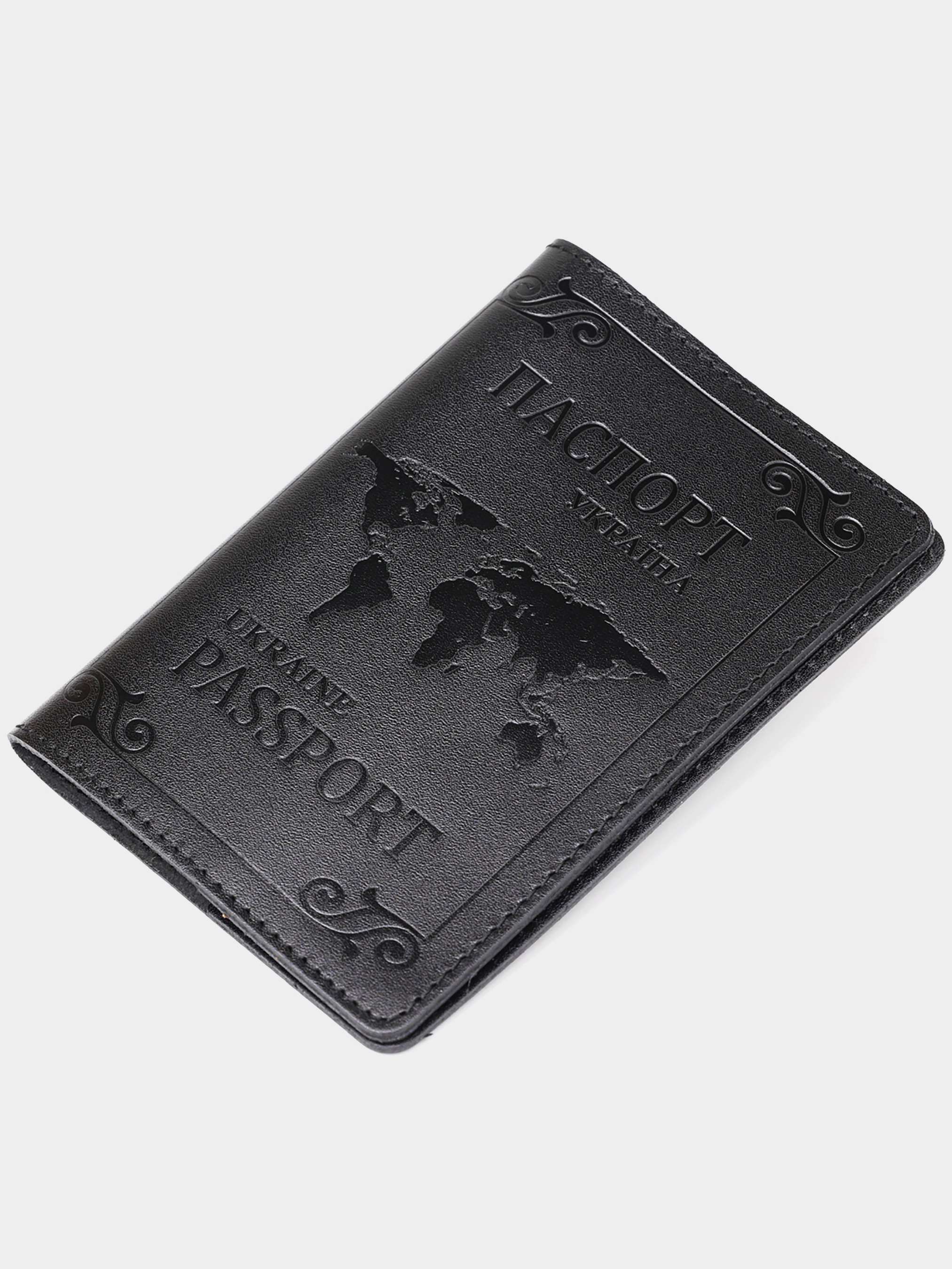 Материал: натуральная кожа; Цвет: черный; Размеры (ШхВ, см):9,5х13; Страна производитель: Украина. Стильная обложка на украинский паспорт. Модель классического черного цвета. Изделие изготовлено из натуральной кожи высочайшего качества. На лицевой стороне обложки тиснение в виде рамки и карты мира. Кожаная обложка защитит ваш паспорт от износа. Если вы не знаете, что купить на подарок - рекомендуем вам кожаную обложку.