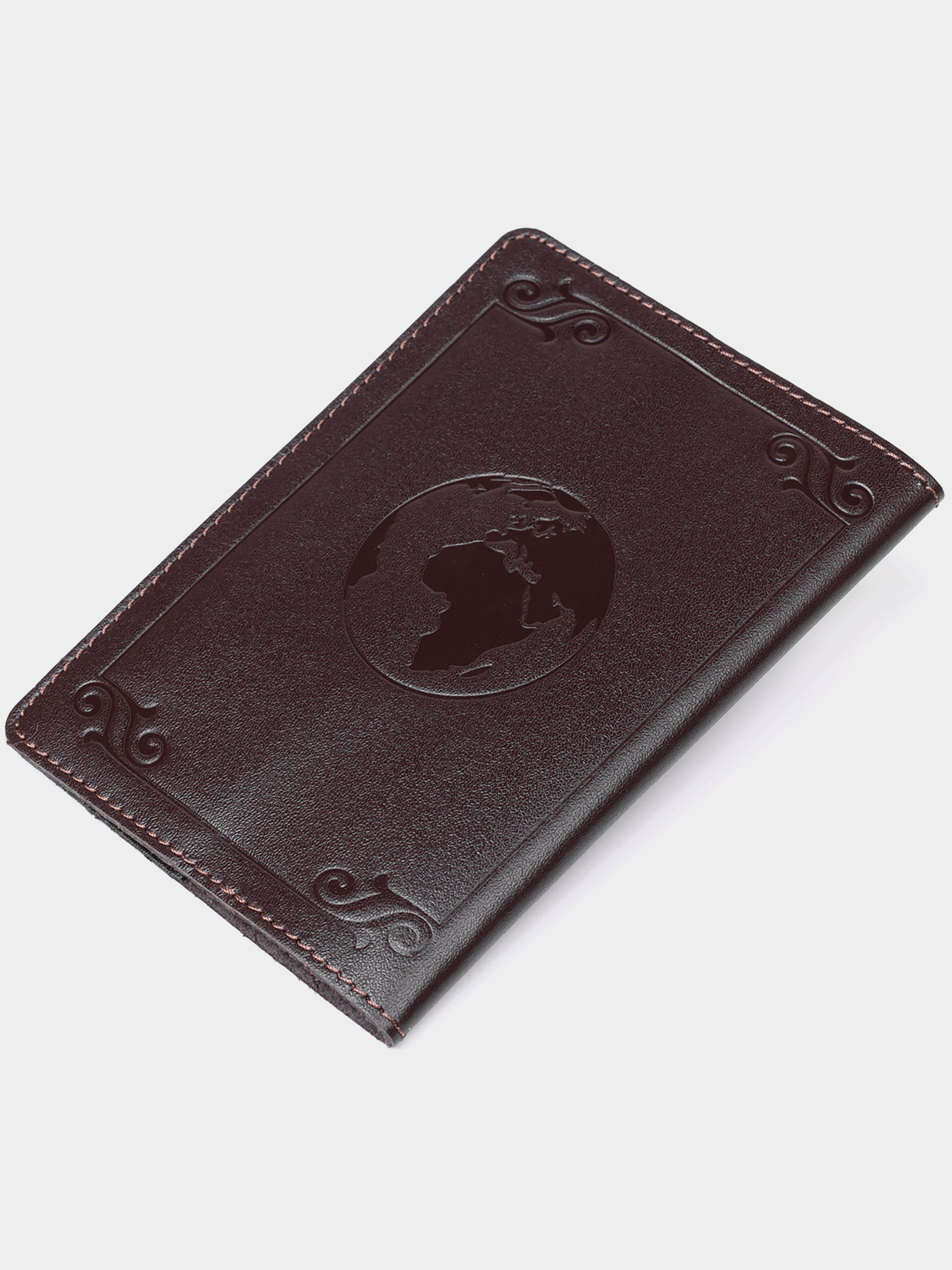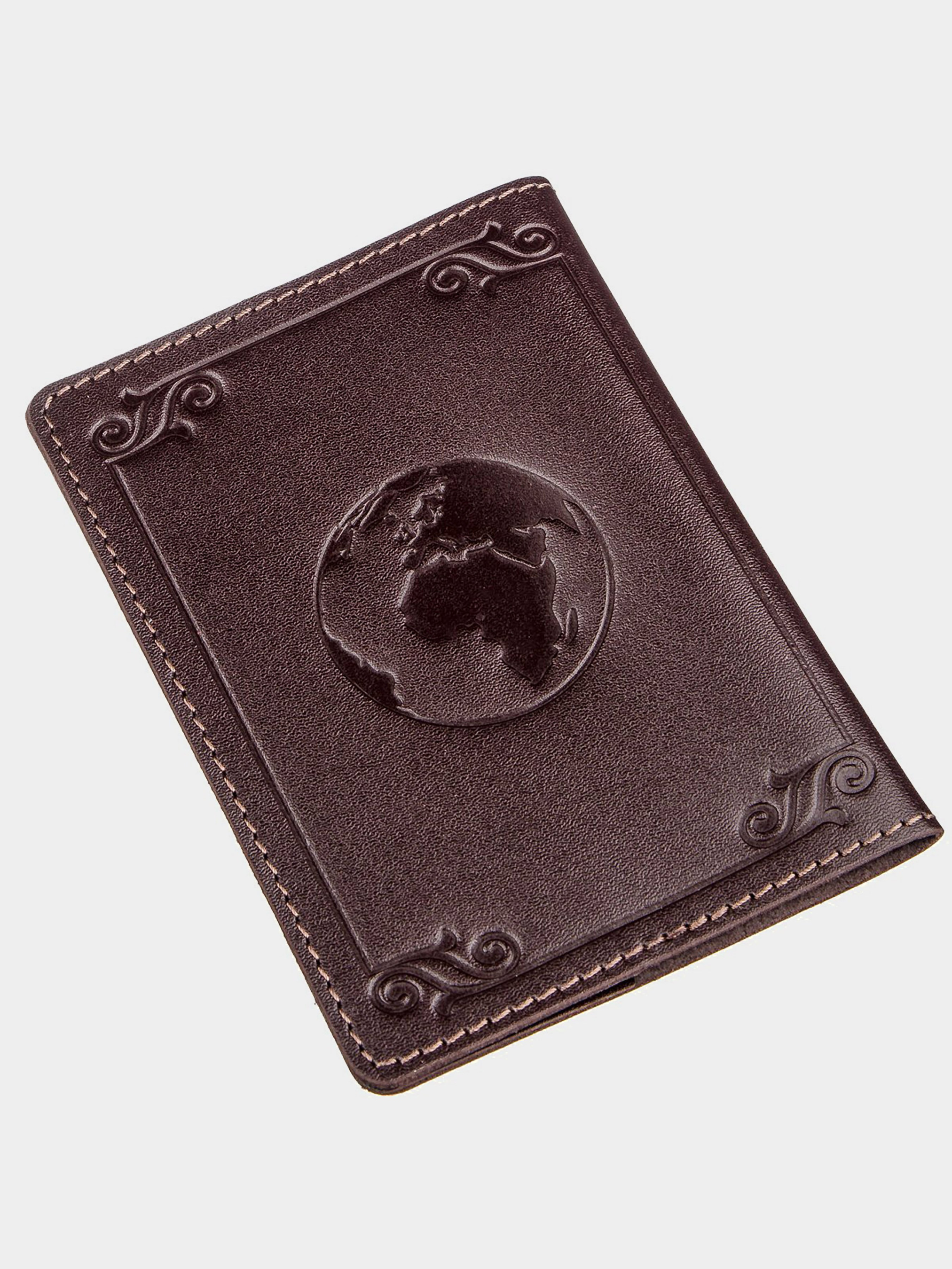 Материал: натуральная кожа; Цвет: коричневый; Размеры (ШхВ, см):9,5х13; Страна производитель: Украина. Стильная обложка на украинский паспорт. Изделие изготовлено из натуральной кожи высочайшего качества. На лицевой стороне обложки тиснение в виде рамки и карты мира. Кожаная обложка защитит ваш паспорт от износа. Если вы не знаете, что купить на подарок - рекомендуем вам кожаную обложку.