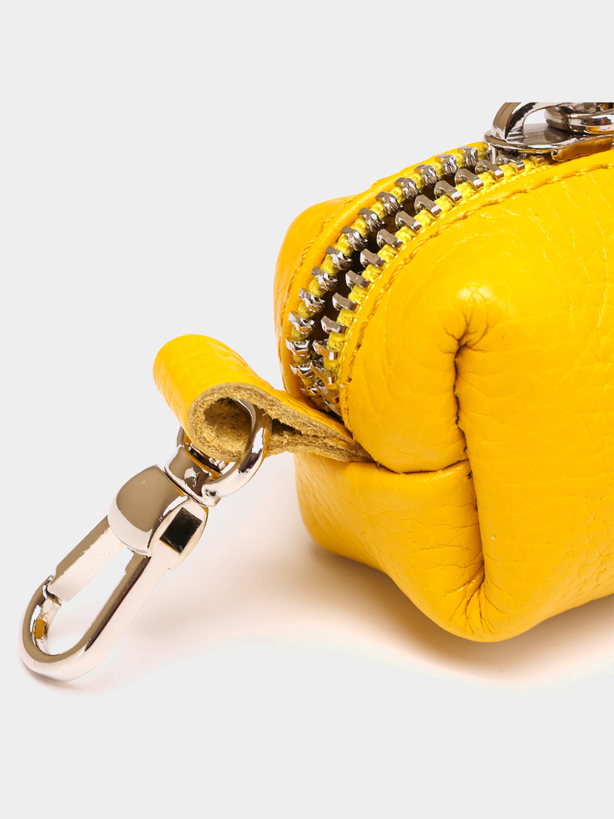 Материал: натуральная кожа. Цвет: желтый. Размеры (ШхВхГ, см): 13х4х3,5 см. Страна производитель: Украина. Бренд: Shvigel. Описание: - закрывается на молнию; - внутри кольцо; - карабин для крепления. Яркая красивая ключница в сочном желтом цвете, который непременно сможет поднять настроение даже зимой. Изготовлена из натуральной высококлассной кожи повышенной прочности. Фурнитура сделана в серебрённом цвете. Ключницу можно также крепить к поясу или внутри сумки, чтобы она была всегда под рукой и не терялась.