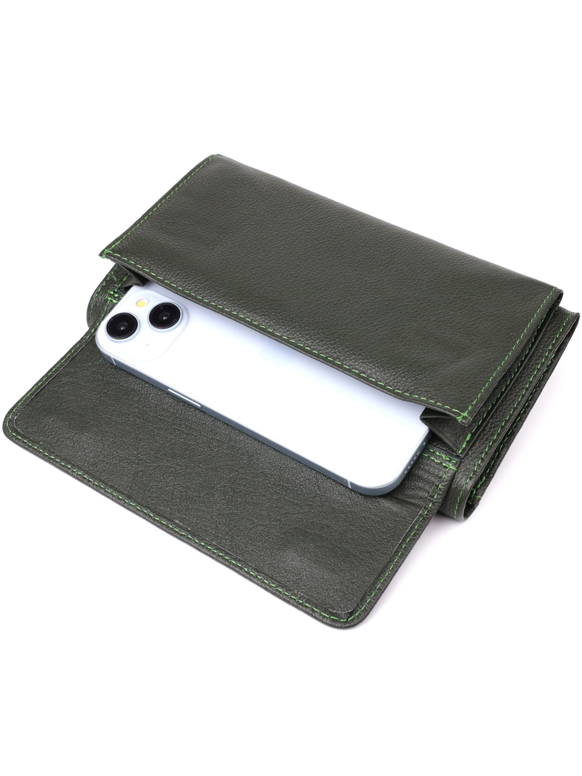 Материал: натуральная кожа; Цвет: зеленый; Размеры (ШхВхГ): 19х10х3 см; Страна производства: Китай. Особенности: - 4 отделения для купюр; - 8 ячеек под пластиковые карточки; - 2 кармана на молнии внутри; - 1 прилегающий карман; - 1 внешний карман для телефона; - закрывается на магниты. Практичное портмоне в два сложения, выполненное из натуральной кожи высшего качества. Аксессуар отличается продуманной функциональностью и высокой износостойкостью, благодаря чему станет верным спутником на каждый день. Внутреннее пространство организовано максимально удобно: четыре отделения для купюр, два длинных кармана на молнии, восемь ячеек для пластиковых карт, скрытый внутренний карман, а также внешний карман, идеально подходящий для телефона. Лицевая сторона украшена металлическим логотипом бренда, который подтверждает оригинальность и качество изделия. Внутренняя отделка сочетает натуральную кожу с плотным текстилем. Портмоне дополнено надёжной фурнитурой и поставляется в фирменной картонной коробке белого цвета - отличный выбор как для себя, так и в подарок.
