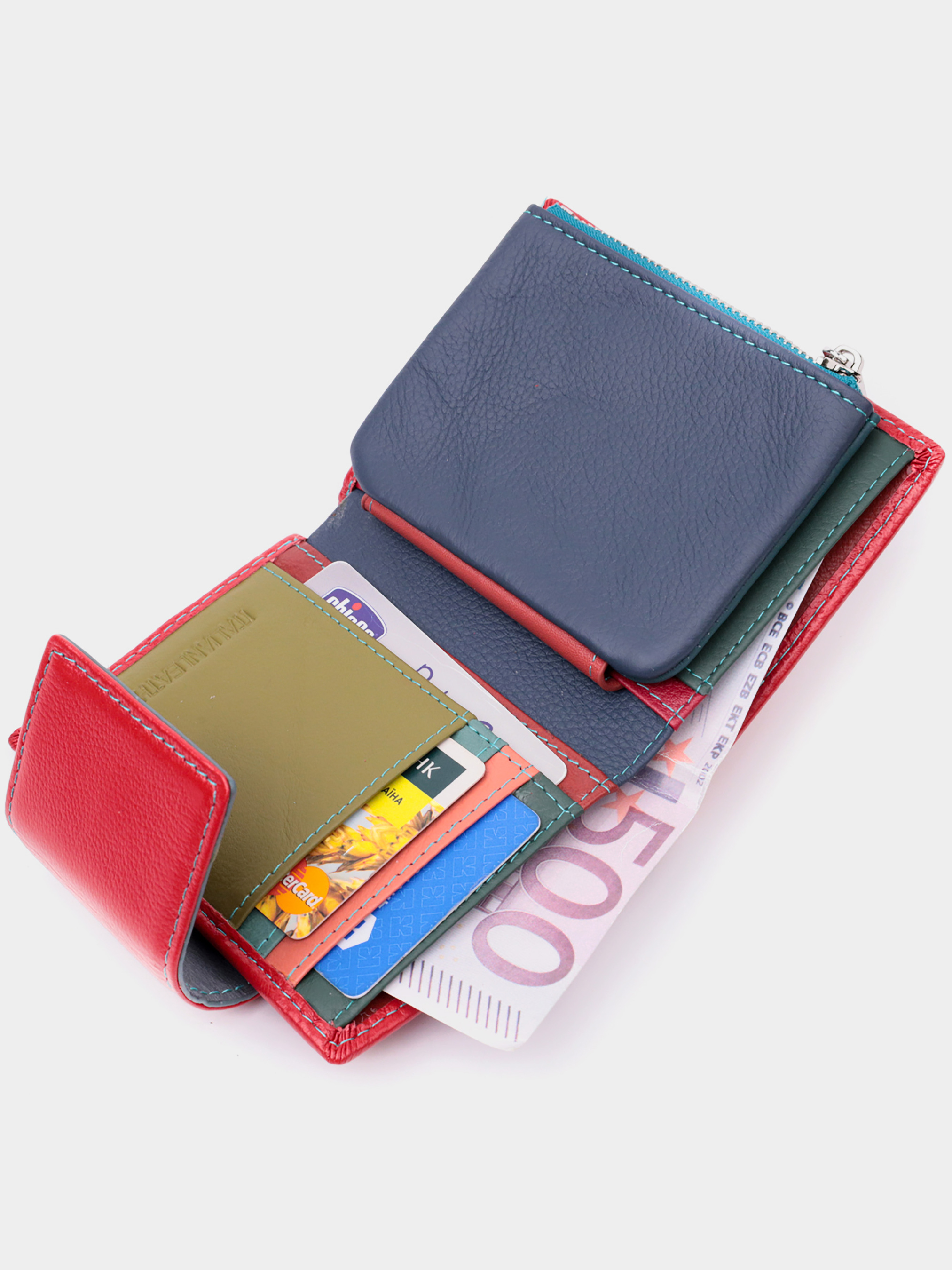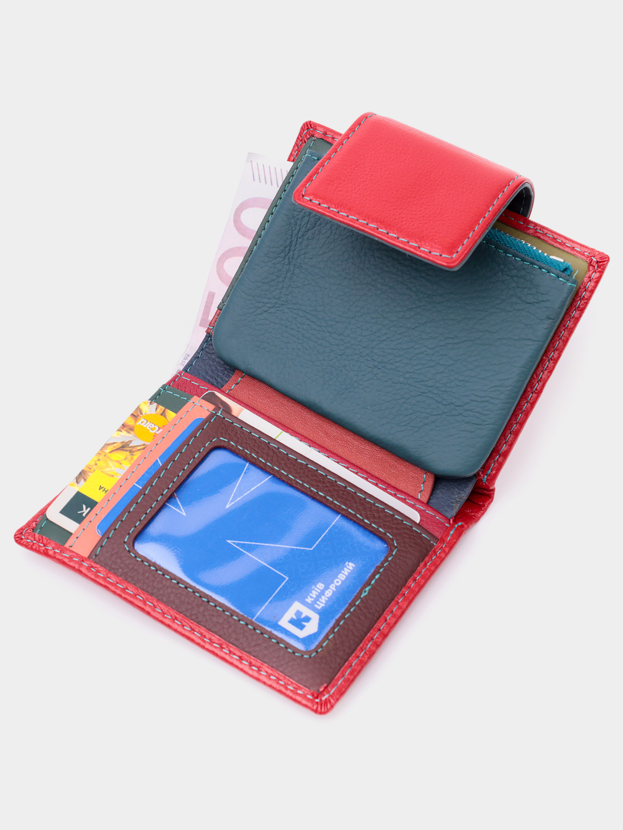 Материал: натуральная кожа; Цвет: красный; Размеры (ШхВхГ)см: 9х12х1,5 см; Страна производства: Китай. Особенности: - 1 основное отделение с кожаной перегородкой для купюр; - 1 монетница на молнии; - 4 скрытых кармана; - 4 слота для кредиток; - 1 кармашек под пленкой; - закрывается хлястиком на магнит. Яркое вертикальное портмоне в два сложения удобного размера из натуральной кожи высочайшего качества. Кошелек красного цвета снаружи и разноцветный внутри, что очень стильно и современно. Кожаное портмоне очень практичное и служит достаточно долго. Аксессуар состоит из основного отделения с кожаной перегородкой для купюр, монетницы, четырех ячеек для карт, прозрачного окошка для пропуска и четырех скрытых карманов. Портмоне дополнено надежной фурнитурой и прошито по краю ровной строчкой бирюзового цвета. Укомплектован кошелек в фирменную картонную коробку белого цвета. Изделие станет идеальным подарком для девушки любого возраста.