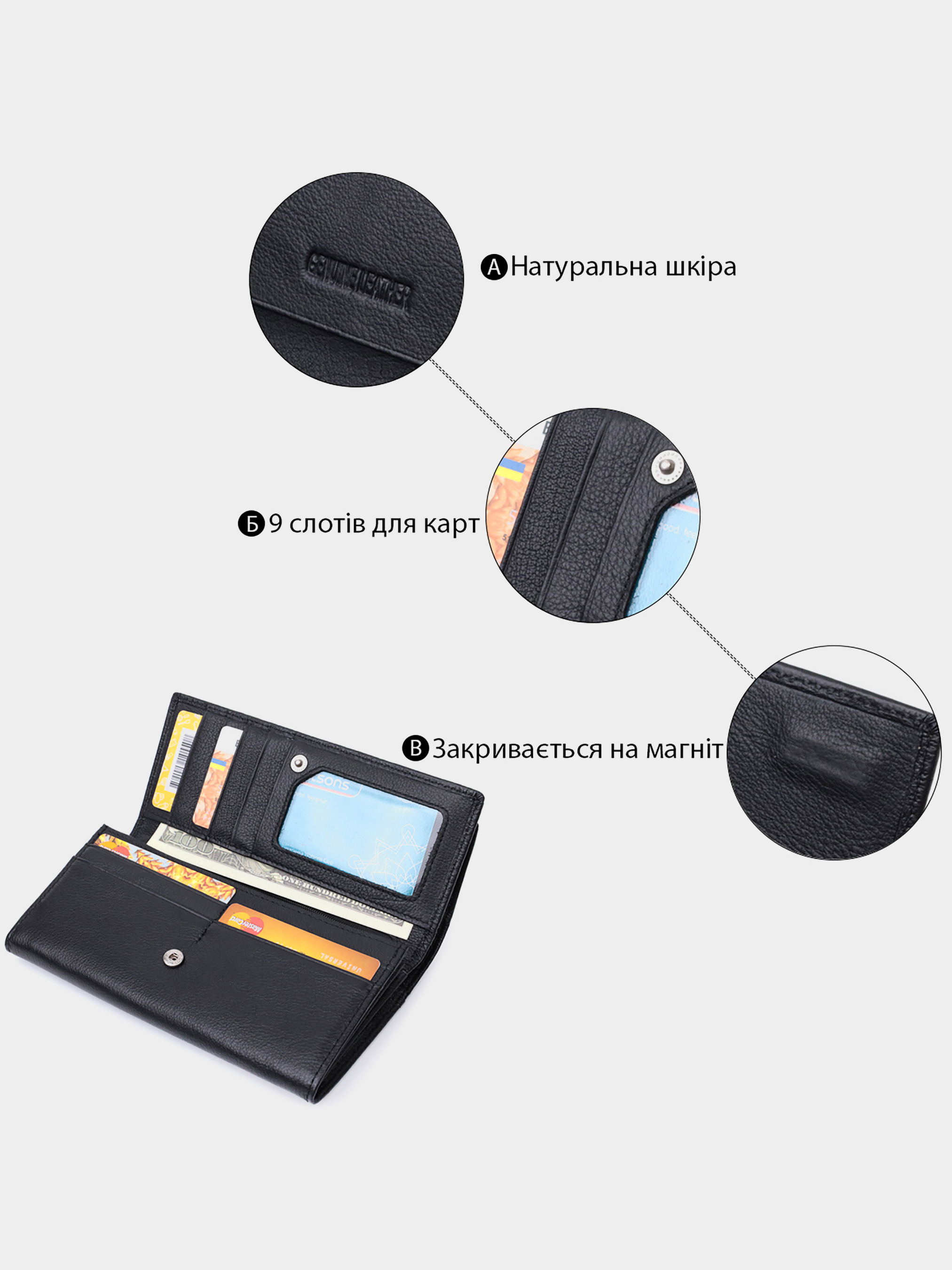 • Жіночі шкіряні гаманці