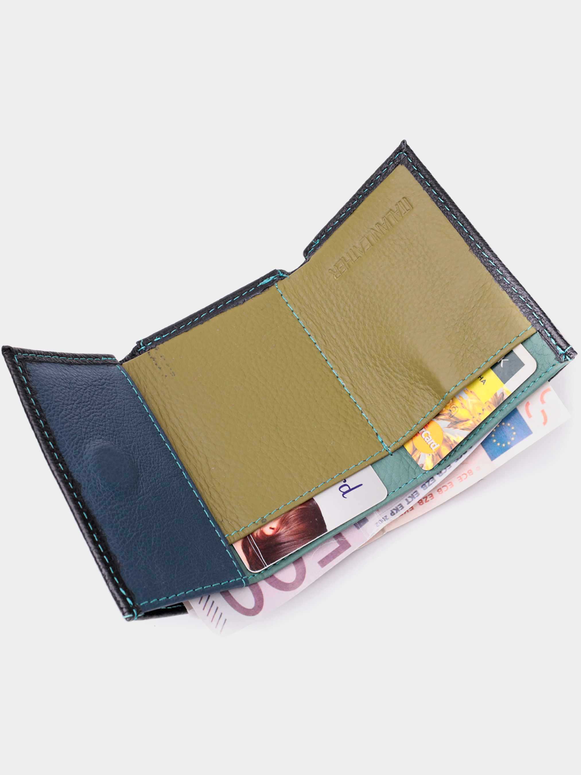 Материал: натуральная кожа; Цвет: черный; Размеры (ШхВхГ)см: 9,5х8х2см; Страна производства: Китай. Особенности: - 2 отделения для купюр; - 2 слота для кредиток; - 1 карман для монет на кнопке под клапаном; - закрывается на магнит. Практичное женское портмоне в три сложения из натуральной кожи высочайшего качества. Акцентом этого кошелька является цвет, точнее несколько цветов - он черного цвета снаружи и многоцветный внутри. Аксессуар состоит из двух вместительных отделений для купюр, двух ячеек для карт и кармана для монет. Снаружи изделие прошито ровной строчкой бирюзового цвета по краю и украшено металлическим логотипом компании производителя. Портмоне дополнено надежной фурнитурой и крепкой подкладкой. Укомплектован кошелек в фирменную картонную коробку белого цвета.