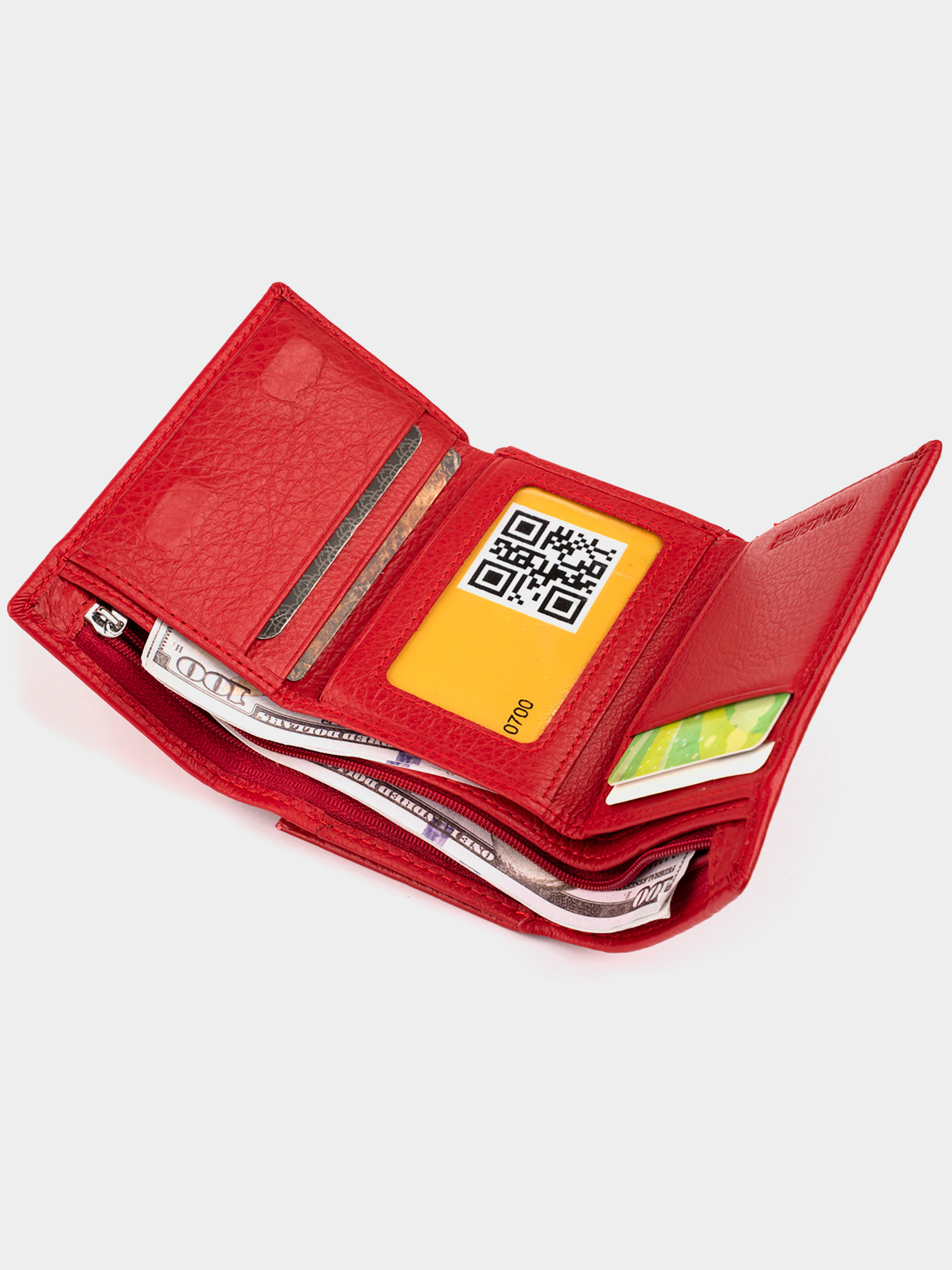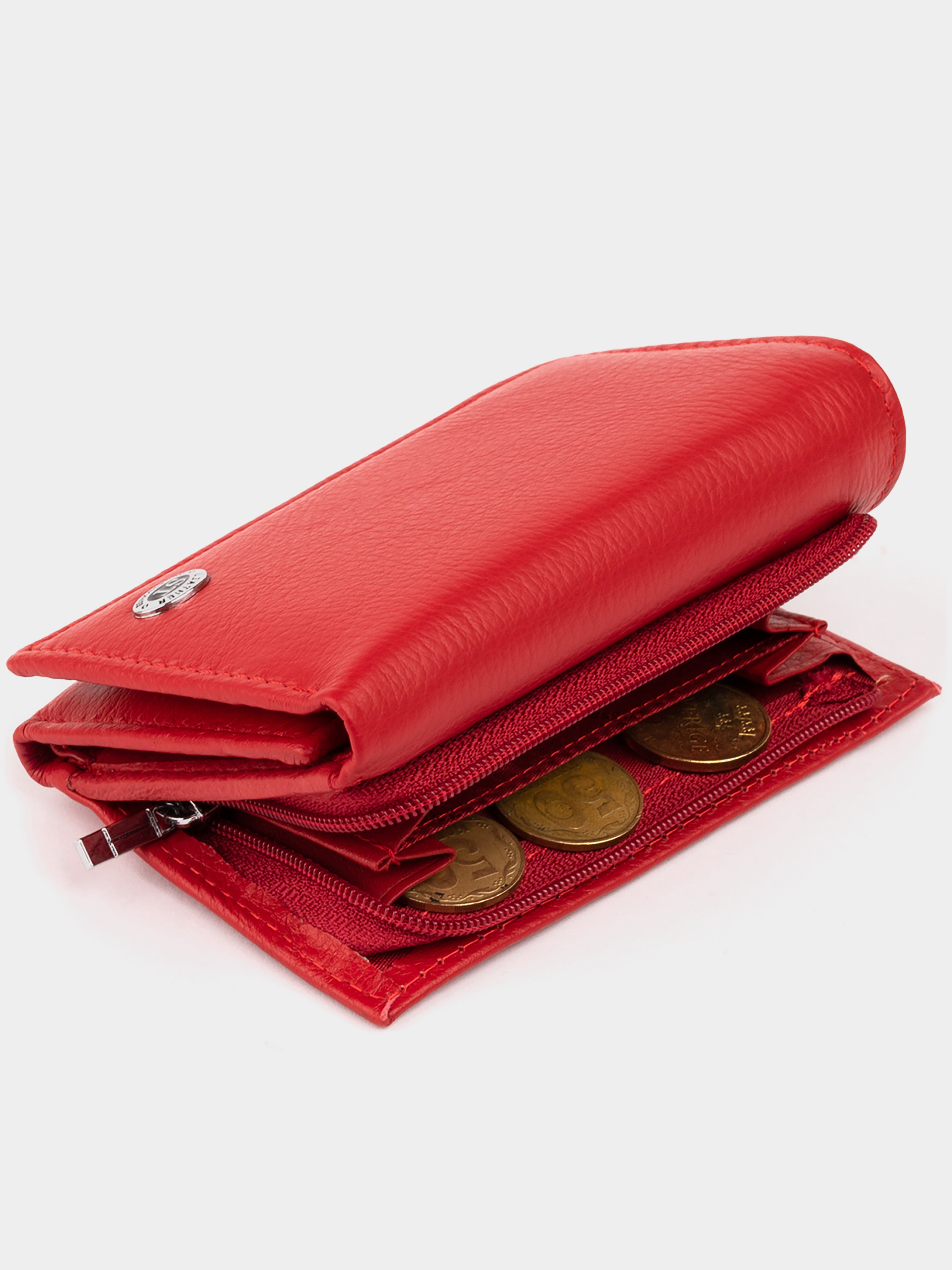 Материал: натуральная кожа; Цвет: красный; Размеры (ШхВхГ): 12х7,5х2,5. Страна производства: Китай. Особенности: -2 основных отделения для купюр; -1 отделение на молнии; -5 слотов для кредиток; -1 открытый кармашек; -автономный монетник с перегородкой на молнии; -закрывается на магнит. Стильное портмоне в ярком красном цвете добавит вам уверенности в себе. Красный цвет выбирают поклонники ярких аксессуаров. Портмоне удобного среднего размера из натуральной кожи высочайшего качества. Кожаное портмоне очень практичное и служит достаточно долго. Гладкая кожа не требует к себе особенного ухода. Аксессуар дополнен всем самым необходимым функционалом. Просторные карманы разместят все ваши мелочи в порядке. Внутри аксессуар из плотного текстиля. Укомплектован кошелек в фирменную картонную коробку белого цвета. Изделие станет идеальным подарком для девушки любого возраста.