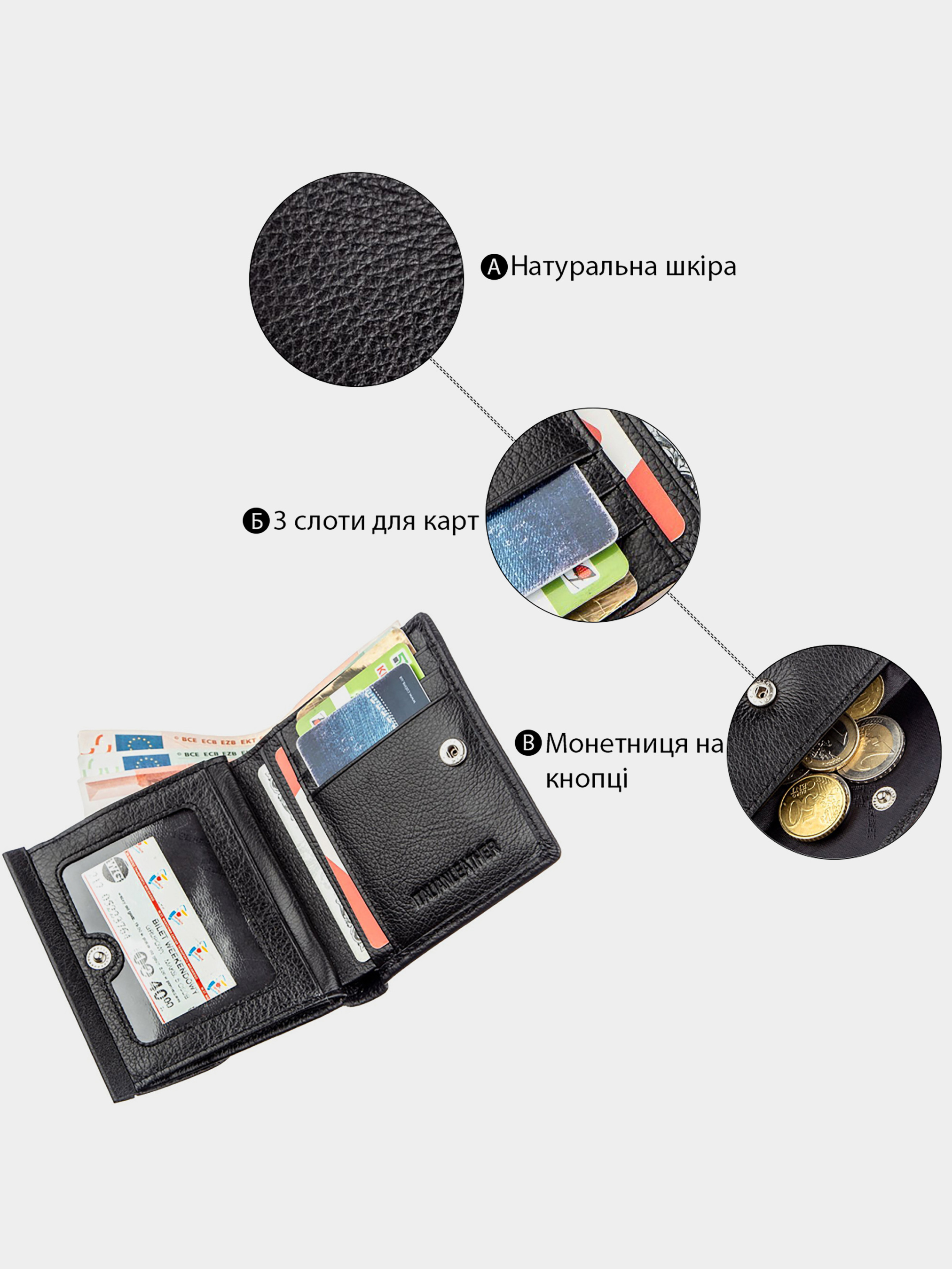 • Жіночі шкіряні гаманці