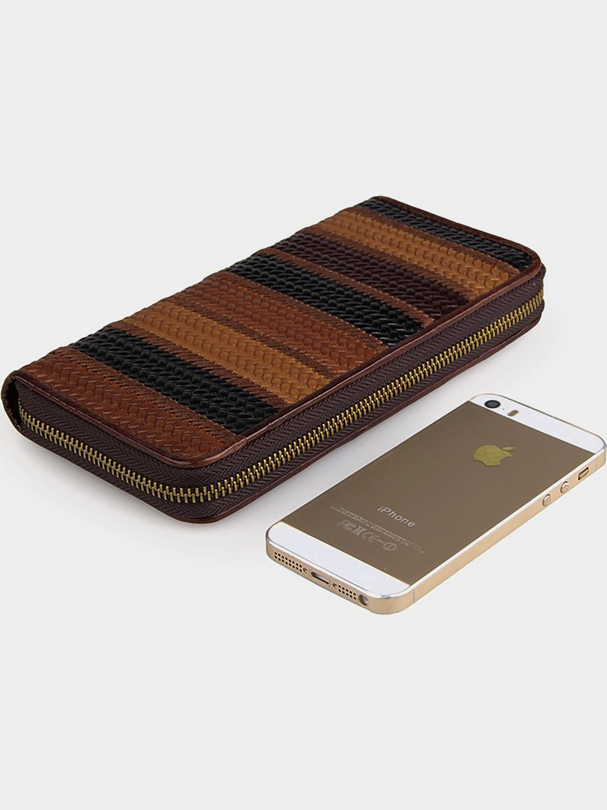 Размер: (ШхВ, см): 20х10; Материал: натуральная кожа высокого качества; Цвет: коричневый. Красивый женский кожаный кошелек на молнии. Аксессуар чрезвычайно удобный и функциональный. Цвет фурнитуры: латунь. Изделие имеет очень красивый тесненный рисунок в виде косички на коже. Кошелек не упакован в коробочку, но укомплектован текстильным пылезащитным чехлом. Такой аксессуар станет превосходным решением для подарка любимой супруге, бабушке, маме или сестре к любому празднику. Внутри: - 2 отделения для банкнот и мобильного телефона; - отделение-перегородка на молнии для монет; - 19 отделений для пластиковых карточек; - 3 накладных отделения для банкнот. Сочетания стиля и функциональности - это все про данный кошелек. Такой аксессуар станет превосходным решением для подарка любимой супруге, бабушке, маме или сестре к любому празднику.
