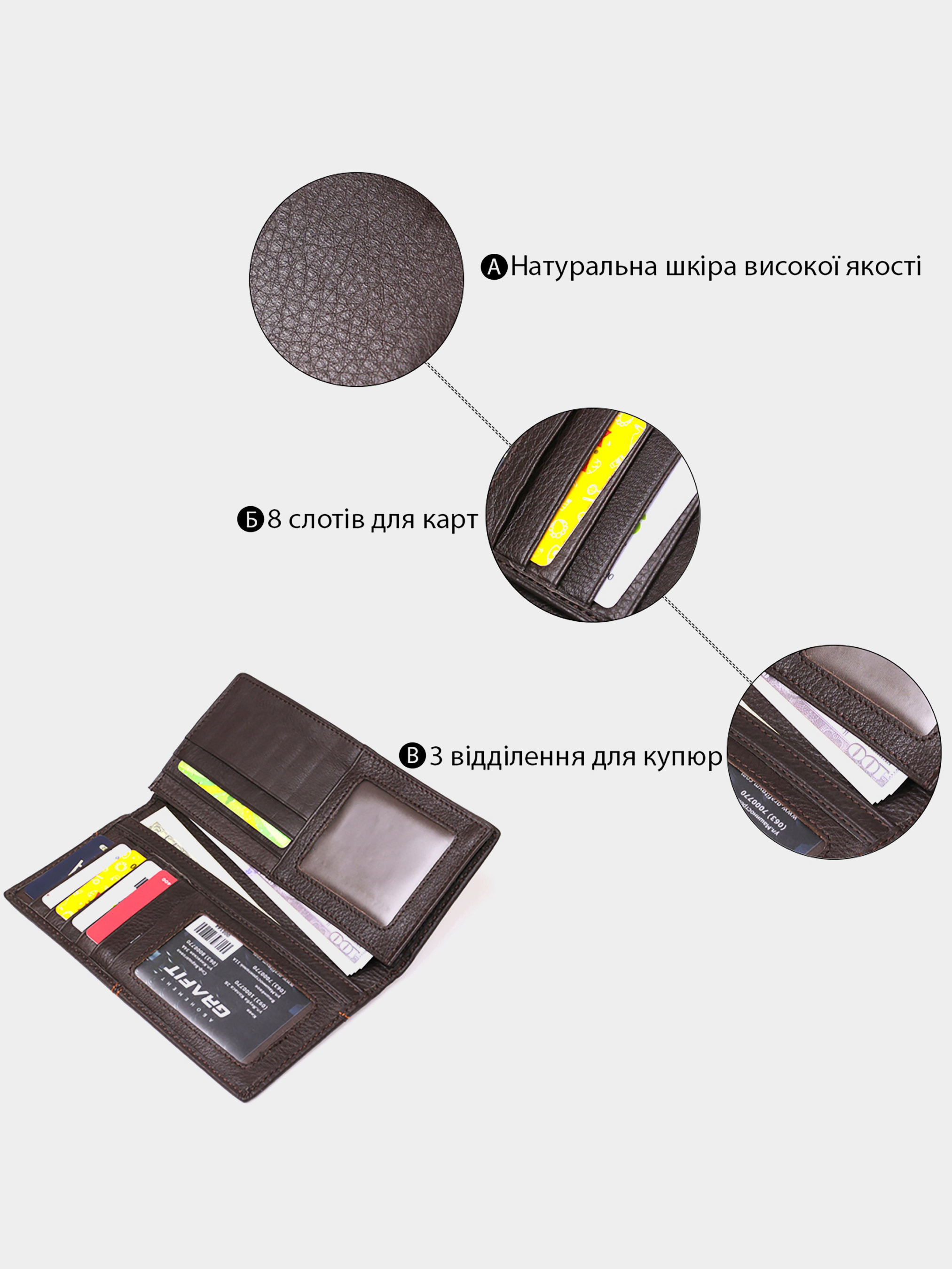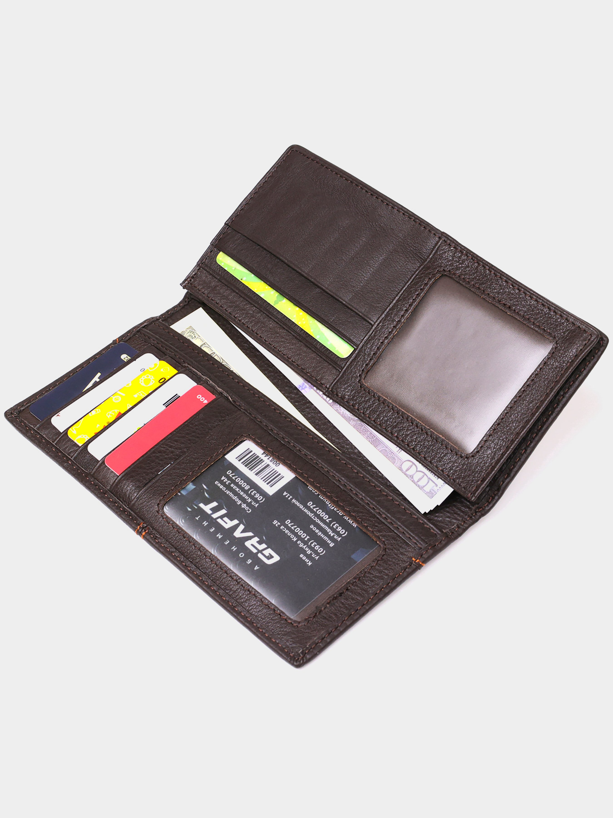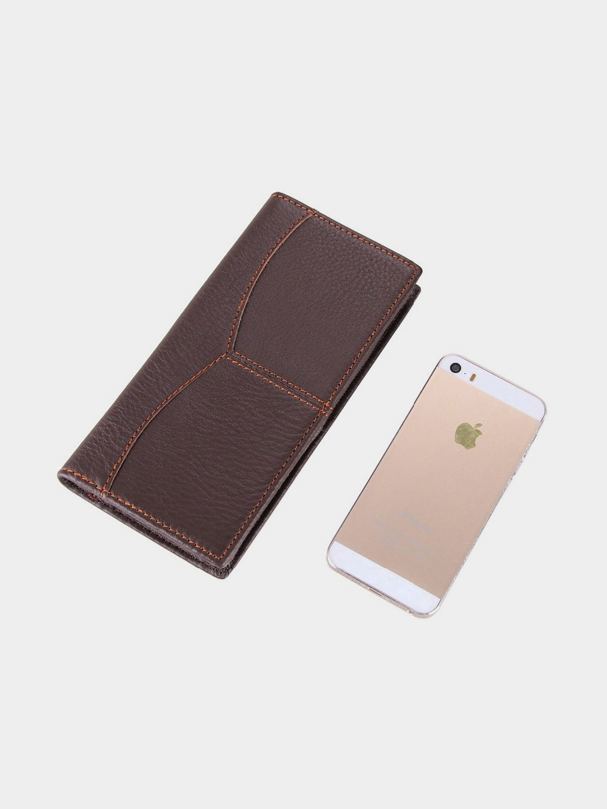 Материал: натуральная кожа; Цвет: коричневый; Размеры (ШхВ, см): 8,5х18. Страна производства: Китай. Особенности: - 3 отделения для банкнот; - 8 отделений для карточек; - 2 отделения для прав под пленкой; - потайное отделение на молнии. Современный тонкий мужской купюрник из натуральной высококачественной кожи мягкой и приятной на ощупь. По краям бумажник прошит светлой и крепкой нитью. Аксессуар упакован в текстильный пылезащитный чехол. Модель очень тонкая и практичная и будет носиться сравнительно долго. Данный бумажник станет прекрасным подарком для любого мужчины.