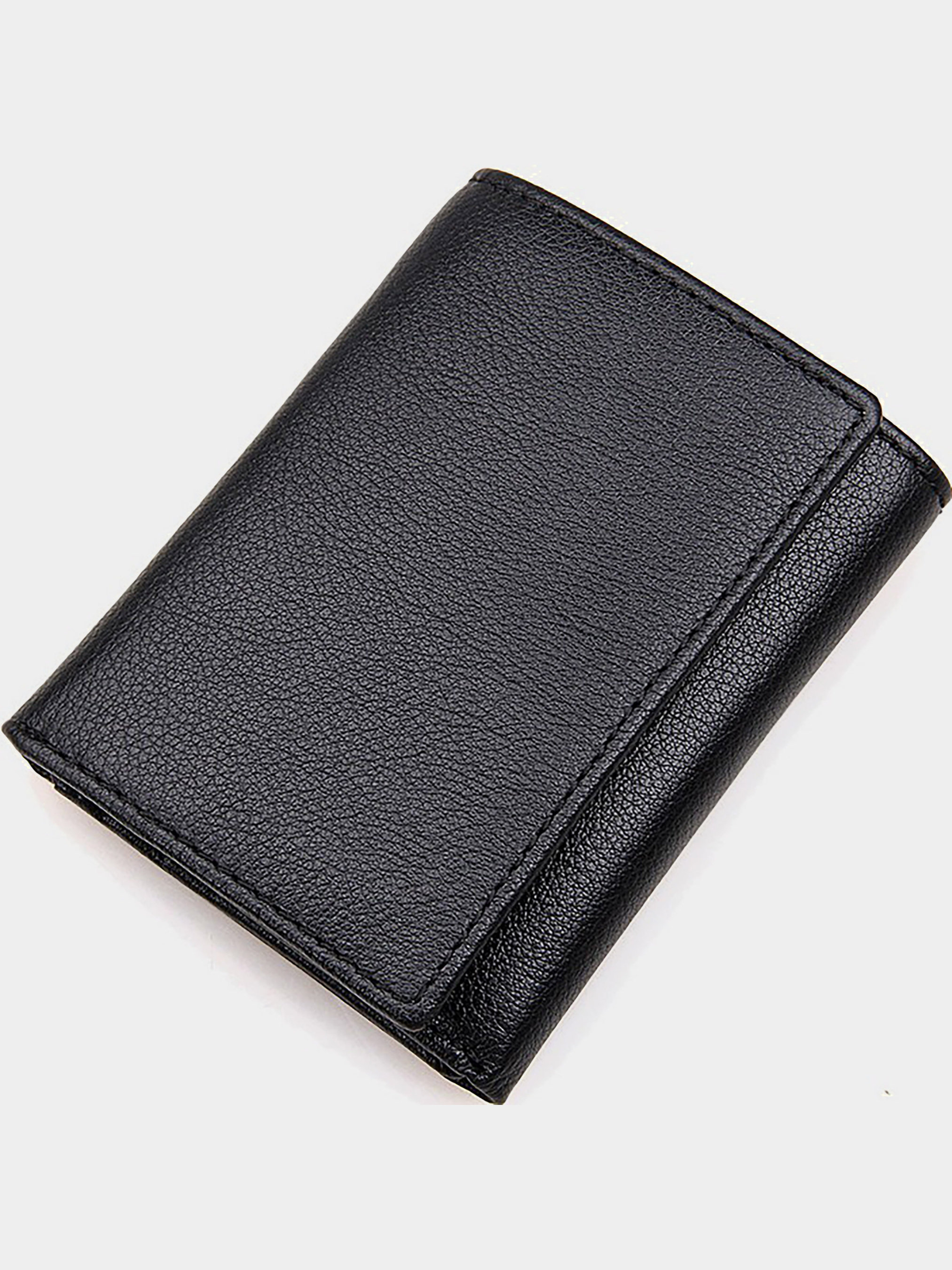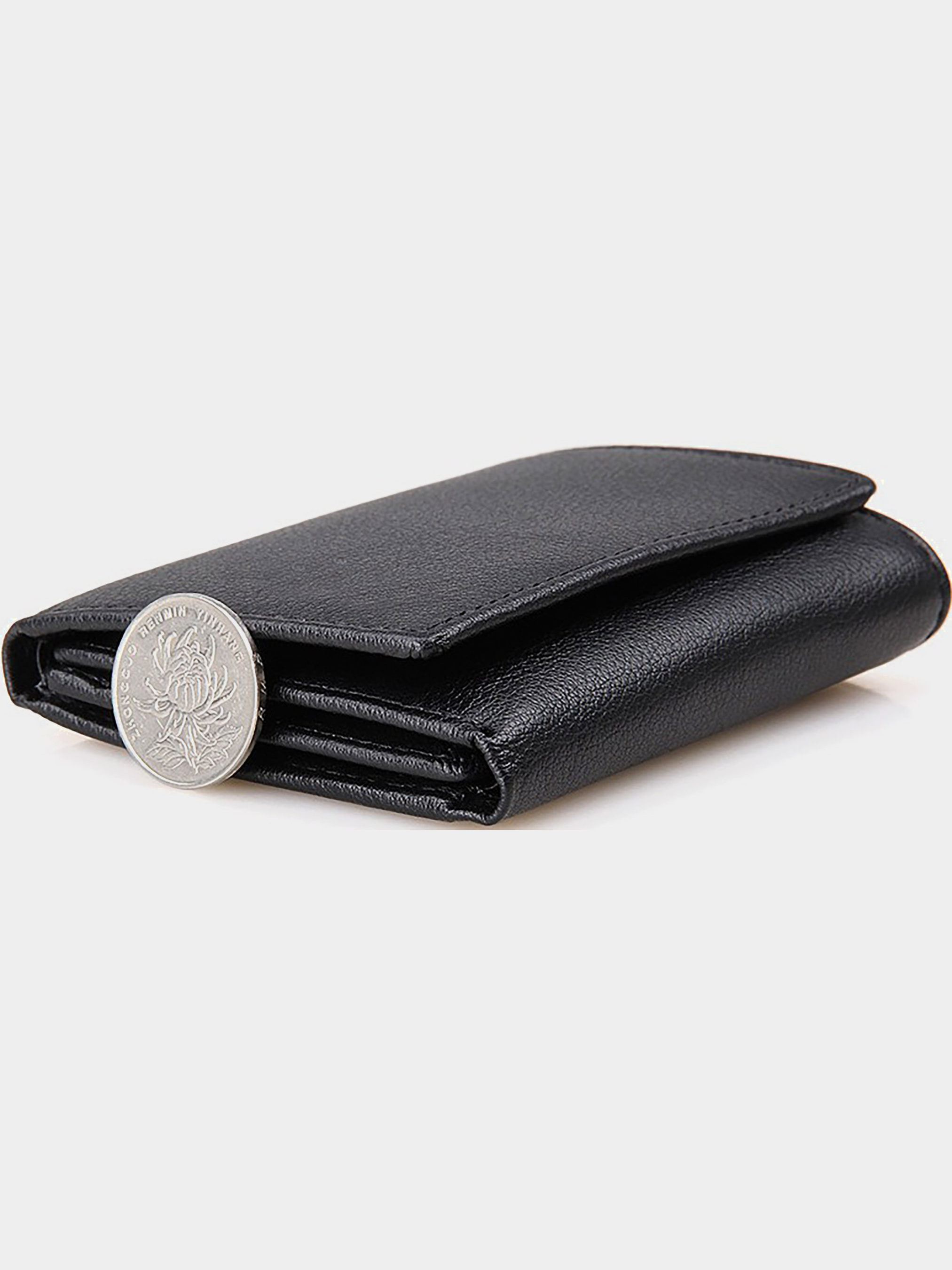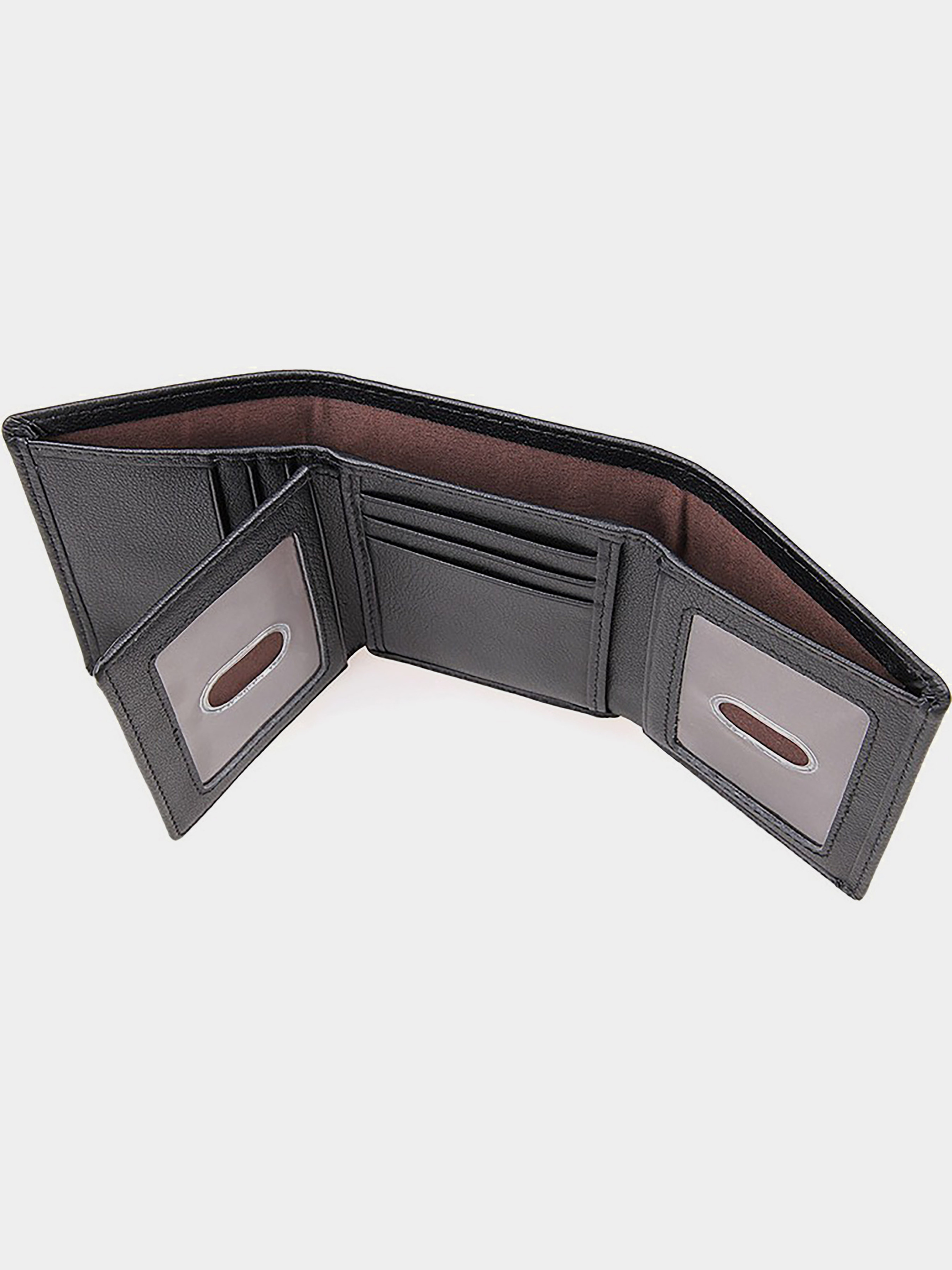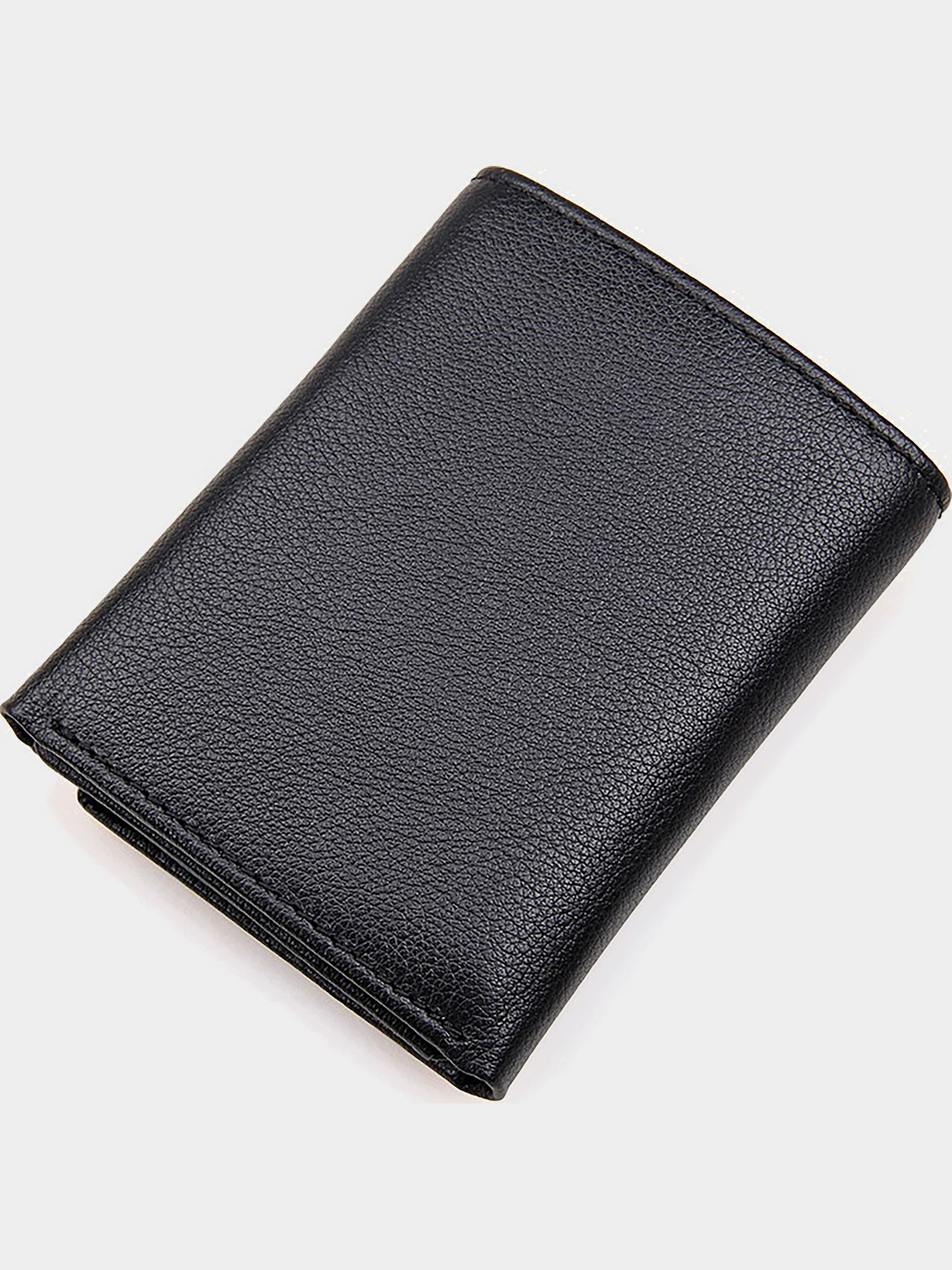Размер (Ширина, Высота, см.): 8,5x10,5; Материал: натуральная кожа; Цвет: черный. Портмоне выполнено 100% из натуральной гладкой кожи, надежно прошито крепкой нитью, что бы продлить сроки использования. Для внутренней отделки использовали прочный текстиль. Смотрится очень простым и строгим. При открытии есть три окна для банковских карт или визиток, всего 9 мест. Два отдела под прозрачной пленкой. Один потайной карман и одно основное отделение купюр. Носить портмоне очень удобно, так как он не занимает много места. Такое солидное портмоне шикарно подойдет людям, которые не любят всяких эмблем и лишних нашивок, а просто нуждаются в функциональном, качественном и практичном изделии.