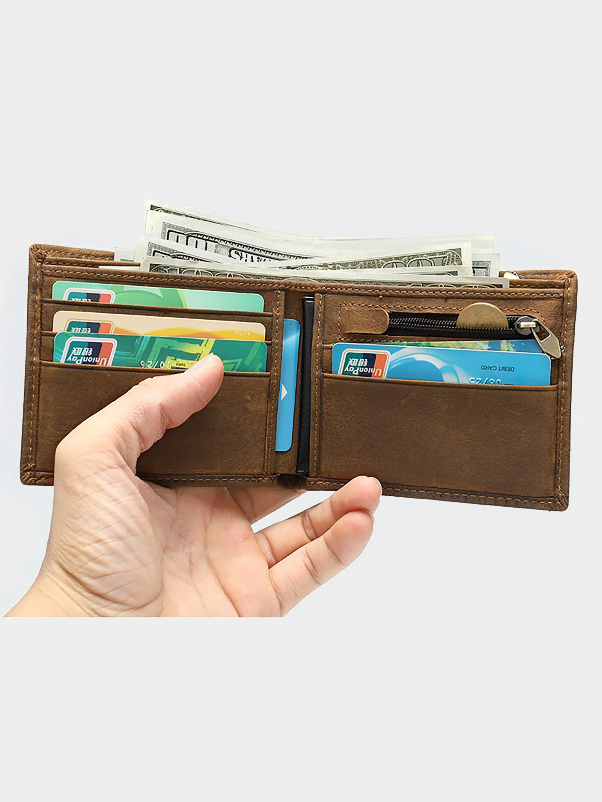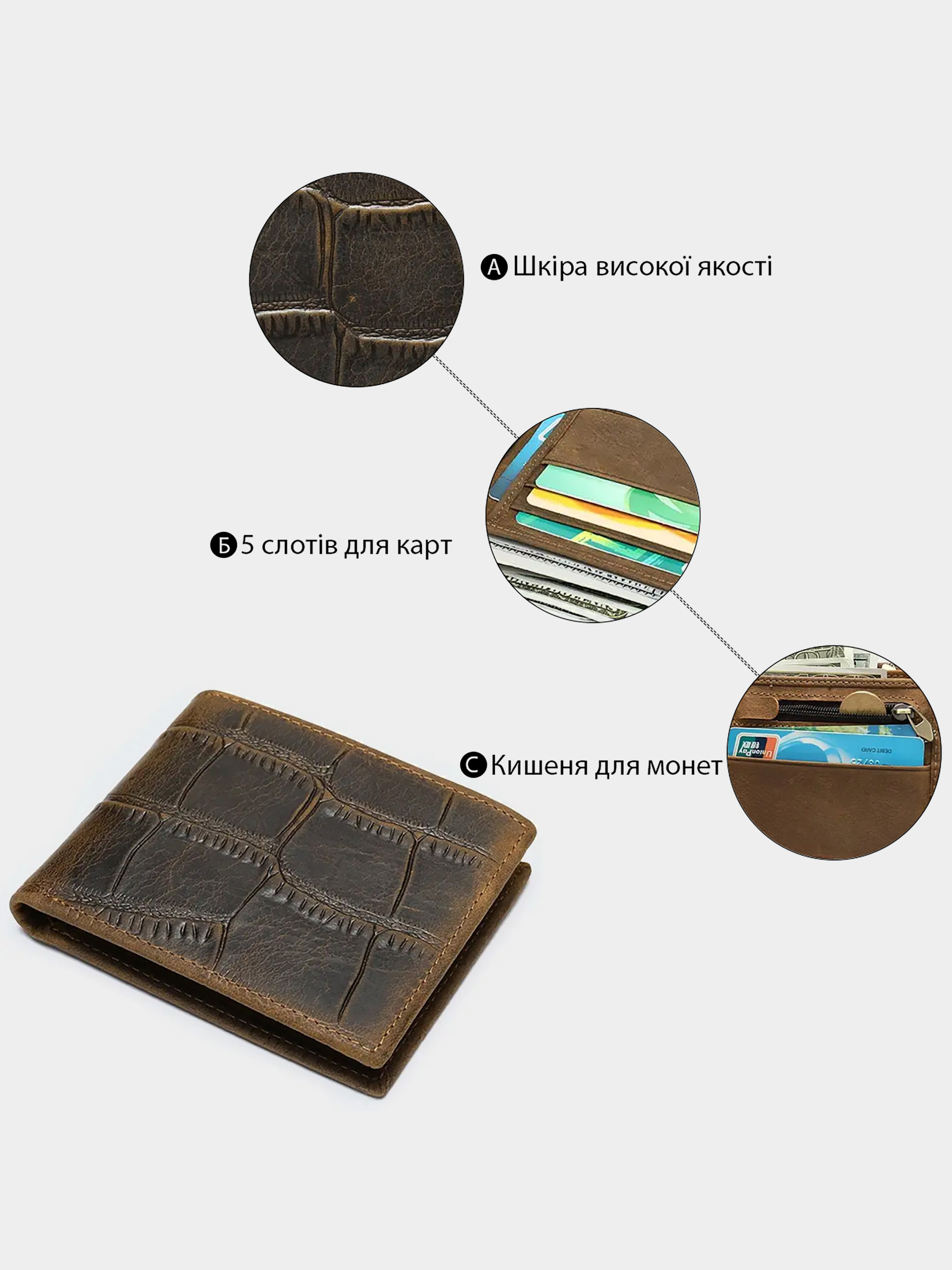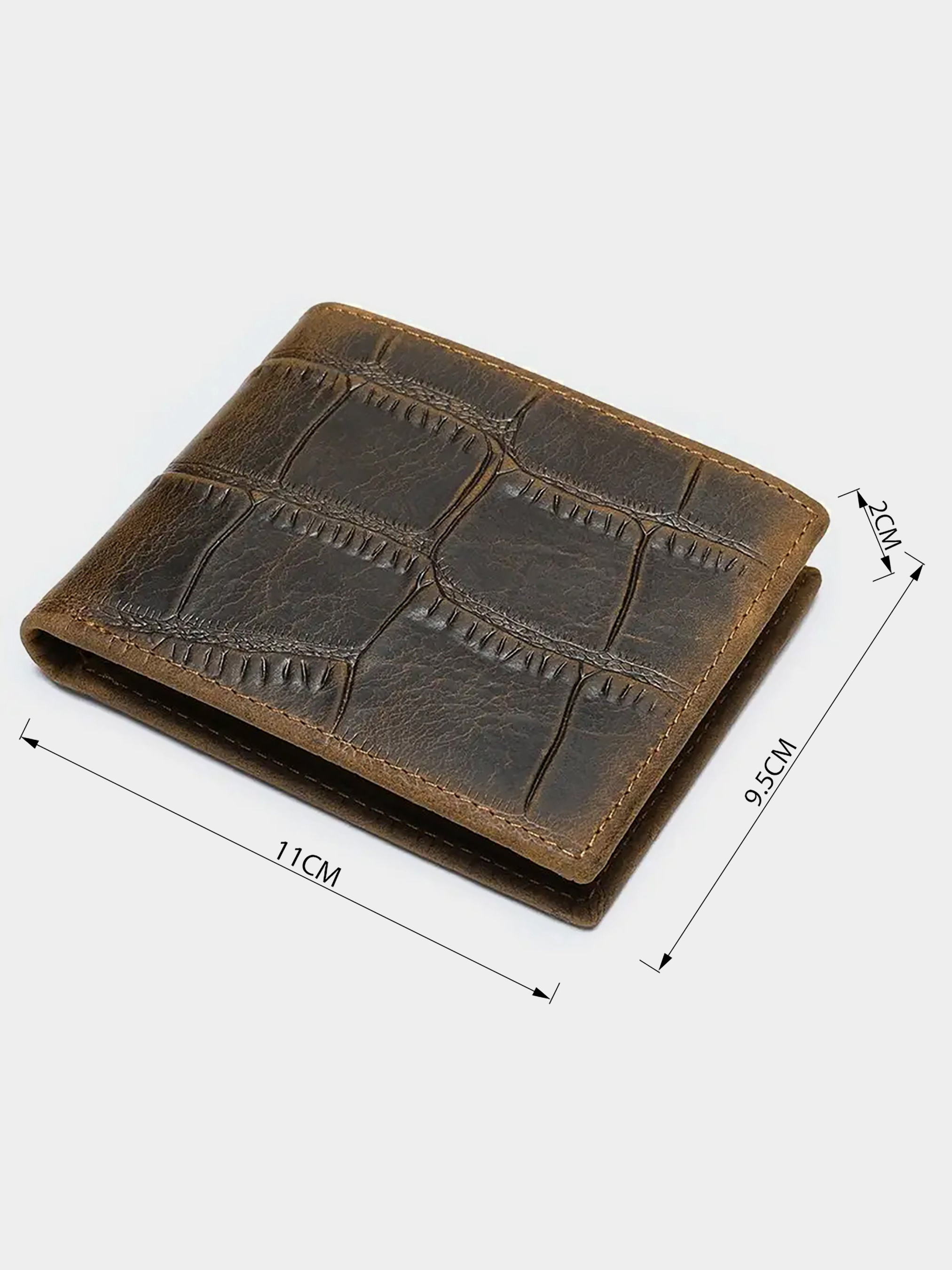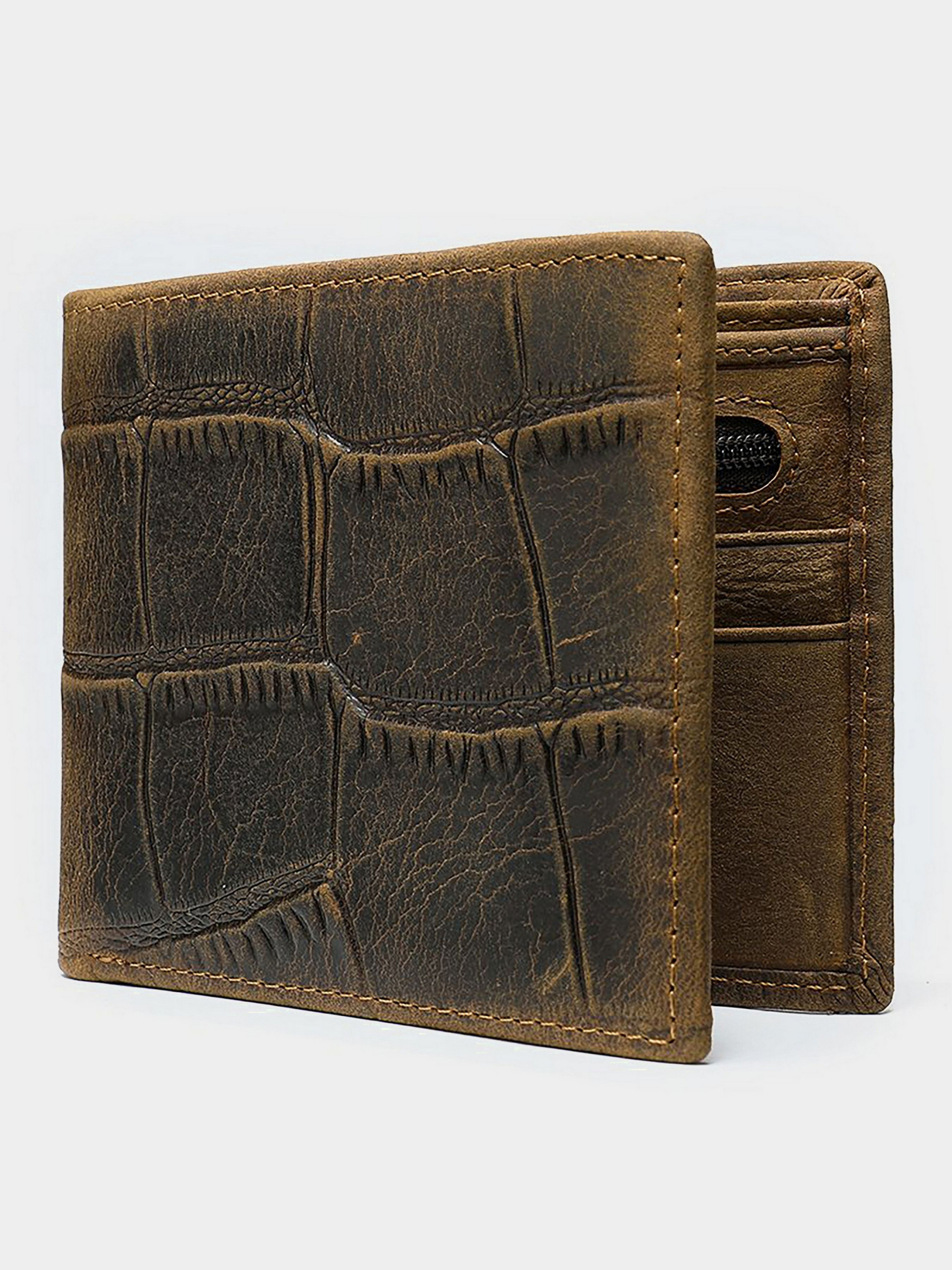 Материал: натуральная кожа высокого качества. Цвет: коричневый; Размеры (ШхВхГ, см): 11х9,5х2 см. Страна производитель: Китай. Бренд: Vintage. Описание: - 3 отделения для купюр одно из них на молнии; - 5 слотов для кредиток; - 2 открытых карманов; - монетник на молнии. Простое и классическое портмоне с тиснением под экзотическую кожу. Модель имеет минимальный размер и легко поместится в карман брюк. Оригинальный дизайн модели не останется незамеченным. Аксессуар упакован в тканевый пылезащитный чехол. Портмоне будет прекрасным и незаменимым подарком для любого мужчины.