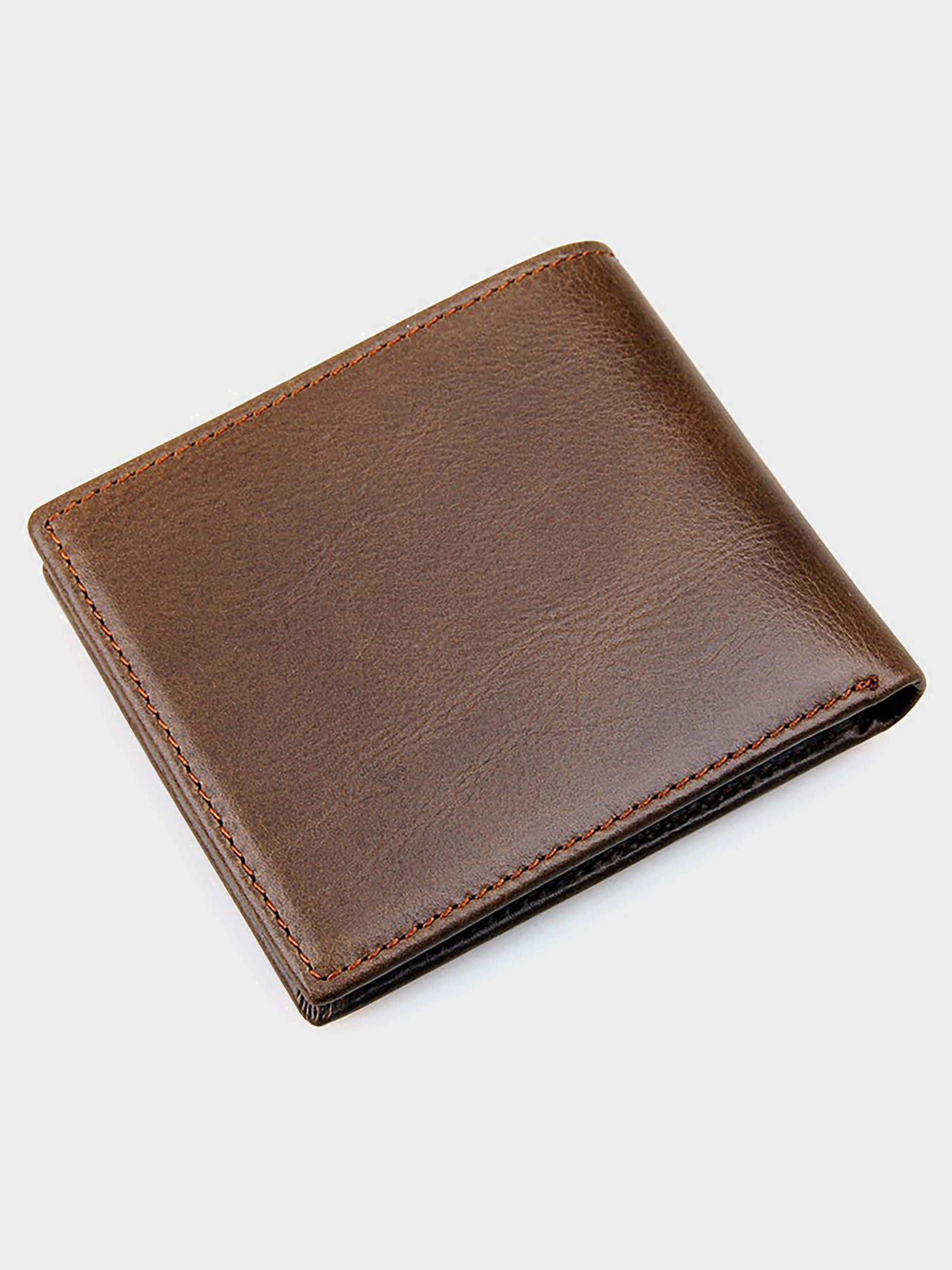 Размер (Ширина, Высота, см.): 10,5х9; Материал: натуральная кожа высокого качества; Цвет: коричневый. Компактное мужское портмоне из натуральной высококачественной кожи. Портмоне аккуратно прошит сверхпрочной нитью. Данная модель является превосходным решением для подарка мужчине к любому празднику. Портмоне упакован в текстильный пылезащитный чехол. Внутри: - два отделения для банкнот; - 8 отделений для пластиковых карточек.