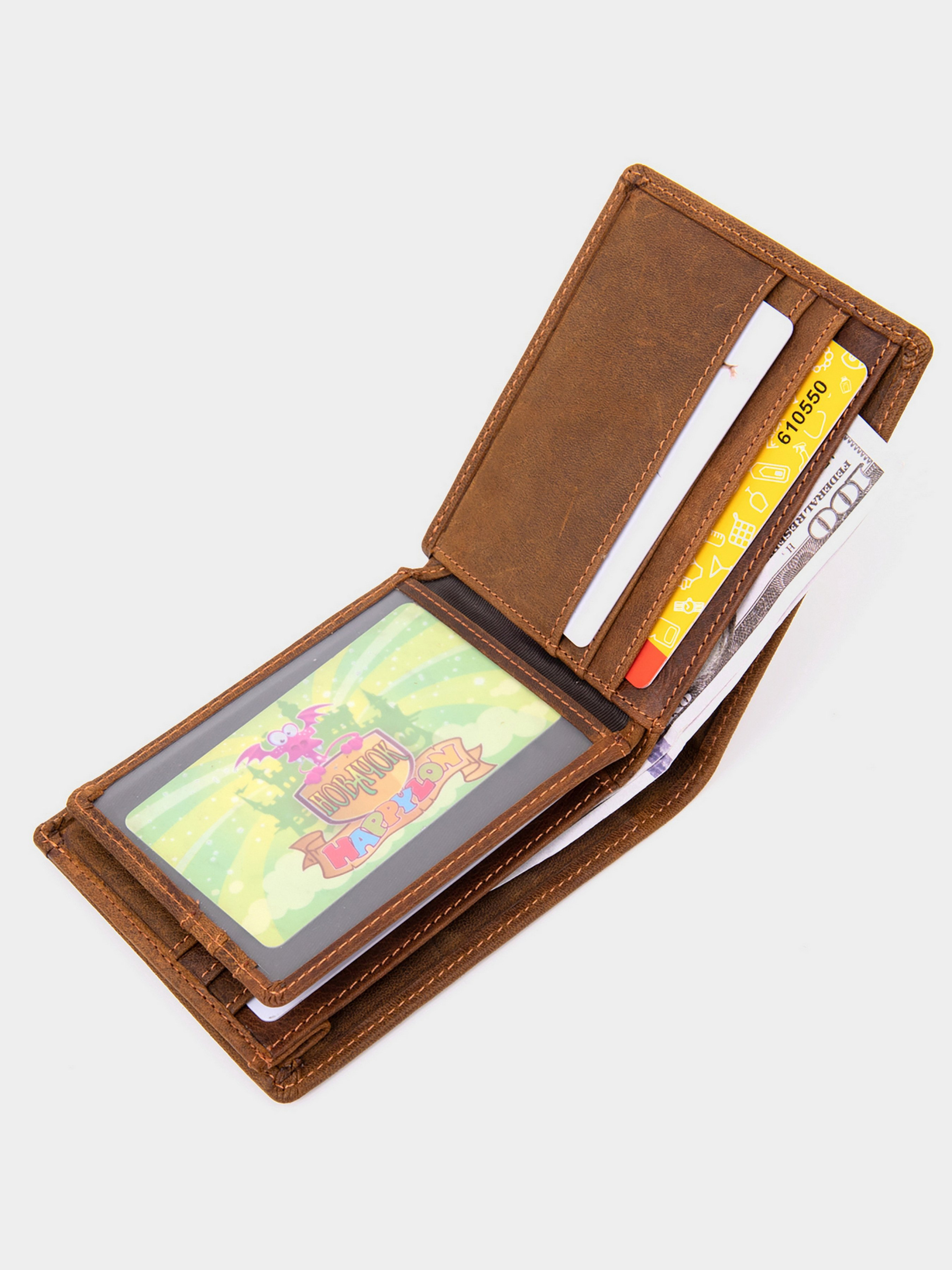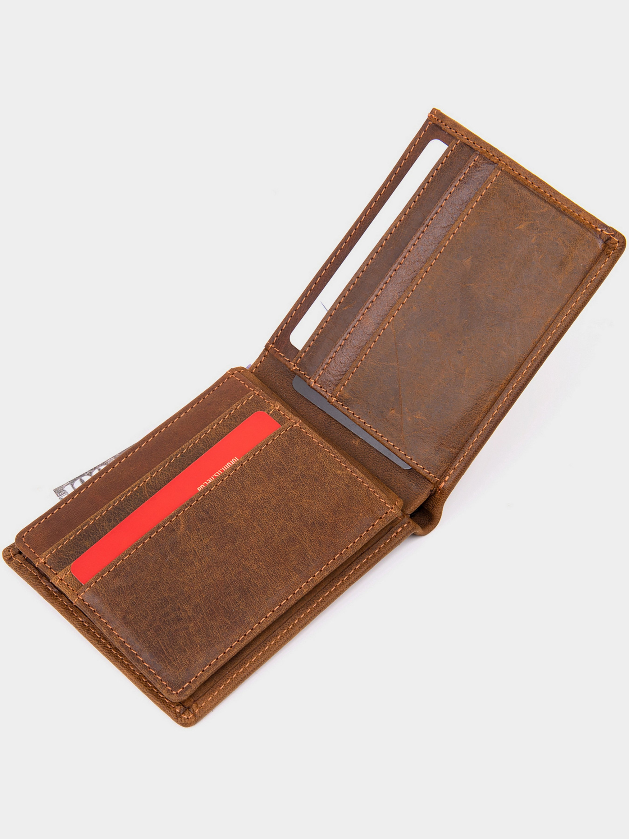 Цвет: коричневый; Материал: натуральная кожа; Размер (ШхВхГ, см): 11х9,2х1,3. Страна производитель: Китай. Бренд: Vintage. Особенности: - два отделения для купюр; - десять ячеек для кредиток (одна под пленкой); - три открытых кармана; - без застежки. Тонкое компактное матовое портомне из натуральной кожи без застежки. Изделие имеет коричневый цвет с рыжим оттенком. Внутри достаточно ячеек для кредиток. Изделие продумано для современного человека. Который отдает предпочтение карточкам и носит минимум налички. Портмоне поместится в маленькую сумку или карман брюк. Кошелек станет прекрасным подарком для ваших близких. Портмоне имеет весь самый необходимый функционал. Кошелек очень приятный на ощупь. Подойдет для тех, кто не любит больших аксессуаров.