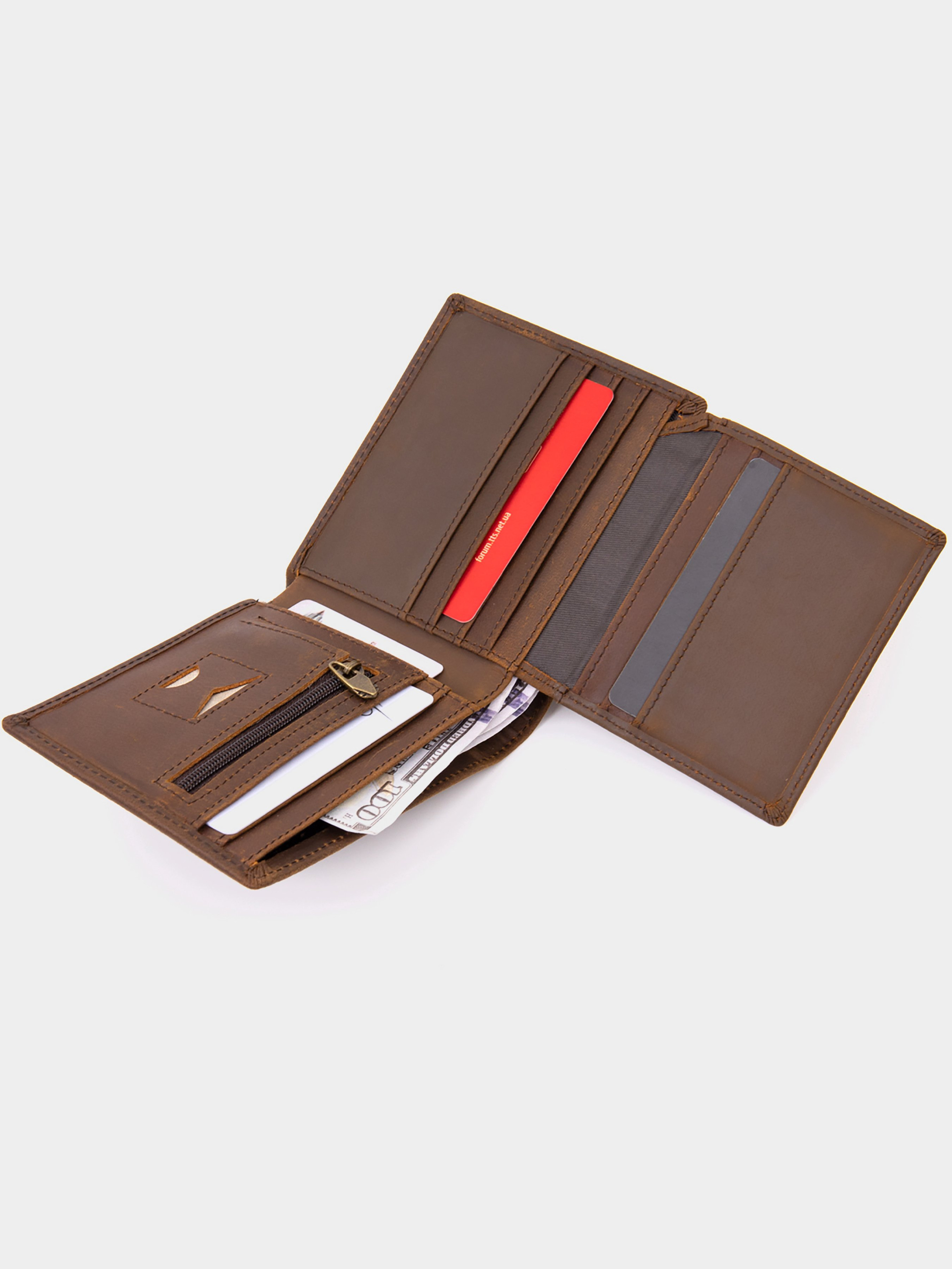 Цвет: коричневый; Материал: натуральная кожа; Размер (ШхВхГ, см): 11х9,2х1,3. Страна производитель: Китай. Бренд: Vintage. Особенности: - два отделения для купюр; - десять ячеек для кредиток (одна под пленкой); - два открытых кармана; - кармашек на молнии (может быть использован для монет); - кармашек под сим-карту; - без застежки. Тонкое компактное матовое портмоне из натуральной кожи без застежки. Изделие имеет коричневый насыщенный цвет. Внутри достаточно ячеек для кредиток и два отделения для купюр. Аксессуар имеет современный дизайн. Портмоне поместится в маленькую сумку или карман брюк. Кошелек станет прекрасным подарком для ваших близких. Портмоне имеет весь самый необходимый функционал. Кошелек очень приятный на ощупь. Подойдет для тех, кто не любит больших аксессуаров.