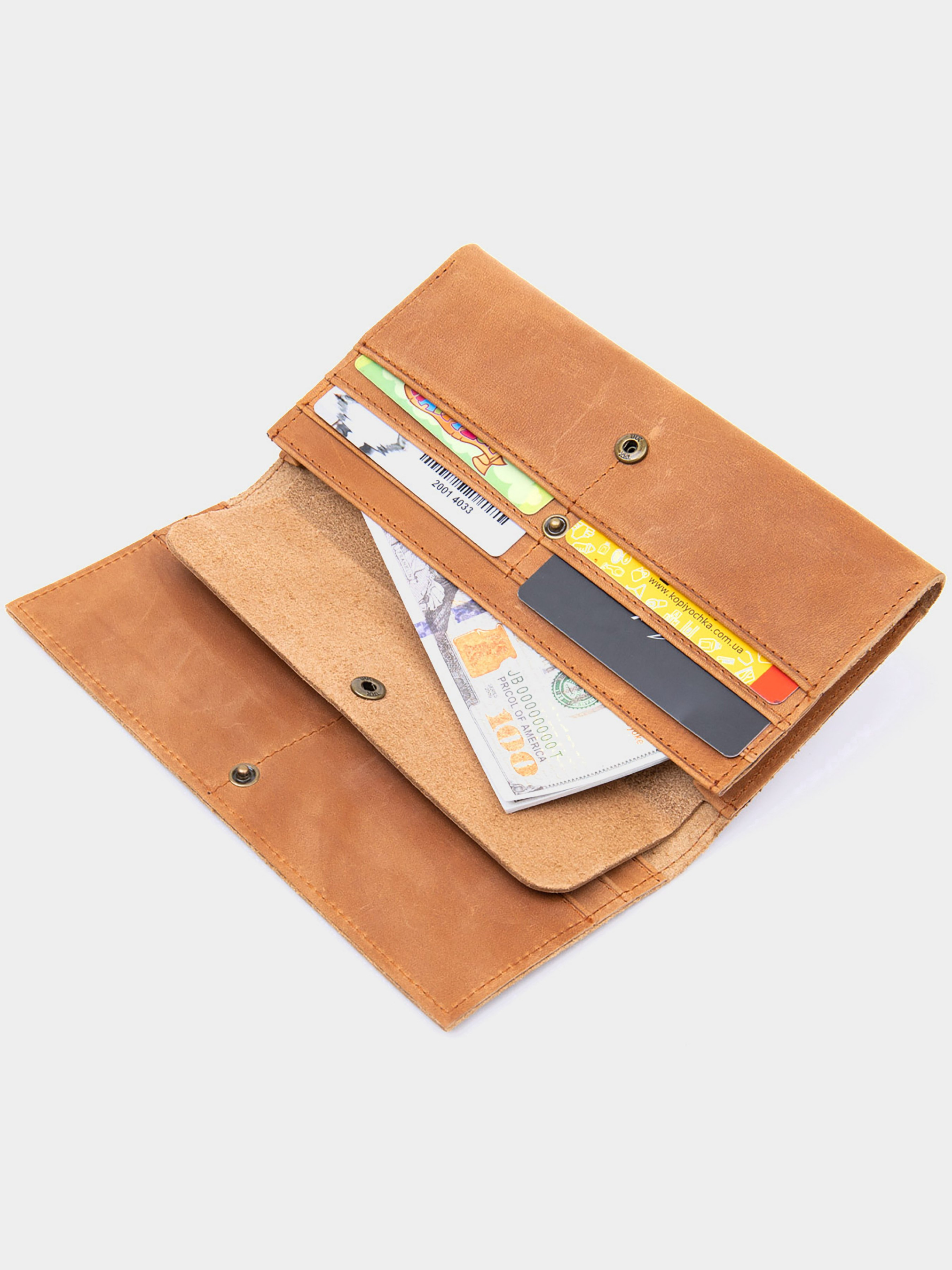 Материал: натуральная кожа высокого качества. Цвет: рыжий. Размеры (ШхВхГ, см): 19,5х10х1,5 см. Страна производитель: Китай. Бренд: Vintage. Описание: - 2 встроенных друг в друга кармана для купюр; - 1 открытый карман; - 10 ячеек для кредиток; - закрывается клапаном с кнопкой. Винтажное горизонтальное портмоне из приятной матовой кожи. Изделие выглядит очень солидно и стильно. Кожа крейзи обладает своей особенностью - со временем на данной коже появляются мелкие потертости и царапины, что придает ей особого шарма и эффекта старины, за который данный тип кожи любят покупатели. Портмоне без монетницы подойдет для тех, кто отдает предпочтение карточкам и носит с собой минимально купюр. Аксессуар удобно лежит в руке. Купюры помещаются в развернутом виде и не помнутся. Данное портмоне станет идеальным подарком как для мужчины, так и для женщины.