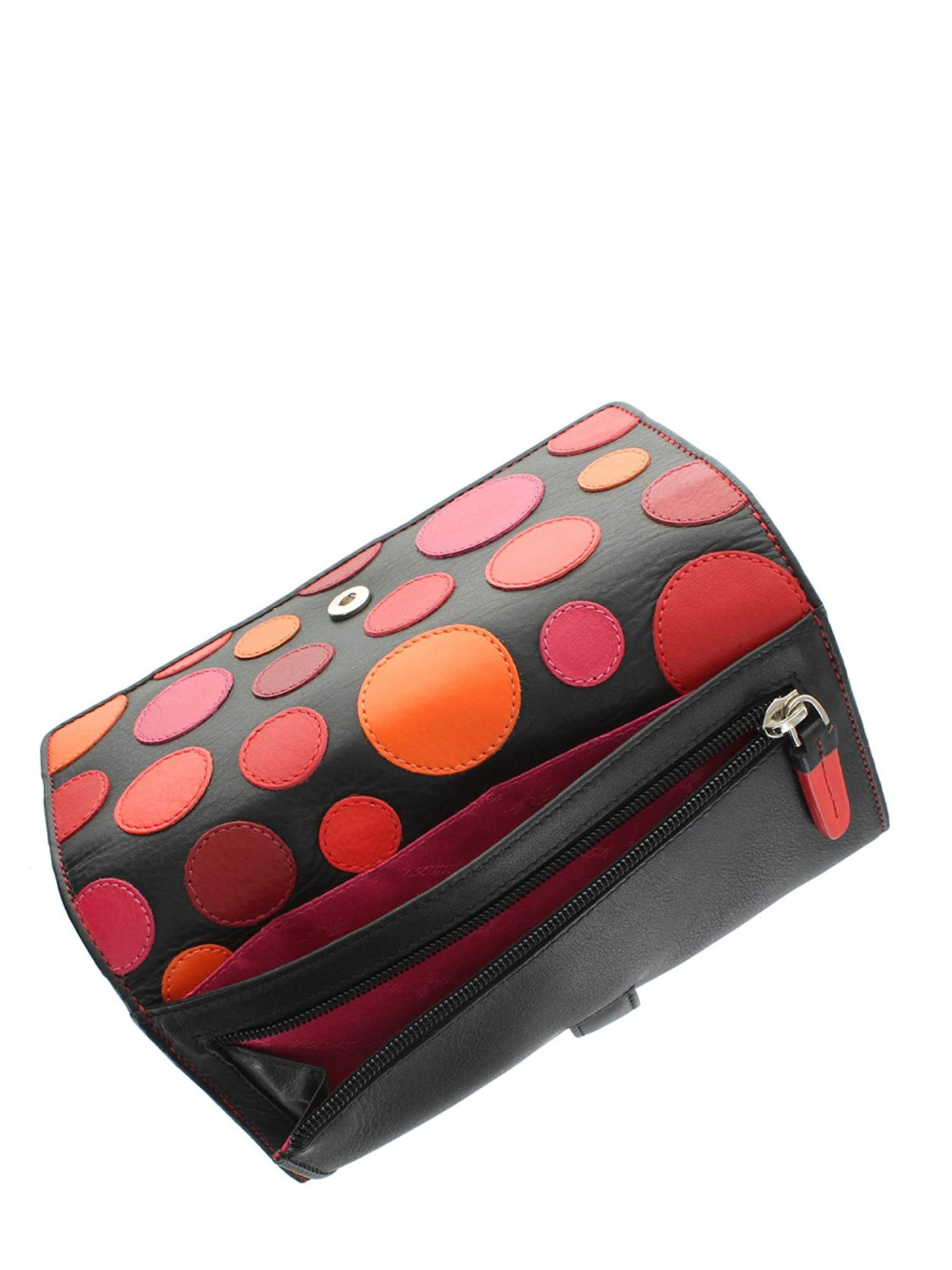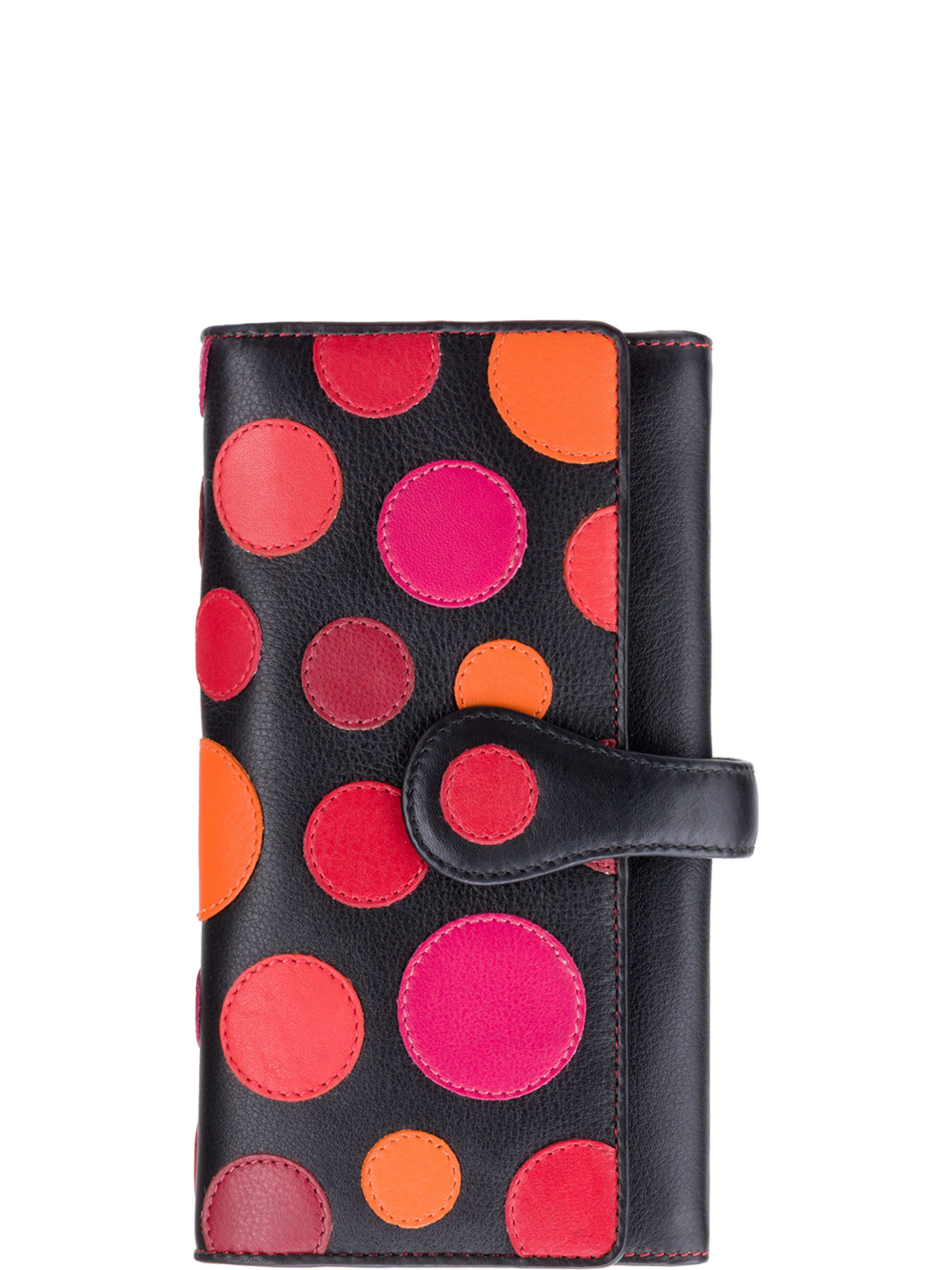 Женский кошелек Visconti P2 Neptune Verry Berry – это изысканное сочетание классики и современной моды. Черный фон, украшенный ярким ягодно-розовым принтом в горошек, создает неповторимый образ. Мягкая натуральная кожа приятна на ощупь и подчеркивает высокое качество изделия Особенности кошелька Высокое качество: натуральная телячья кожа, надежная фурнитура и безупречная отделка гарантируют долговечность кошелька. Он прослужит вам не один год, сохранив свой первоначальный вид Функциональность: двойное отделение для купюр удобно для разделения денег по номиналу или валюте, внешнее отделение на молнии для монет, чеков и записок, 12 отделений для карточек вместит все ваши банковские карты, визитки и пропуски, 1 окошко для фото позволяет всегда носить с собой любимые фотографии. Застежка на хлястик с кнопкой надежно фиксирует кошелек, предотвращая случайное открытие Защита: встроенная защита RFID защитит ваши карты от мошенничества Подарок для себя или близких: кошелек поставляется в элегантной подарочной упаковке, что делает его идеальным вариантом для презента