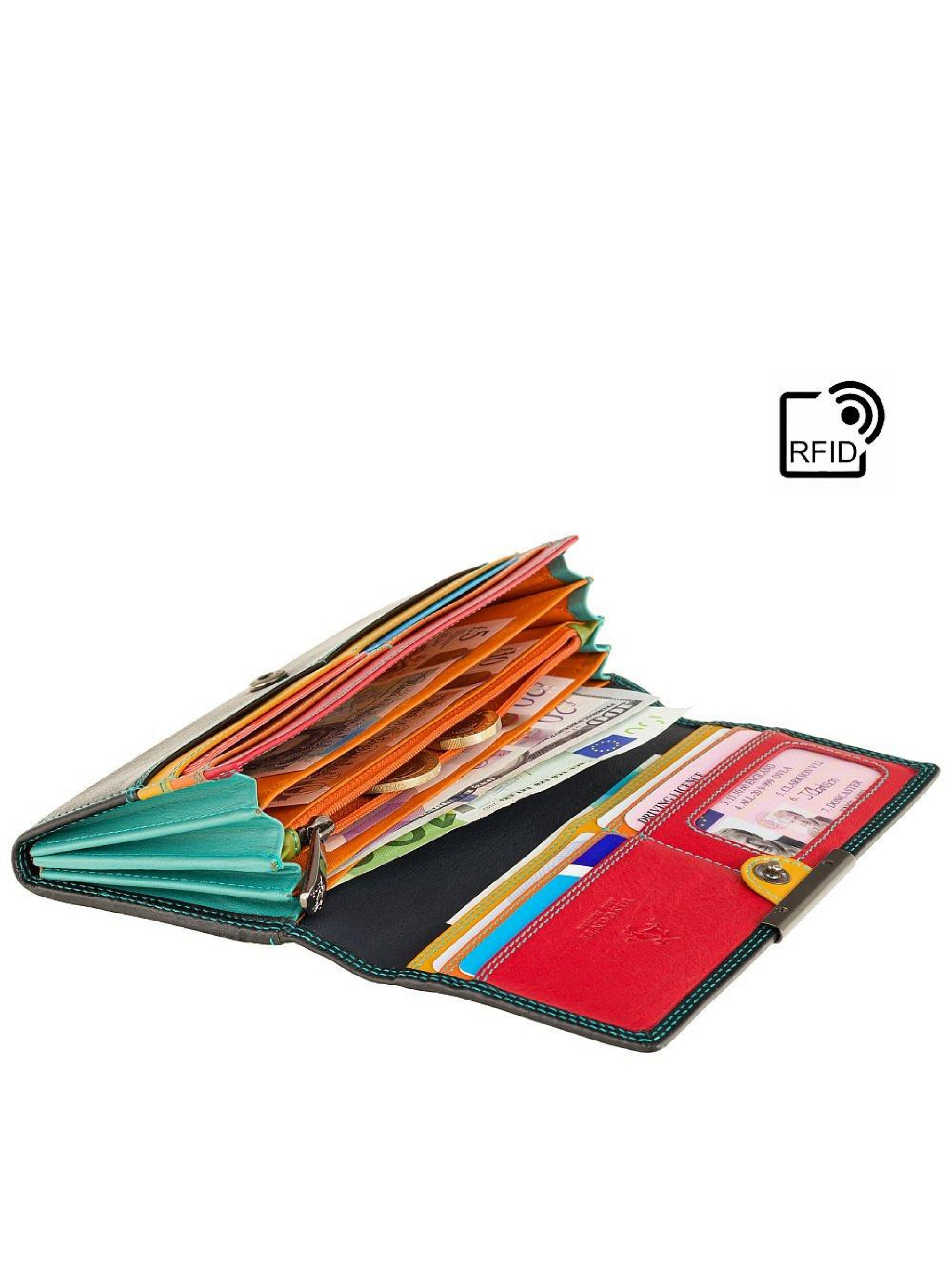 Женский кожаный кошелек Visconti R11 Paloma (Black Rhumba) – это изысканный аксессуар, который сочетает строгую черную кожу с яркими внутренними акцентами. Контрастная строчка подчеркивает элегантность внешнего вида, а насыщенное внутреннее оформление добавляет свежести и оригинальности. Кошелек станет идеальным выбором для женщин, ценящих стиль и практичность. Visconti R11 Paloma (Black/Rhumba) из коллекции Rio оснащен основным отделом на клапане с кнопкой, четырьмя отделениями для купюр, чеков или записок, внутренним и внешним отделениями на молнии для мелочи, прозрачным окном для фотографии, прав или документов и встроенной защитой RFID для безопасности банковских карт. Кошелек поставляется в фирменной подарочной коробке, что делает его прекрасным подарком.