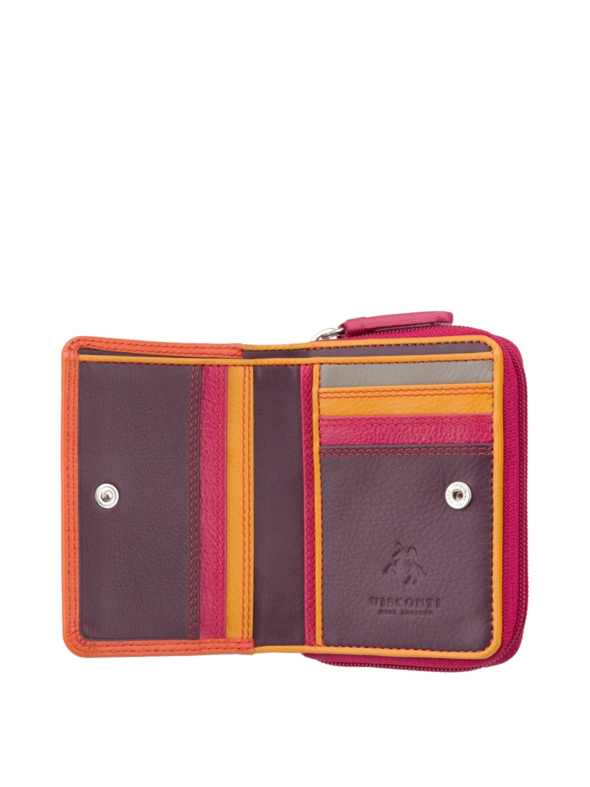 Маленький женский кошелек Visconti RB53 Hawaii (Orange Multi) из высококачественной натуральной кожи станет вашим незаменимым спутником в повседневной жизни. Элегантное сочетание оранжевого и фиолетового оттенков придает изделию оригинальность и утонченность. Кошелек оснащен пятью отделениями для карт, отделением для купюр и двумя вместительными карманами на молнии, один из которых дополнительно включает мини-отделение для мелочи, что делает хранение денег и карт максимально удобным. Технология RFID защищает ваши банковские карты от несанкционированного считывания данных, а наружный карман Tap & Go обеспечивает быструю оплату покупок. Прочная тканевая подкладка сохраняет первоначальный вид кошелька на протяжении долгого времени. Visconti RB53 Hawaii (Orange Multi) поставляется в фирменной подарочной коробке, что делает его идеальным вариантом для подарка.