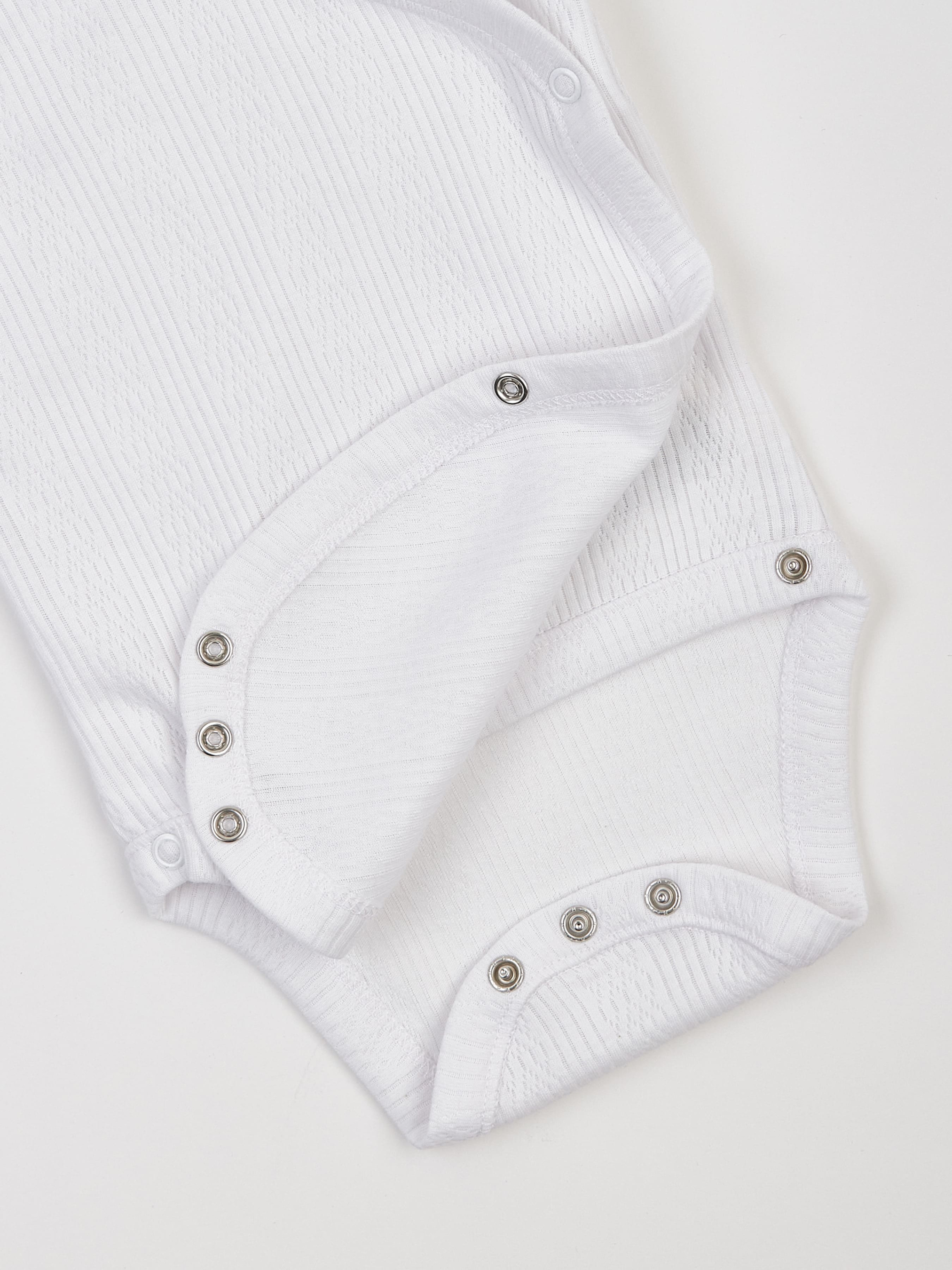 Комплект з ажурної бавовни білого кольору: боді, штанці та шапочка-вузлик Практичний і водночас святковий комплект для новонародженого з м’якої ажурної бавовни — ідеальний варіант для перших днів життя. Складається з трьох речей: боді з довгими рукавами на запах, штанців із м’яким поясом і зручної шапочки-вузлика. Білий колір — класичний, нейтральний, добре підходить як для дівчинки, так і для хлопчика. Ажурна фактура зовні додає ніжності образу, водночас тканина залишається досить щільною. Внутрішній шар — гладкий і приємний до тіла, що особливо важливо для чутливої шкіри немовляти. Боді має зручну конструкцію на запах і доповнений антицарапками на рукавах — це допомагає захистити малюка від випадкових подряпин. Штанці м’яко охоплюють животик, не тиснуть, а шапочка-вузлик доповнює. Переваги комплекту: У комплекті: боді на запах із довгими рукавами та антицарапками, штанці, шапочка-вузлик Колір: класичний білий Матеріал: 100% бавовна, сертифікат OEKO TEX Standard 100® Ажурна текстура зовні, гладка тканина зсередини Гіпоалергенна, дихаюча, приємна до тіла тканина Ідеально підходить для пологового будинку, виписки, фотосесії та щоденного носіння Підходить для хлопчиків і дівчаток (унісекс) Вироблено в Україні з любов’ю