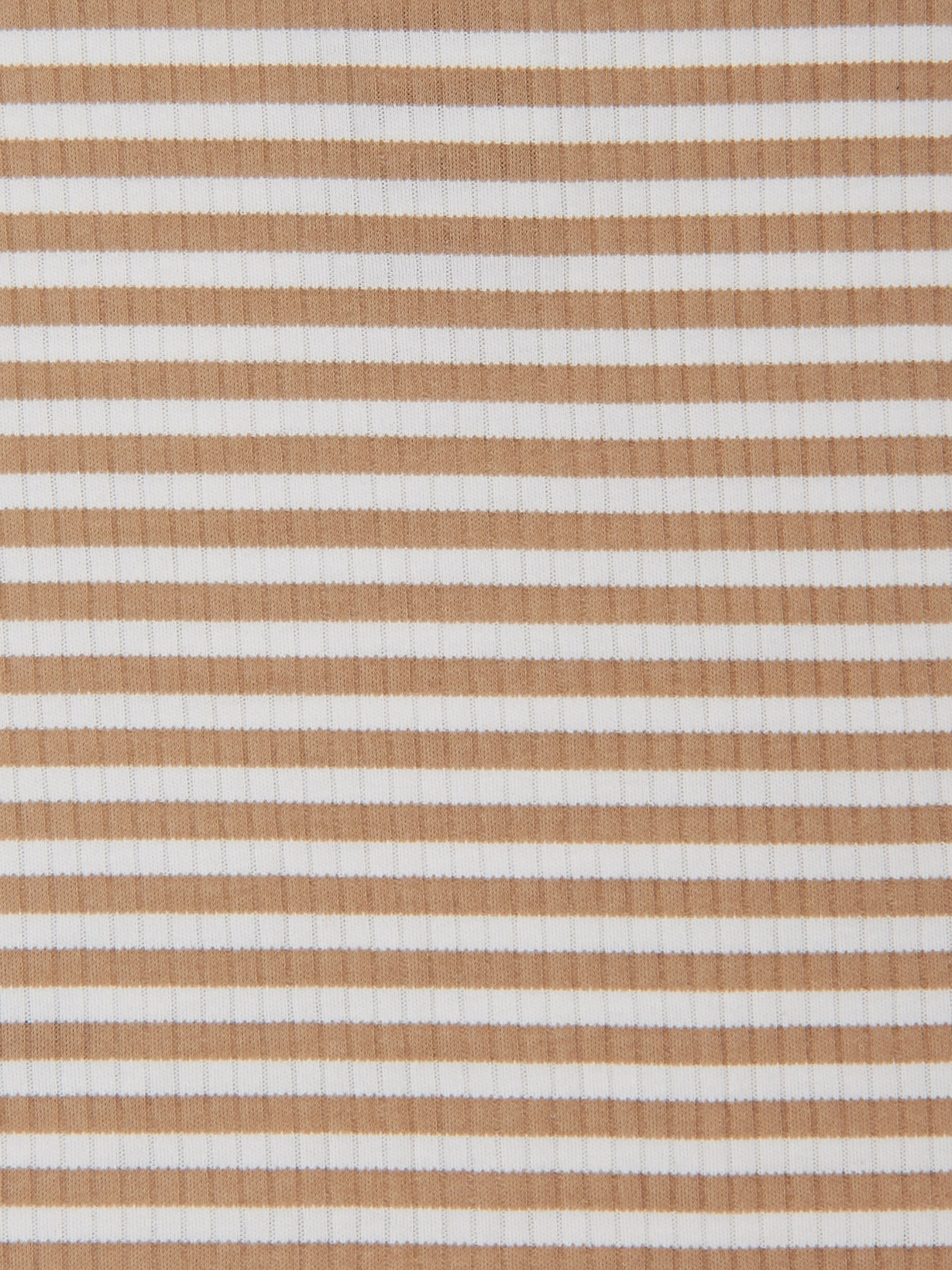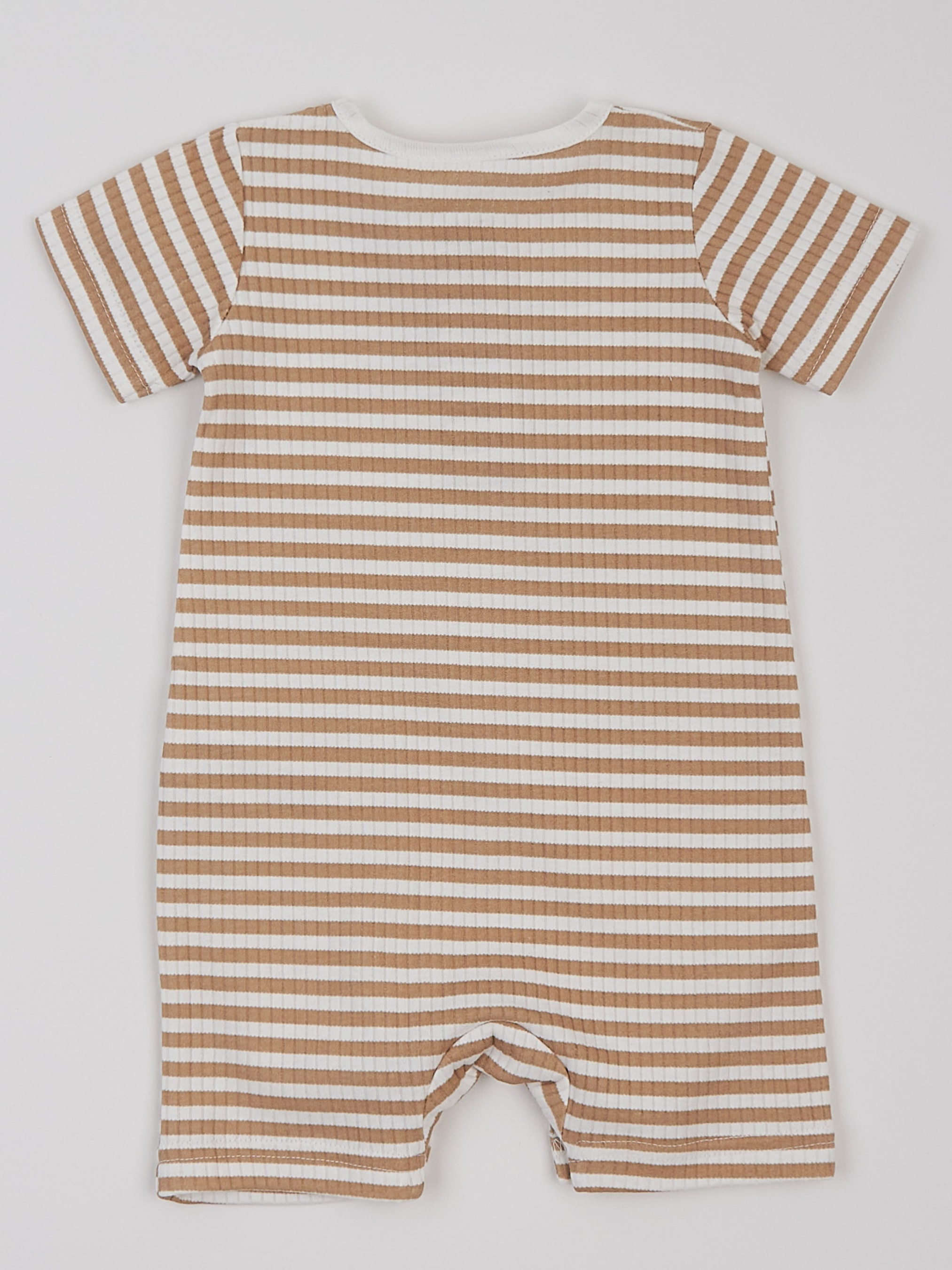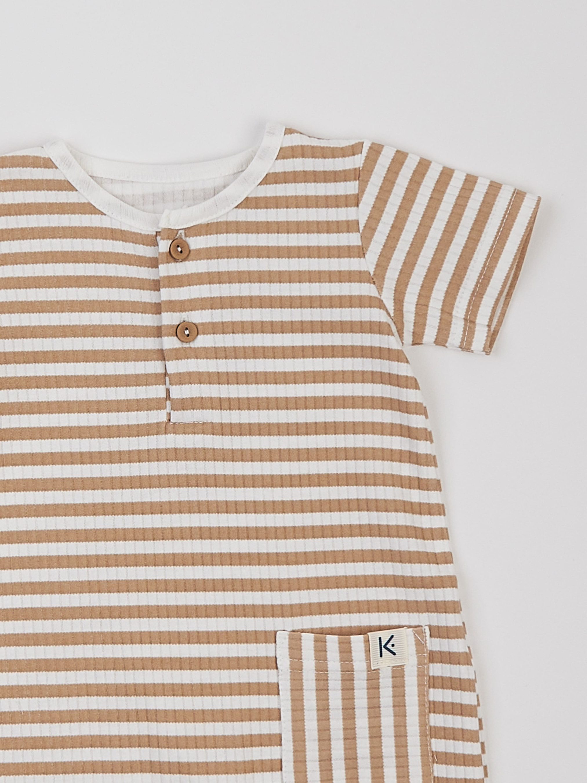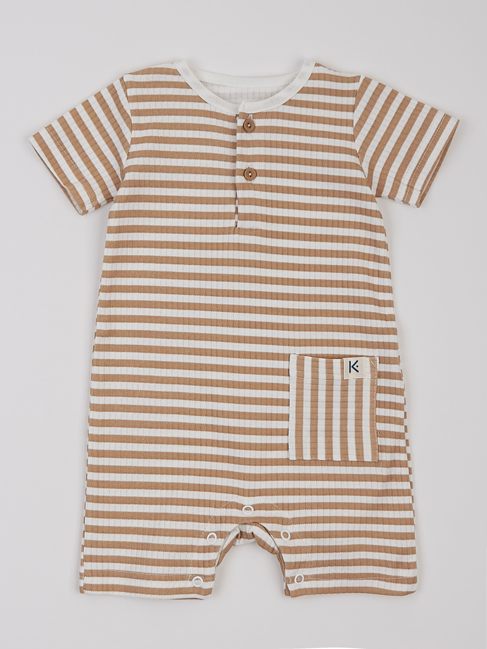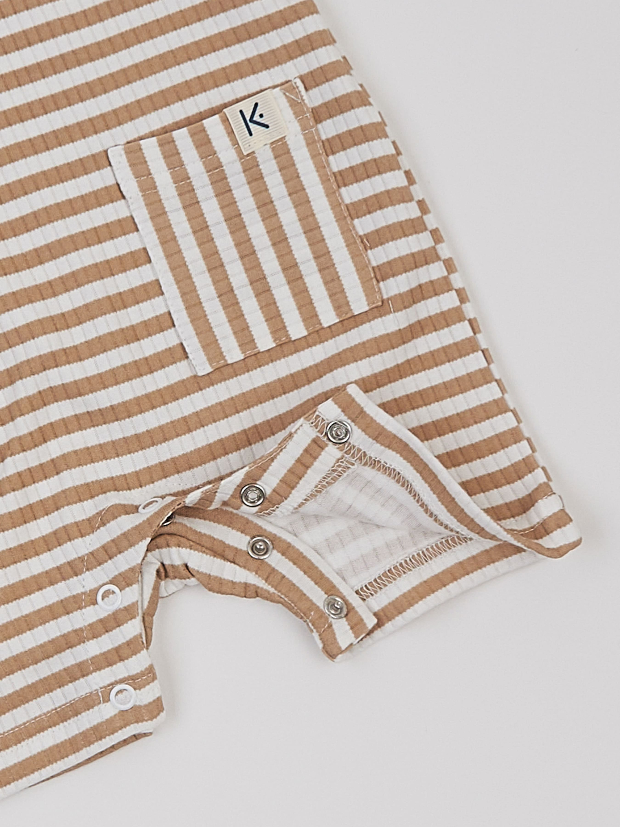 Цей стильний пісочник у молочному кольорі з коричневою смужкою виготовлений із високоякісної сертифікованої бавовни, що дарує ніжність і комфорт малюку. Він поєднує у собі елегантність і практичність, надаючи образу дитини особливого шарму. Легка текстурована тканина додає вишуканості, а зручний крій забезпечує свободу рухів. Функціональні та декоративні ґудзики надають пісочнику оригінального вигляду та полегшують процес переодягання. Безпечні безнікелеві кнопки дозволяють легко змінювати підгузник, не створюючи дискомфорту малюку. Цей пісочник чудово підходить для літніх днів і теплих приміщень, даруючи малюку комфорт у будь-якій ситуації. Ми використовуємо тільки сертифіковані тканини OEKO TEX Standard 100®, які є гіпоалергенними, дихаючими та нетоксичними. Вид тканини: інтерлок Склад: 100% бавовна Колір тканини: молочний в дрібну бежеву смужку.