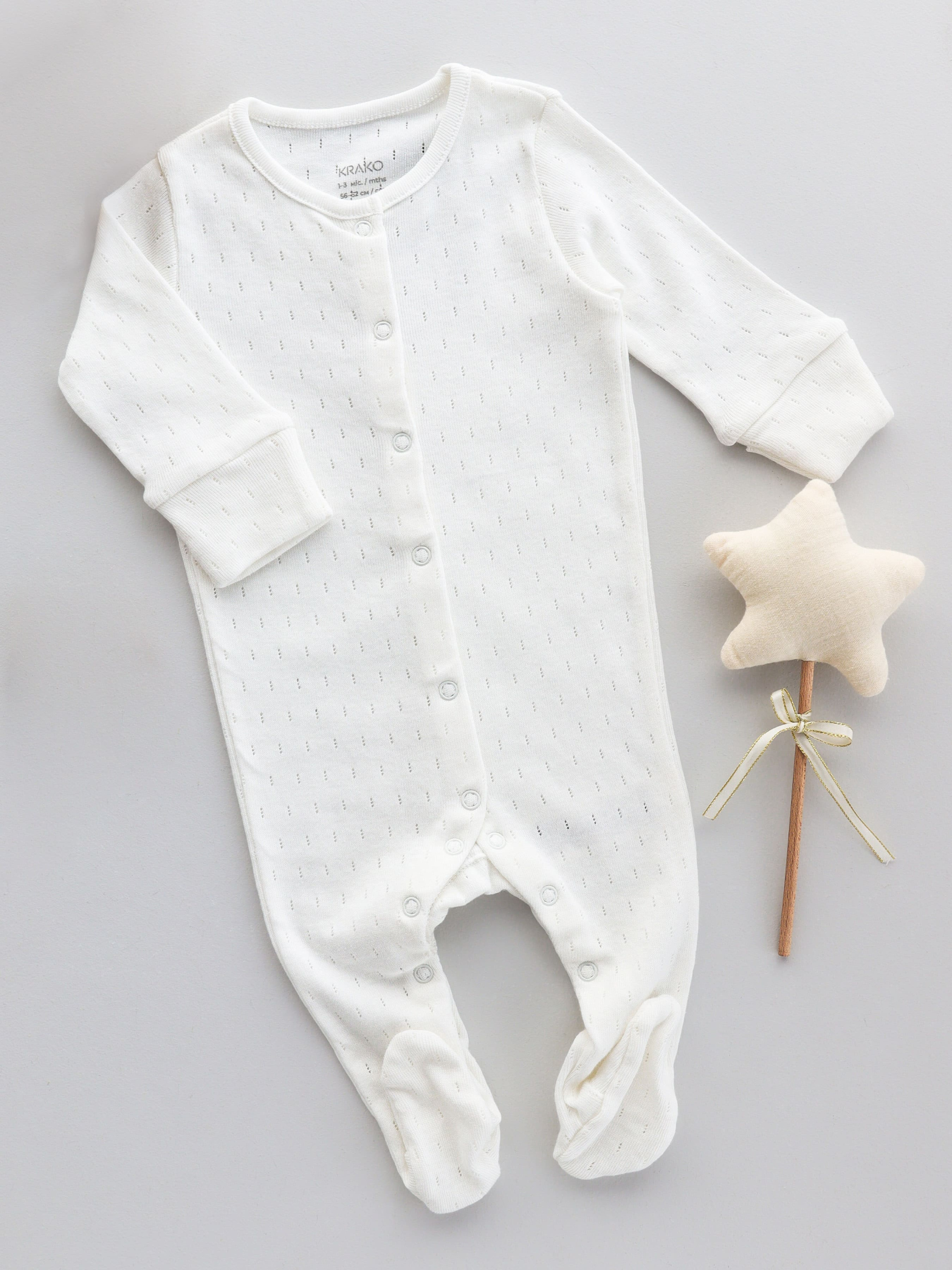 Молочний комбінезон для новонароджених з ажурної бавовняної рібани — чудовий вибір для теплої пори року. Натуральна тканина легка, дихаюча та приємна на дотик, не подразнює шкіру і забезпечує комфорт навіть найчутливішим малюкам. Ажурний візерунок додає елегантності, а еластична структура рібани дозволяє дитині вільно рухатися. Цей комбінезон ідеально підходить для весняно-літнього сезону, створюючи комфортний мікроклімат і забезпечуючи гарну циркуляцію повітря. У розмірах 50-56 см передбачені зовнішні шви для делікатного комфорту, а манжети до 3-х місяців відворотні, що заміняє «царапки» і захищає малюка від подряпин. Ніжний, зручний і практичний варіант для перших місяців життя вашого малюка. Сертифікат OEKO TEX Standard 100 Склад: 100% бавовна Колір основної тканини: молочний