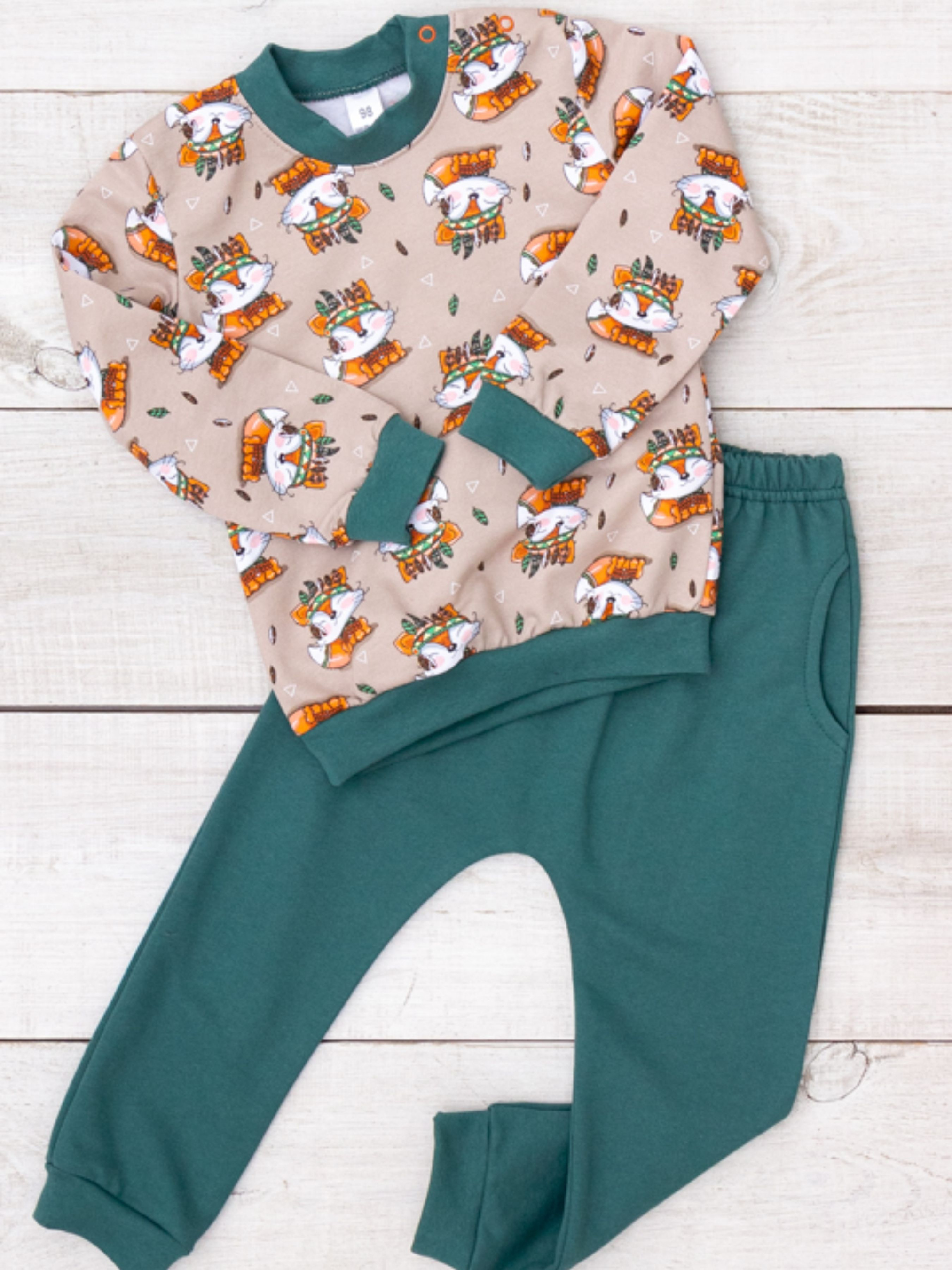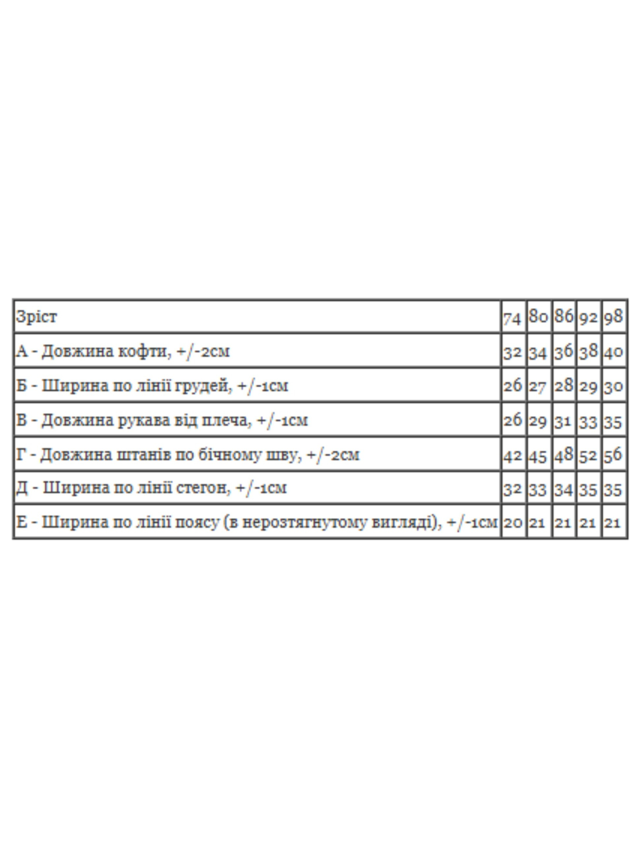 Полотно: начос принтований Склад полотна: 100% бавовна Зріст: 74-98 Комплект для дитини з принтованого начосу – теплий, м’який і комфортний вибір для малюків. Полотно: начос принтований, 100% бавовна, зріст: 74-98. Завдяки ніжній ворсистій внутрішній поверхні, костюм ідеально зберігає тепло, дарує затишок та комфорт під час сну чи активних ігор. Універсальний дизайн з веселим принтом робить одяг яскравим і привабливим. Комплект складається з кофти з довгим рукавом та зручних штанців з еластичною резинкою, які не сковують рухів. Підходить як піжама чи домашній одяг для дітей. Практичний у догляді – зберігає форму та яскравість після прання.