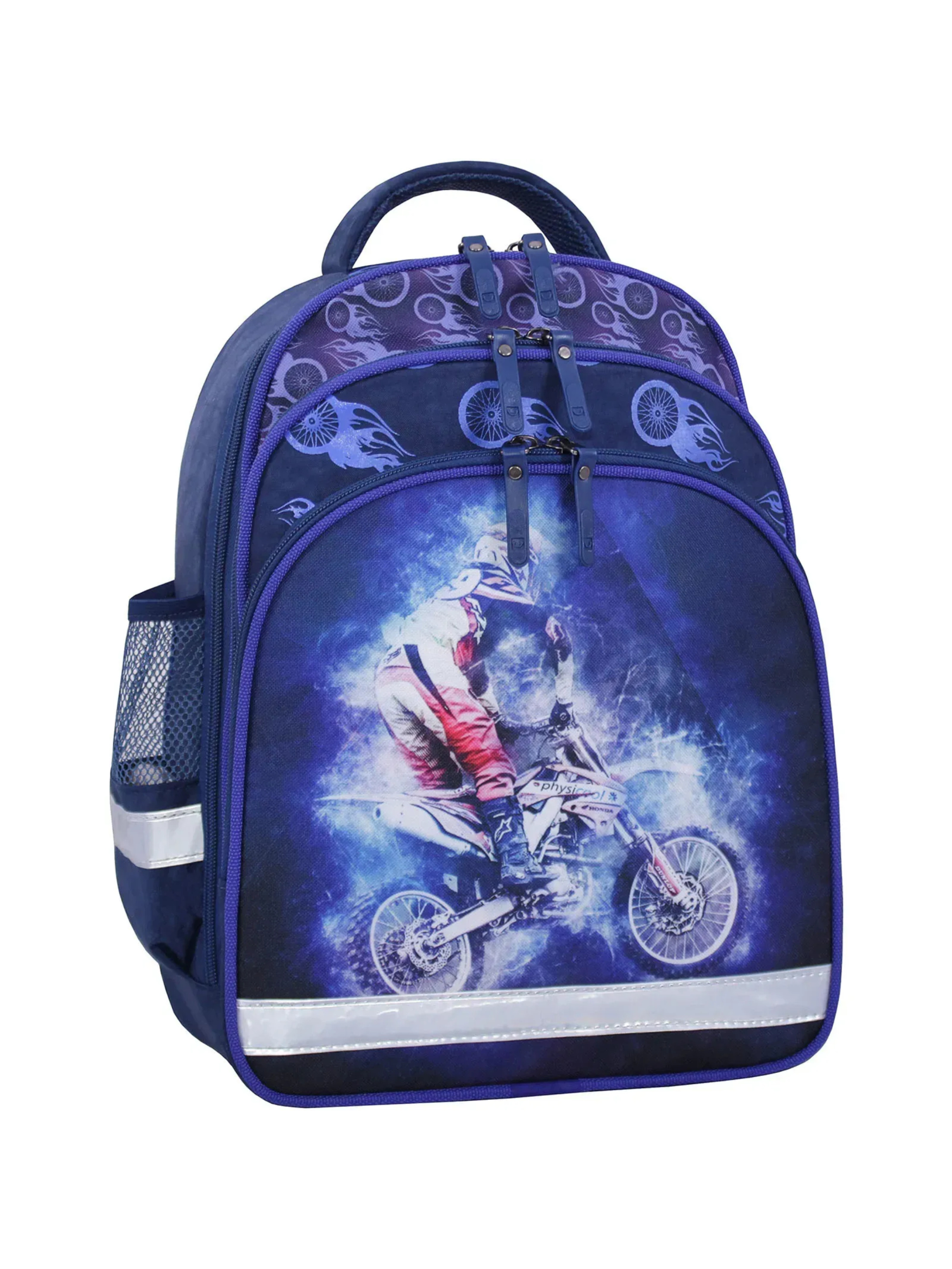 Рюкзак MOUSE від Bagland — яскравий та стильний аксесуар для учнів молодших класів. Рюкзак має три відсіки. Основне і найбільше відділення підійде для підручників та спортивної форми. Друга кишеня призначена для зошитів, блокнотів чи альбому для малювання, а відсік-органайзер спереду — для дрібних канцтоварів. Ззовні збоку є кишені-сітки для пляшок із водою. Ми подбали, аби рюкзак був не лише привабливим, а й зручним та безпечним для носіння. Тому виріб оснащений ортопедичною спинкою із вентильованими вставками, що допомагають запобігти потовиділенню. Регульовані широкі лямки сприяють рівномірному розподілу навантаження, аби вага рюкзака не шкодила поставі. Рюкзак MOUSE виготовлений зі зносостійкої тканини 420SW Flat PVC — вона практично не брудниться та має водовідштовхувальні властивості. Крім того, цей матеріал не тьмяніє на сонці та не втрачає свій природний блиск. Усі відділення та кишені оснащені якісною фурнітурою — аби виріб слугував вам якомога довше. Ця модель має світловідбивні елементи — на сітчастих кишенях збоку та на лямках рюкзака — для безпеки дитини на дорозі у темний період доби.