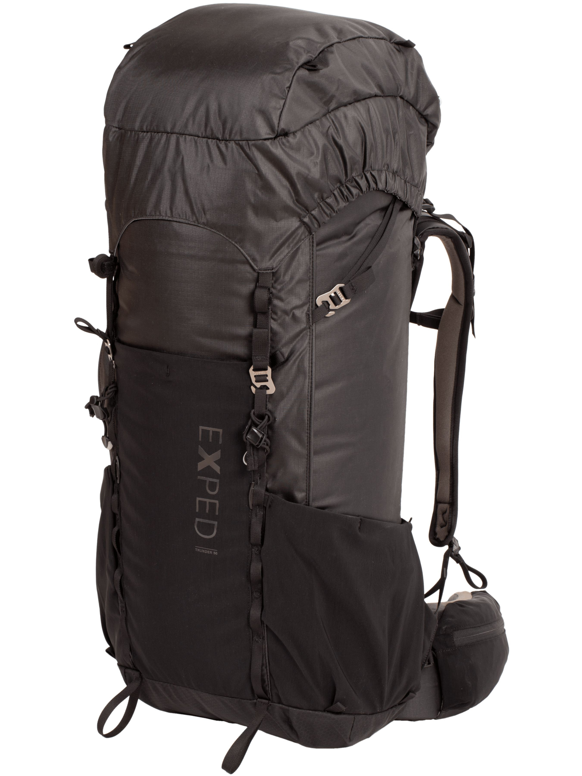 Exped Thunder 50 — надзвичайно зручний, багатофункціональний рюкзак. Рюкзак оснащений двома входами в основне відділення — традиційним верхнім, під клапаном, а також додатковим фронтальним, як у валізи, що забезпечує швидкий доступ до всього вмісту наплічника. Знімний клапан має подовжені стропи, які дозволяють підняти його вгору, помістивши знизу додаткове спорядження. Клапан складається з двох кишень: великої, із зовнішнім доступом, та меншої, на нижній стороні, для ключів, гаманця чи інших цінностей. Чотири петлі поверх клапана дають змогу прикріпити зовні кішки чи каску.