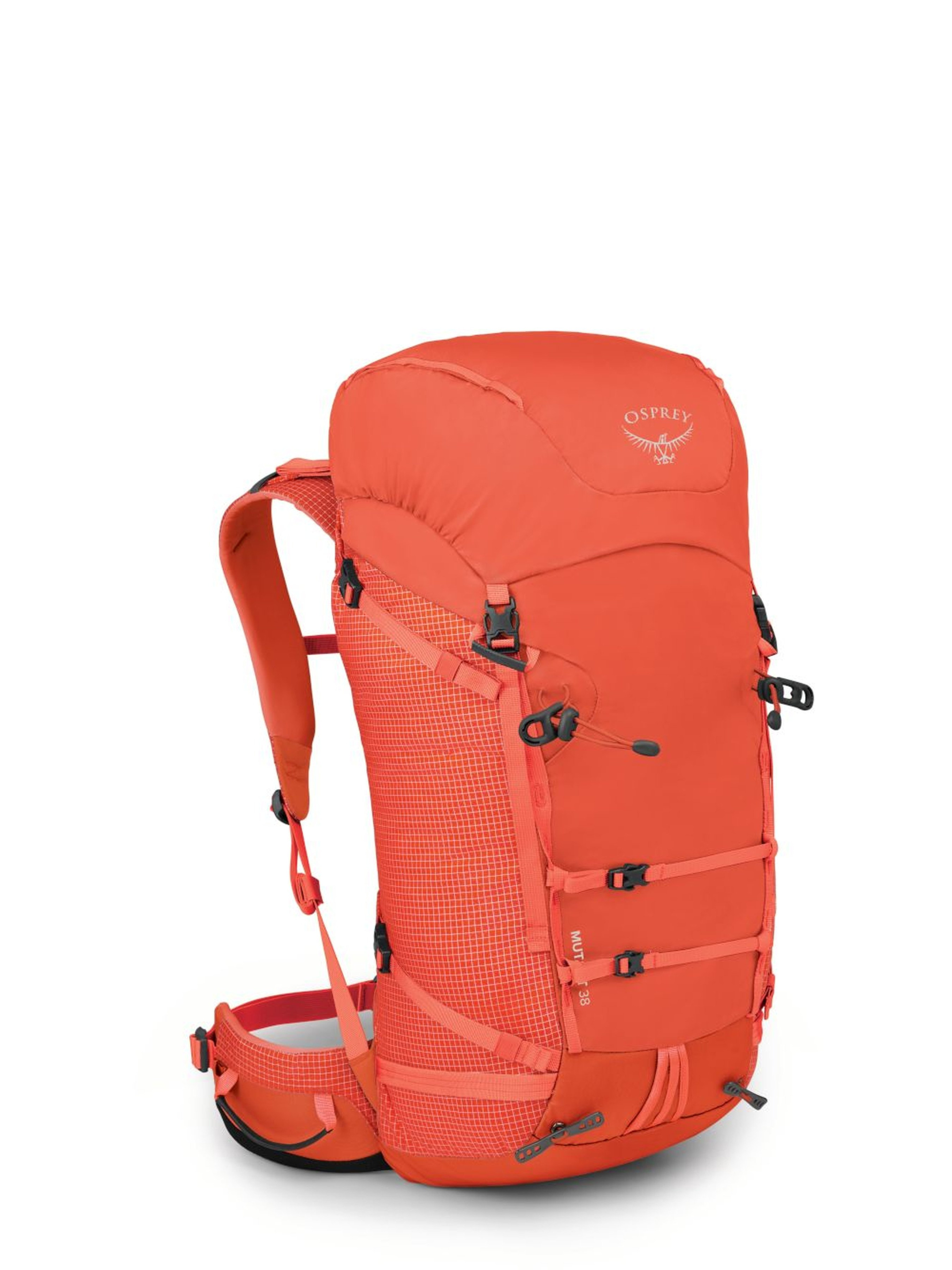 Нова функціональна модель рюкзаків від Osprey. Ергономічний рюкзак Mutant 38L призначений для альпінізму та гірського туризму. Окрім нового зовнішнього вигляду, модель отримує оновлену розвантажувально-підвісну систему та ряд технологічних нововведень. Каркас спинки формують профільовані дуги та щільний полімерний лист для зниження ваги самої рами. Рюкзак отримав новий легкий і гідрофобний матеріал зовнішнього шару спинки і плечових лямок, завдяки чому у неї не забивається сніг. В якості основного матеріалу застосовується водостійкий 210D recycled high tenacity nylon. Конструктивно рюкзаки з цієї серії, окрім загальних розмірів та ваги, частково відрізняються функціональністю. У моделі Mutant 38L основне відділення закривається на блискавку і є верхнє компресійне відділення та полегшений пояс. Верхня накидка FlapJacket для використання без верхнього клапану. У верхню кишеню рюкзака вбудований сітчастий фіксатор для шолома або каски. Із зовнішнього боку усіх рюкзаків із серії передбачені компресійні стропи та універсальні кріплення під льодоруби ToolLock. Функціональні рішення продумані до найменшої дрібниці та сучасні надміцні матеріали гарантрують зручність і надійність в будь-яких ситуаціях.