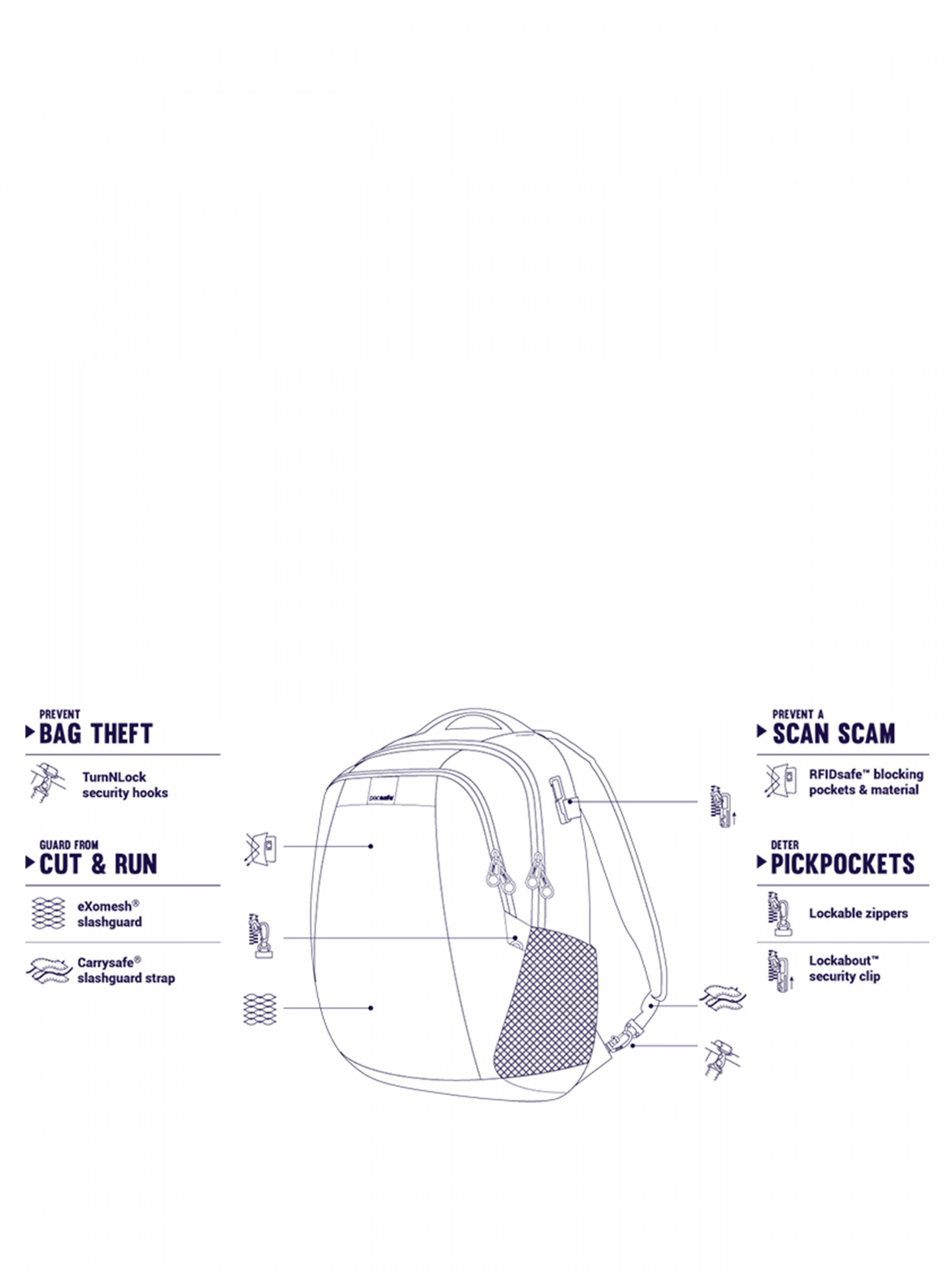 Окрім надійного захисту, Pacsafe турбується про вас, створюючи комфортні, стильні та довговічні рюкзаки та сумки з окремими відділами для гаджетів. Дизайнери Pacsafe продумують до дрібниць кожен елемент конструкції, використовуючи лише якісні тканини та найкращу фурнітуру.